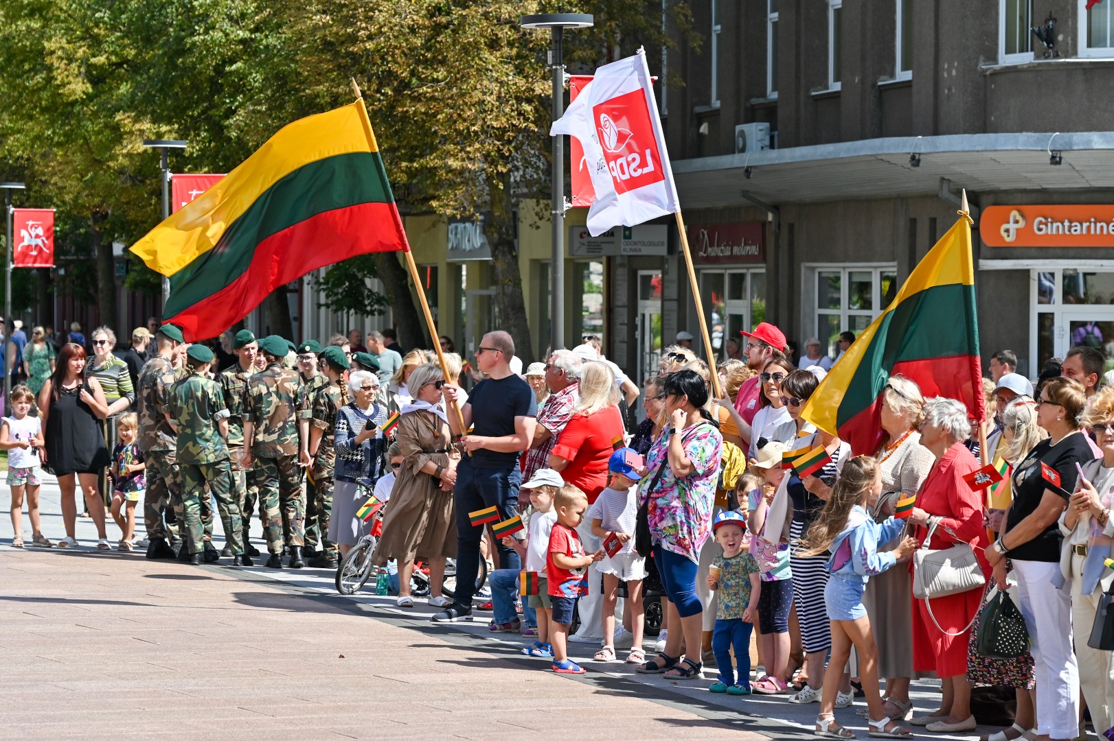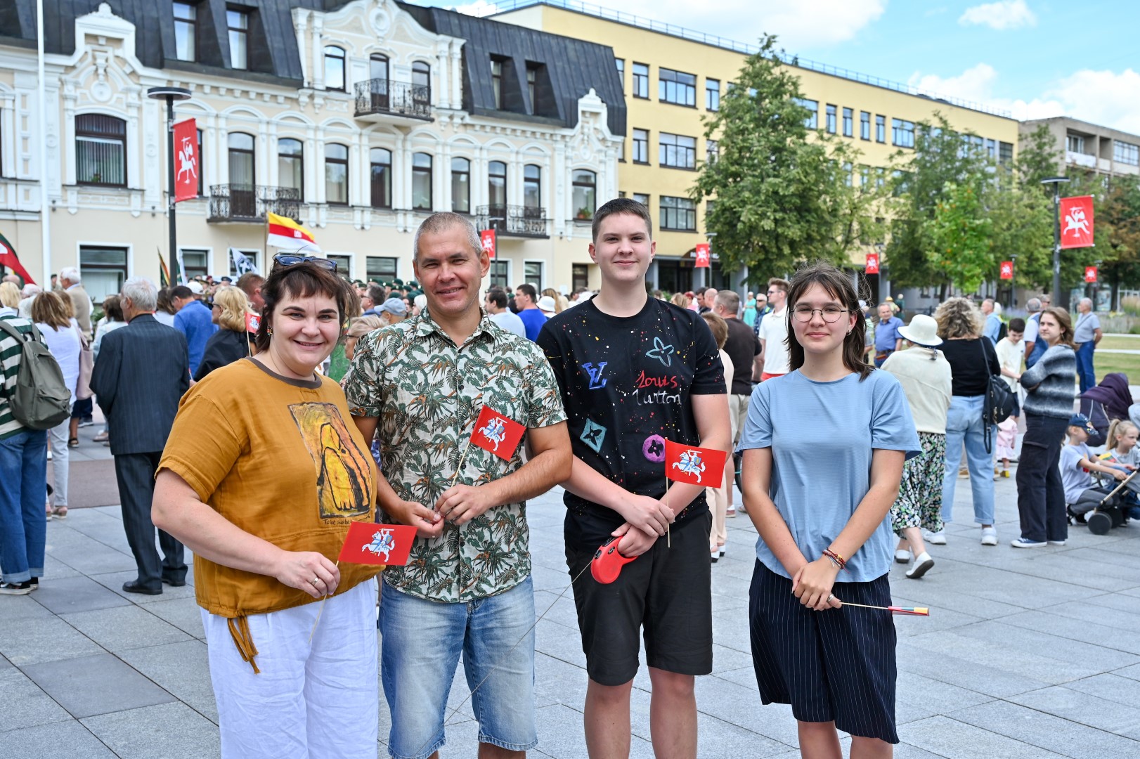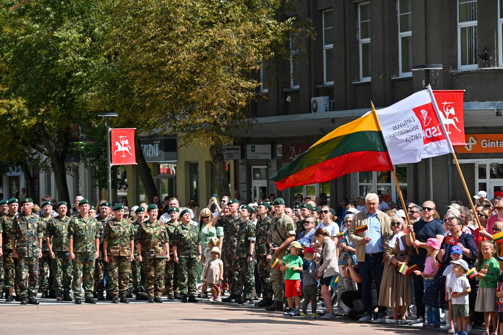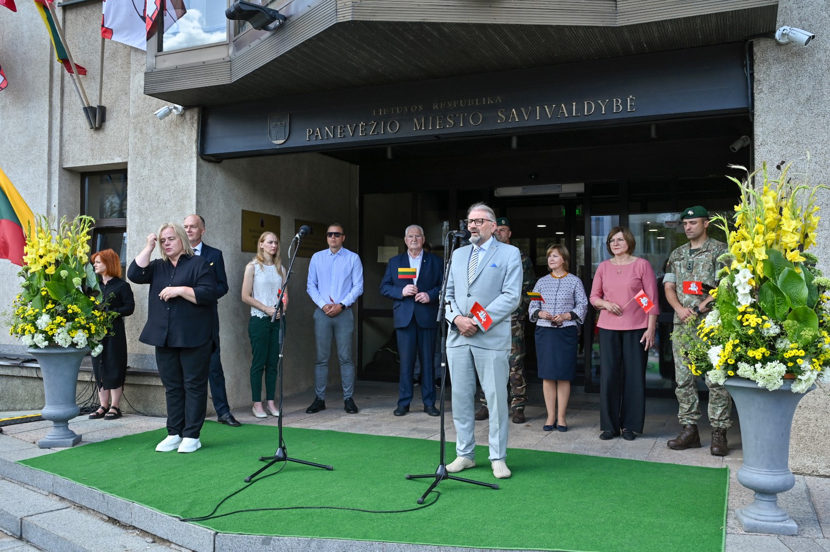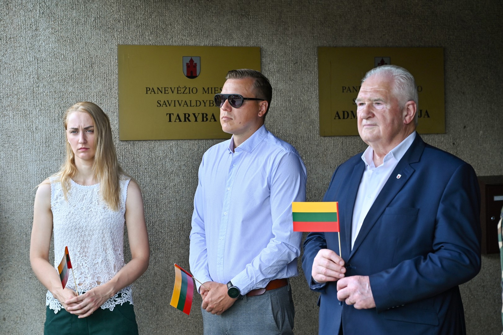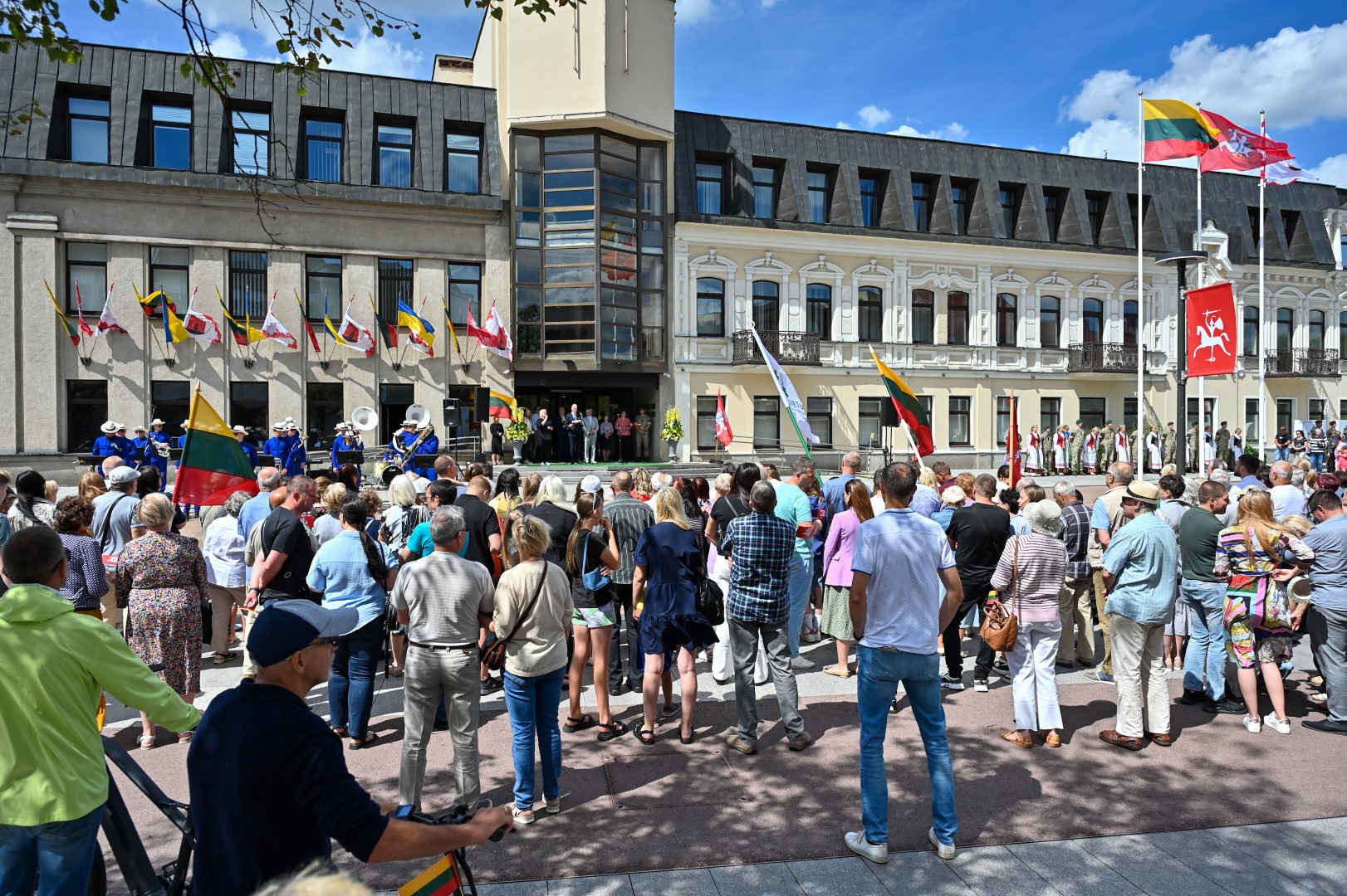 Vidurdienį Laisvės aikštėje, prie miesto Savivaldybės iškilmingai iškelta Trispalvė.