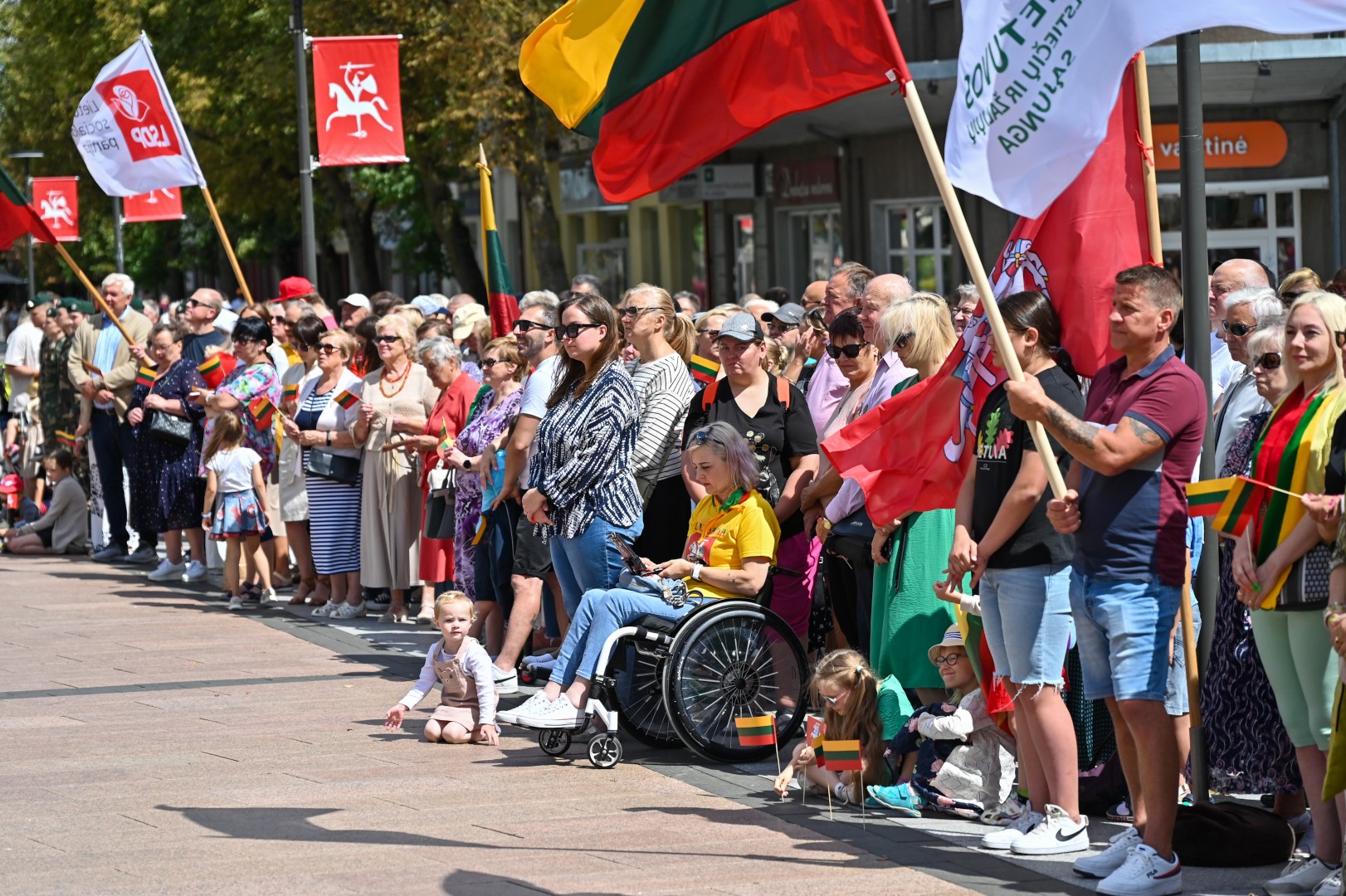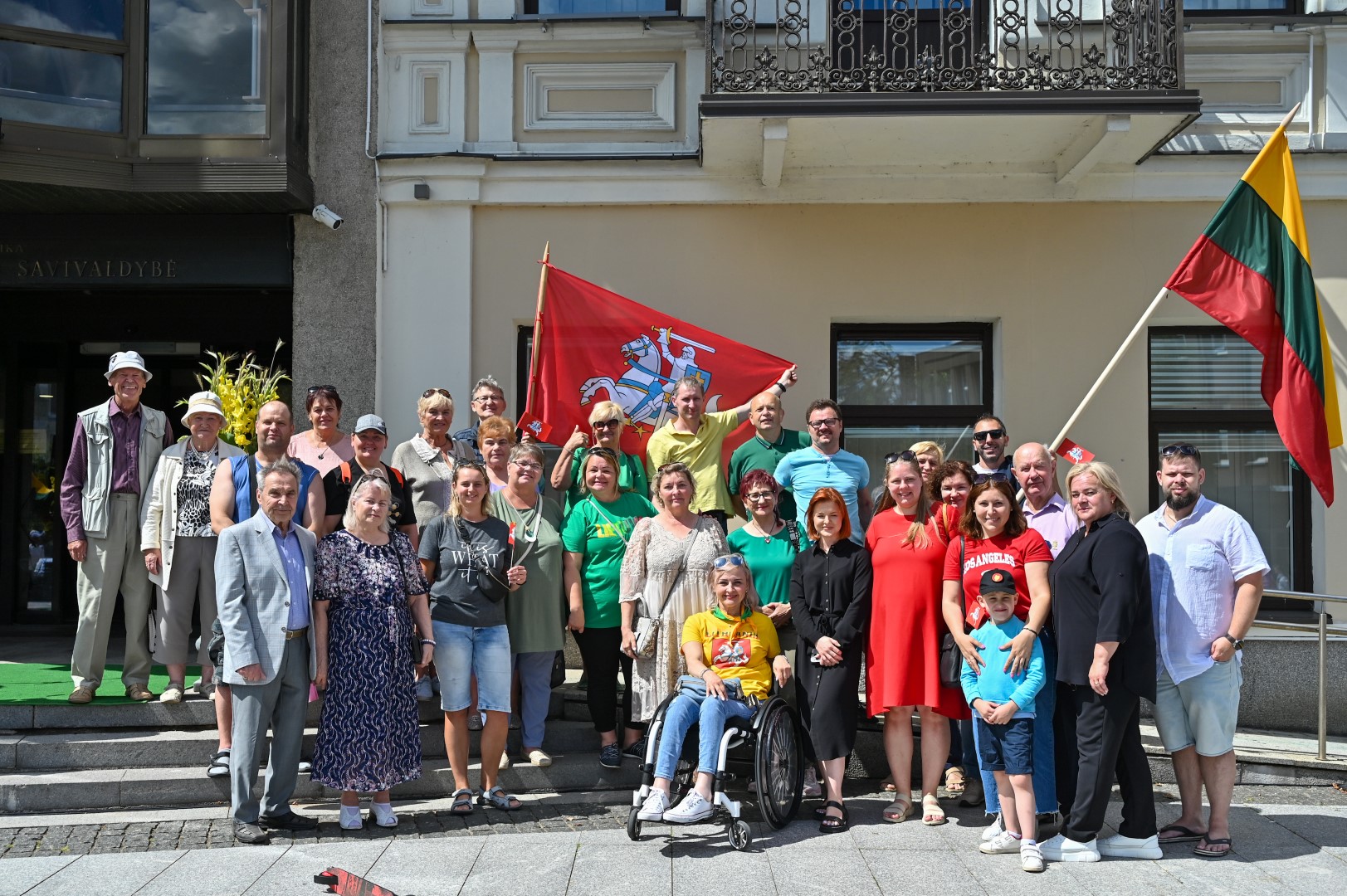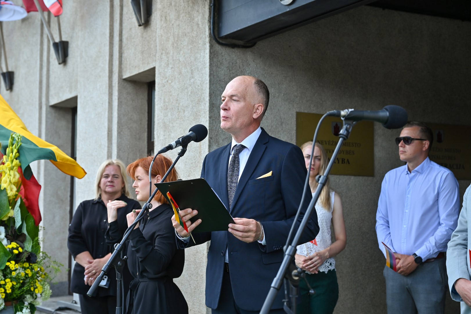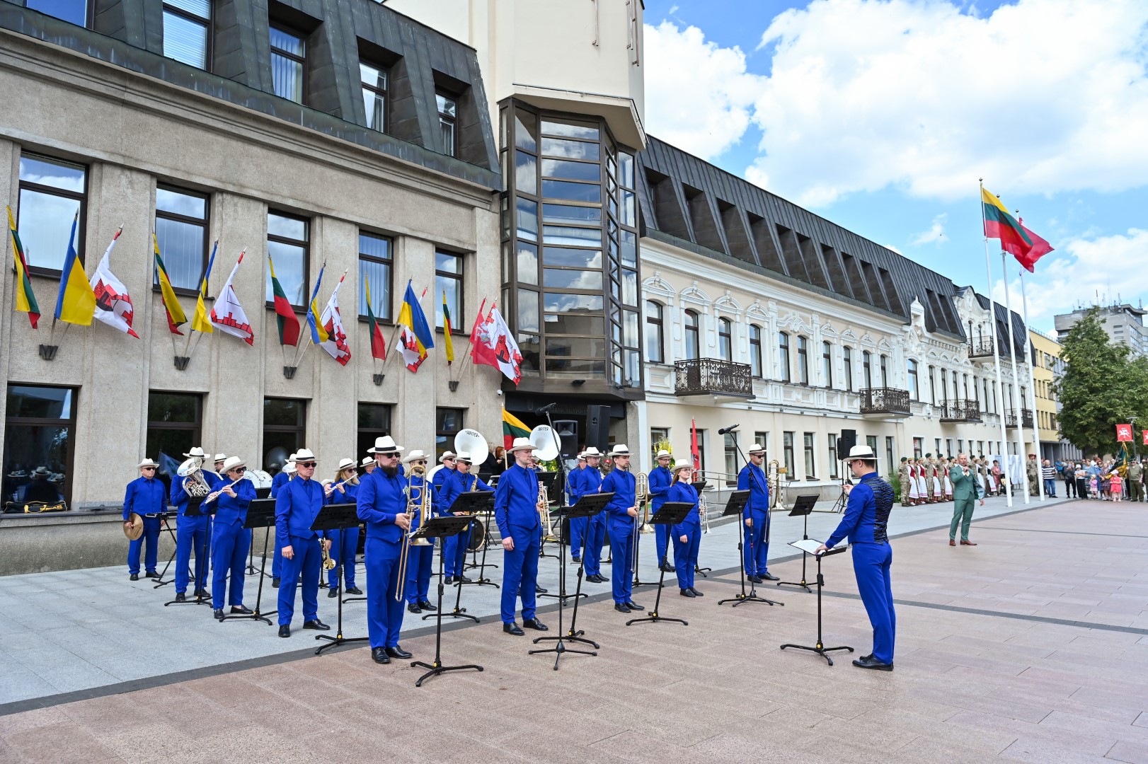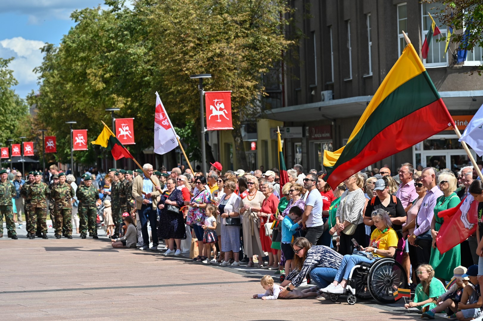 Vidurdienį Laisvės aikštėje, prie miesto Savivaldybės iškilmingai iškelta Trispalvė.