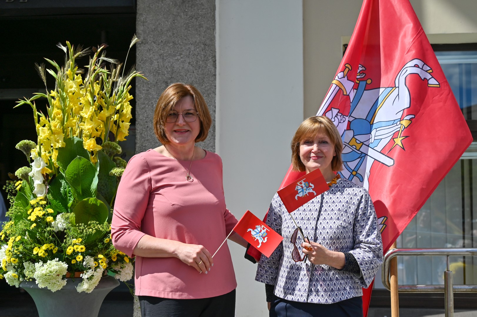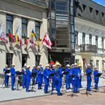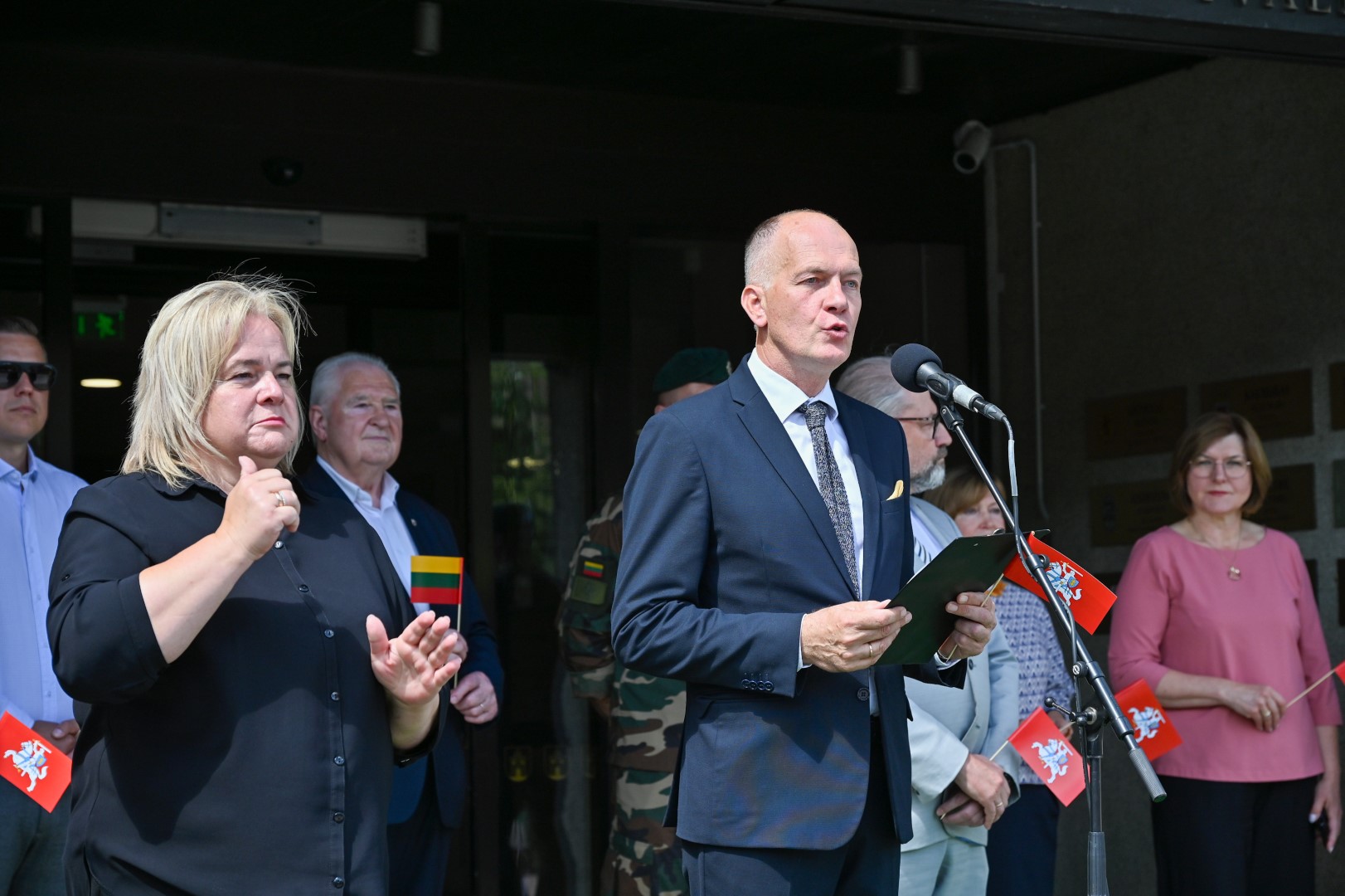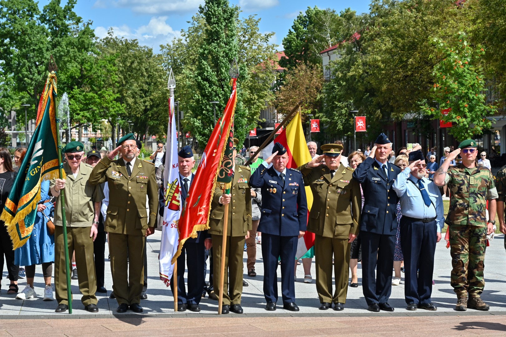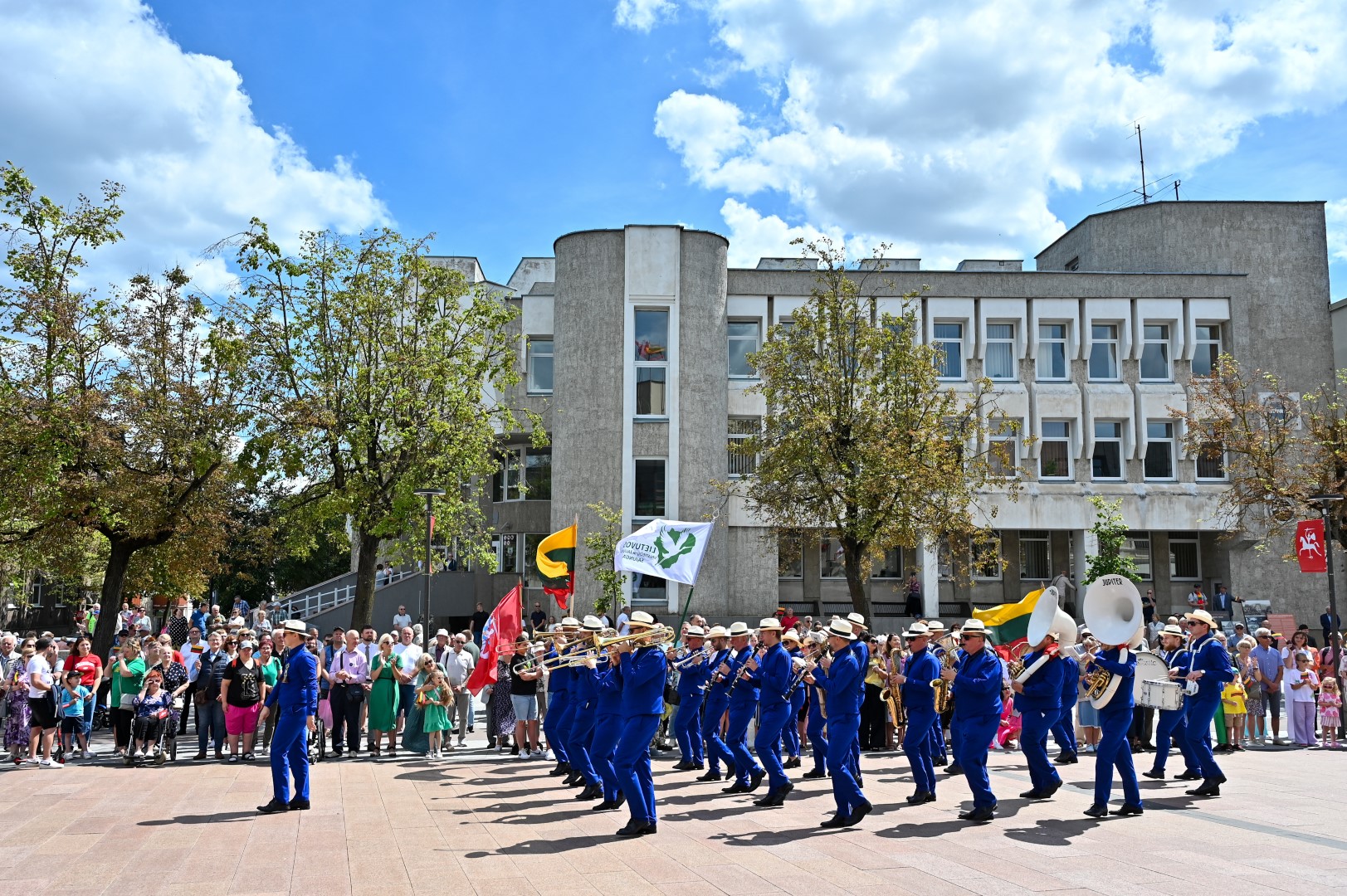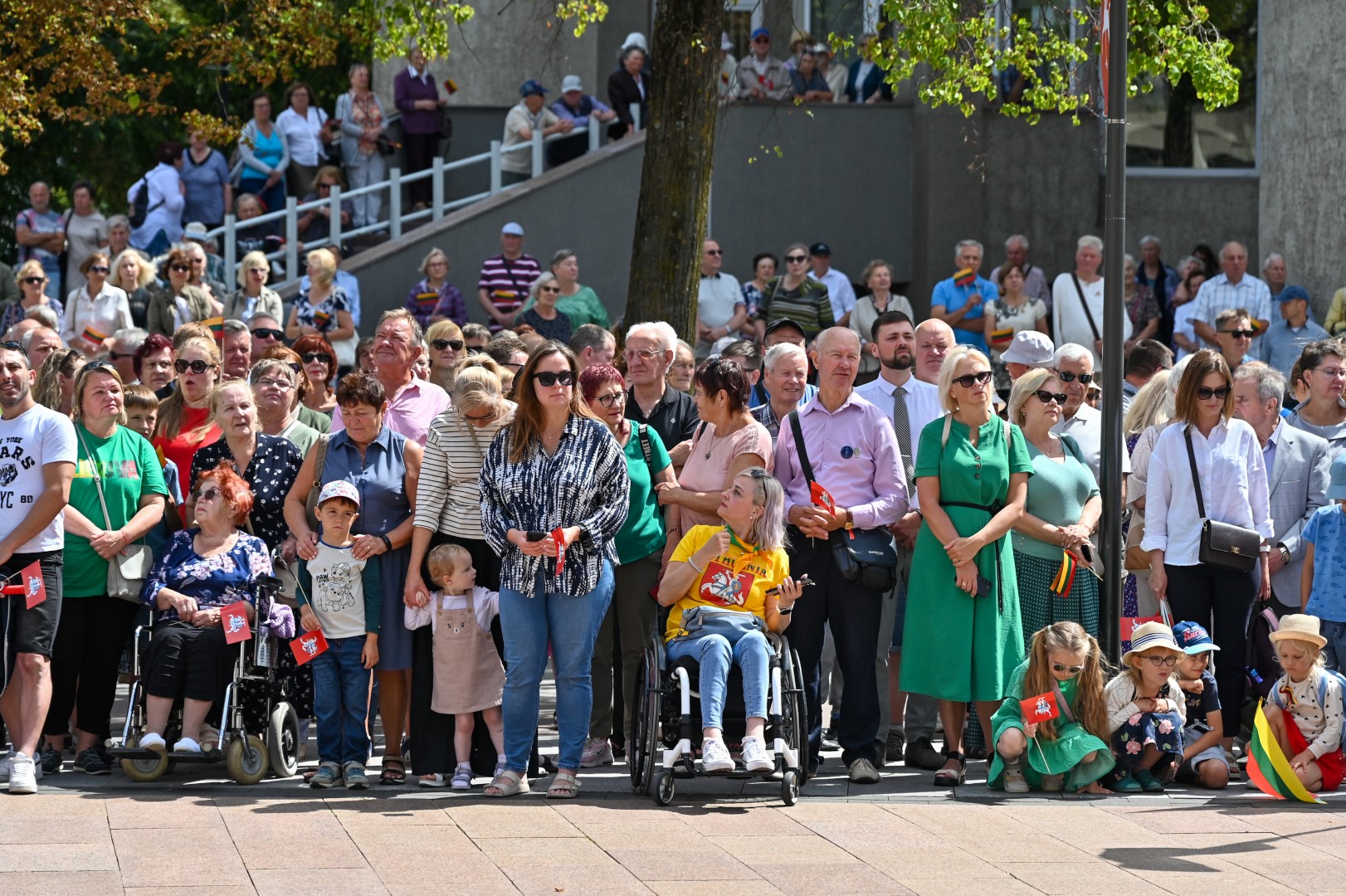 Vidurdienį Laisvės aikštėje, prie miesto Savivaldybės iškilmingai iškelta Trispalvė.