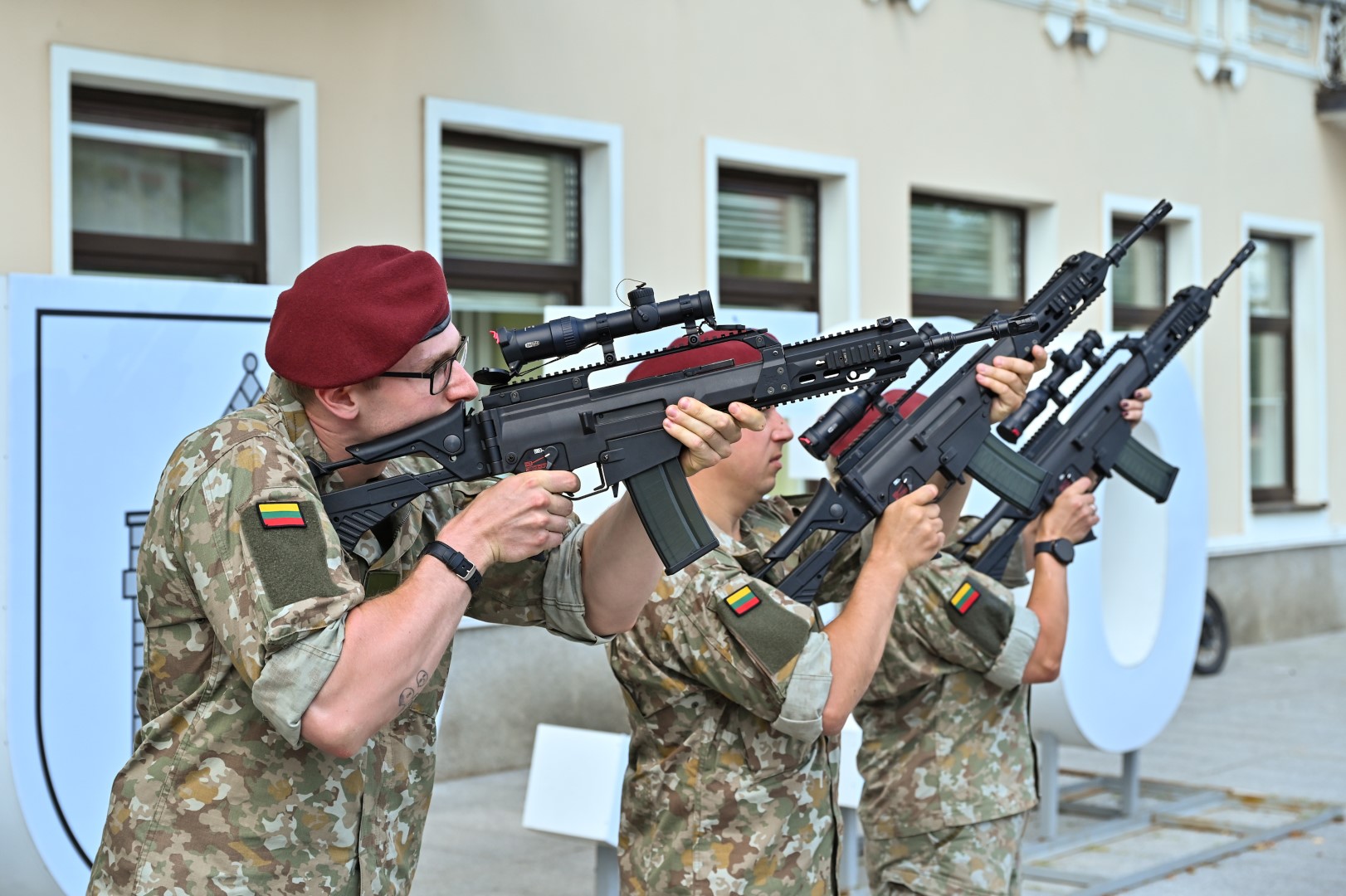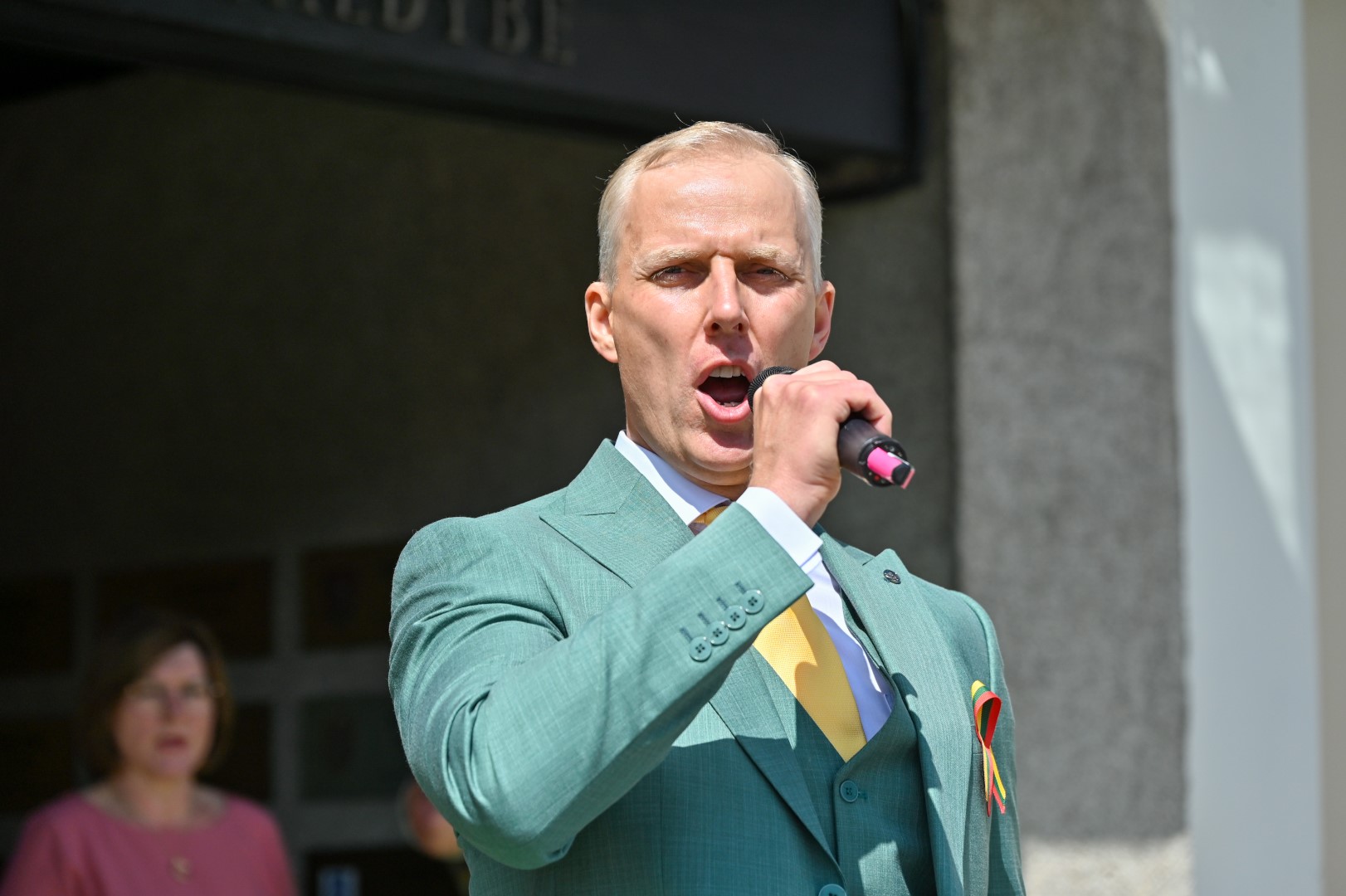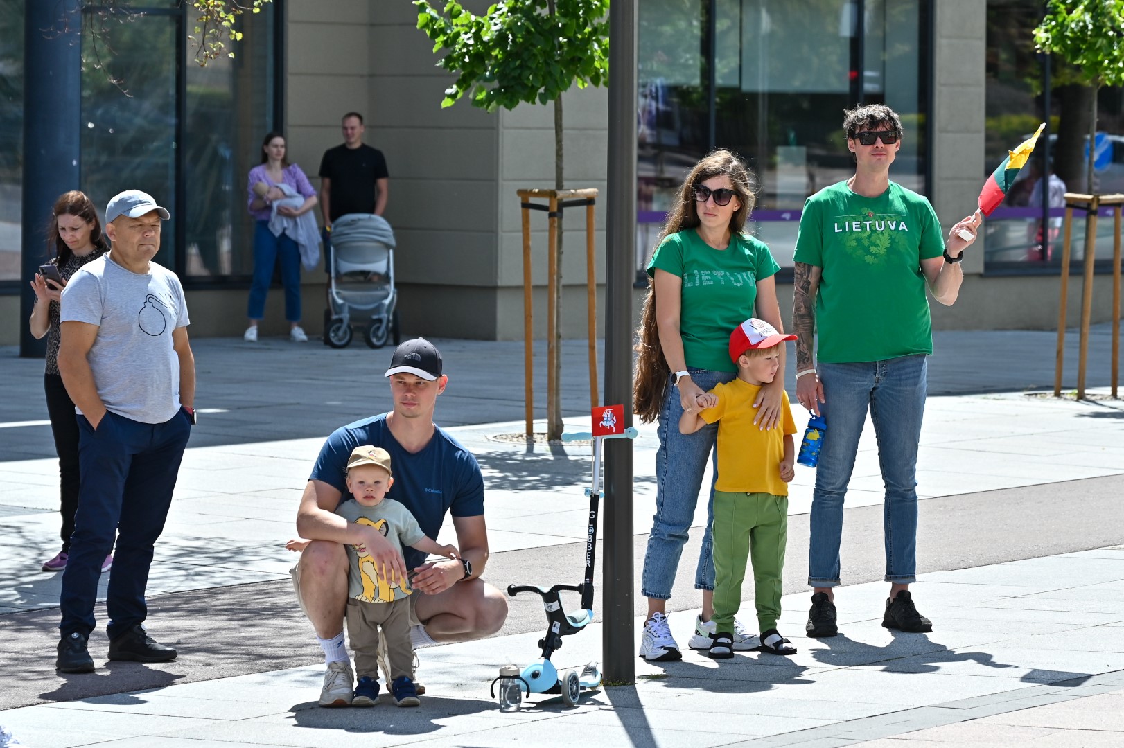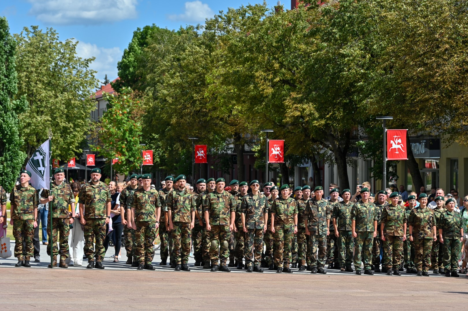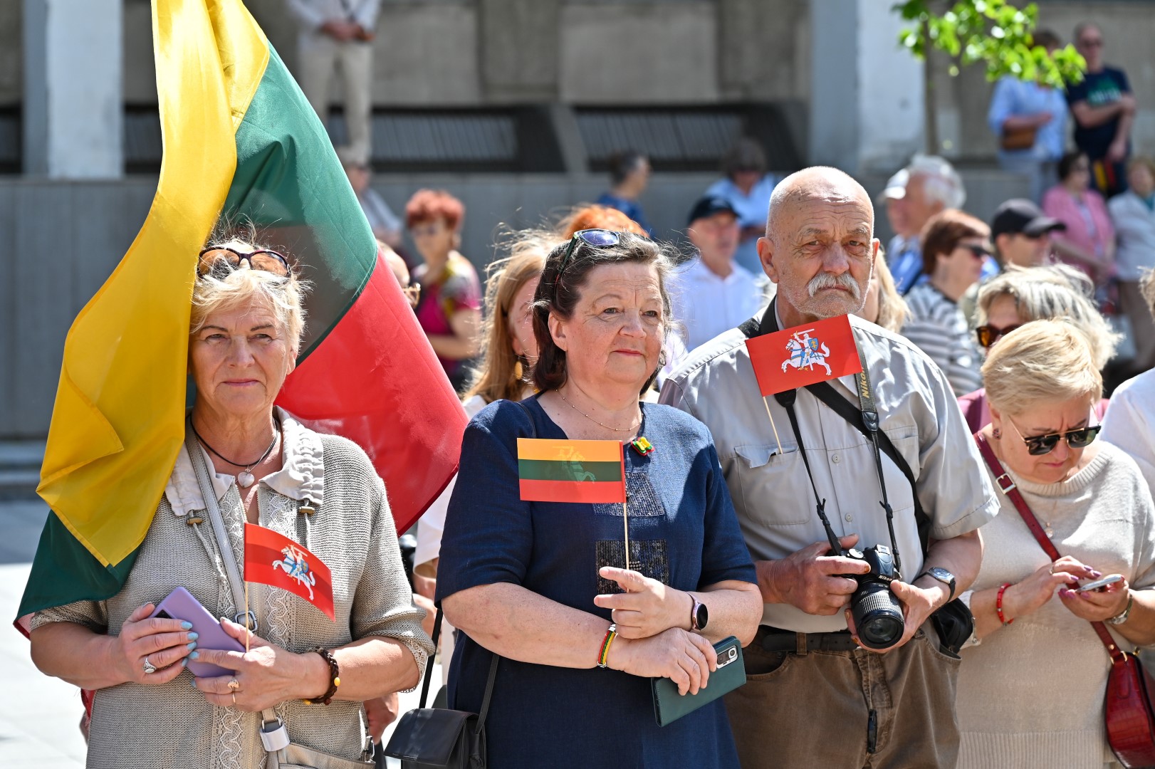 Vidurdienį Laisvės aikštėje, prie miesto Savivaldybės iškilmingai iškelta Trispalvė.