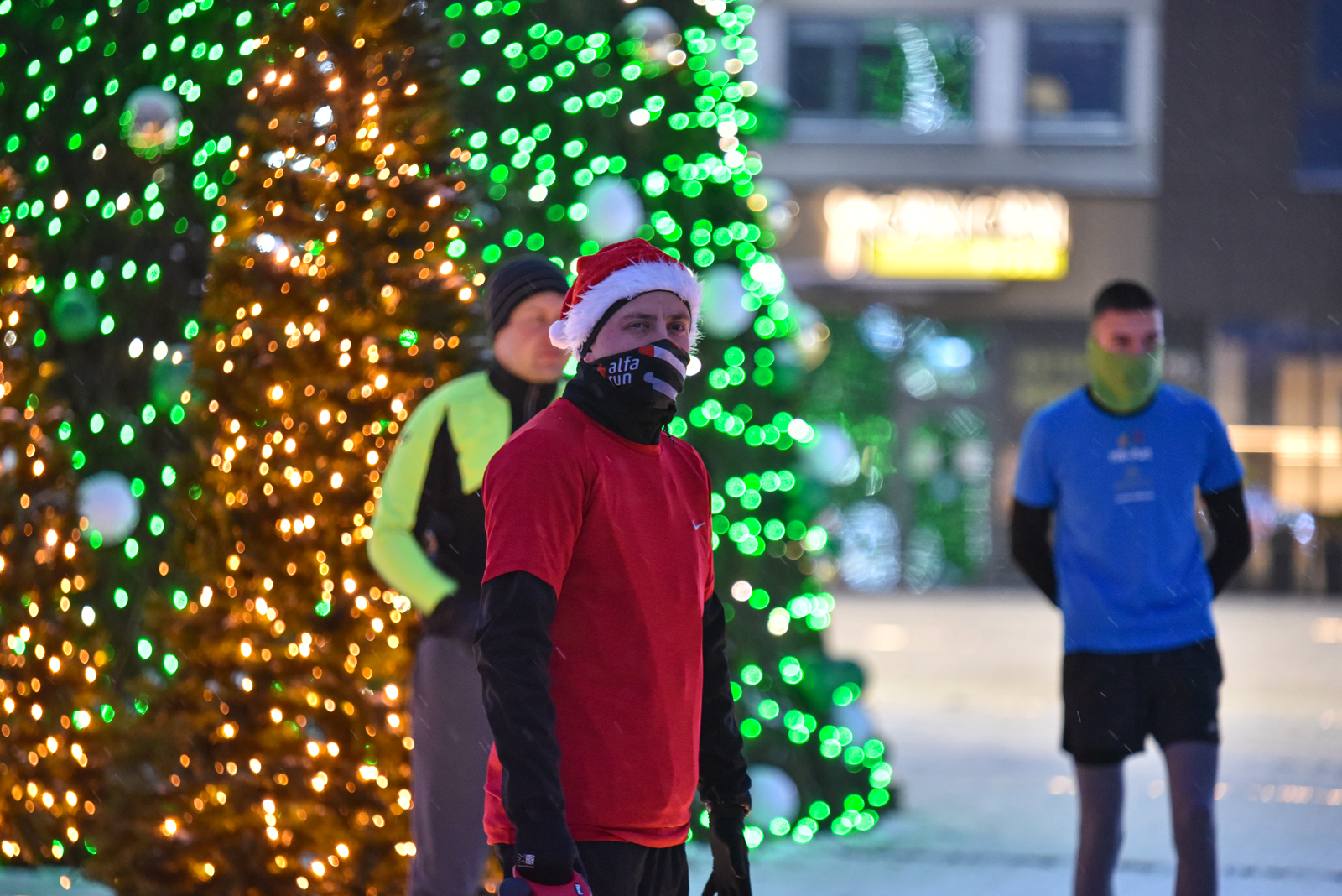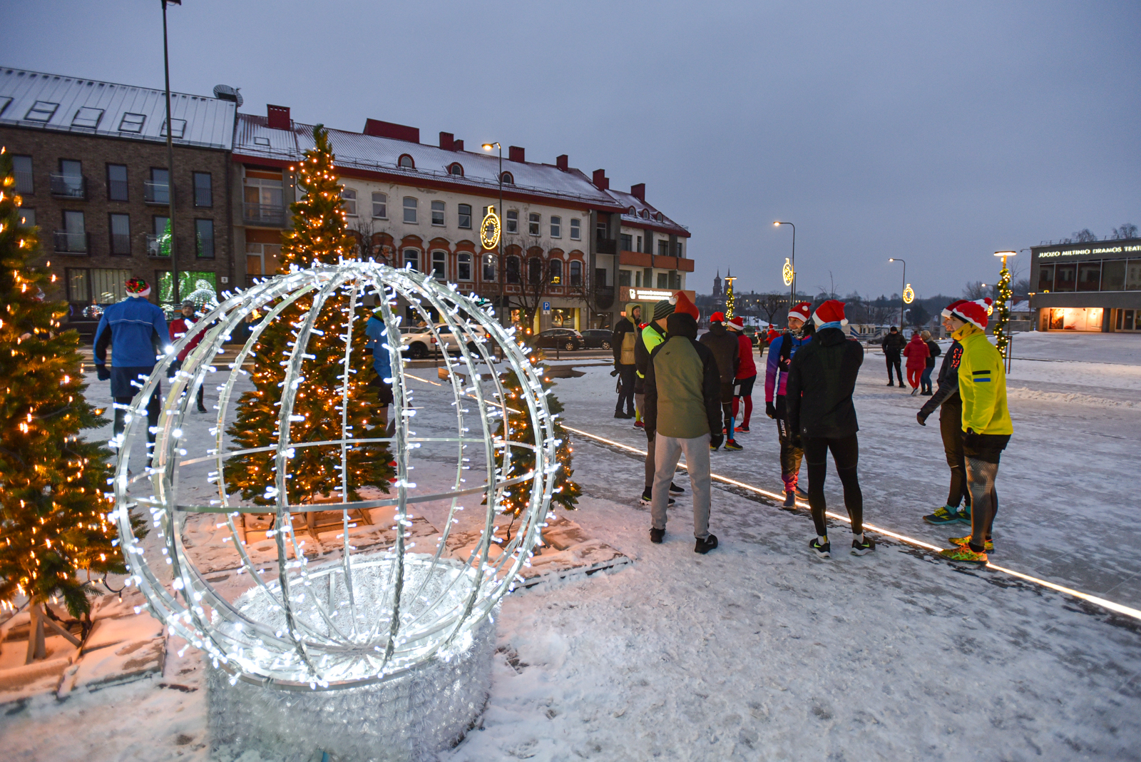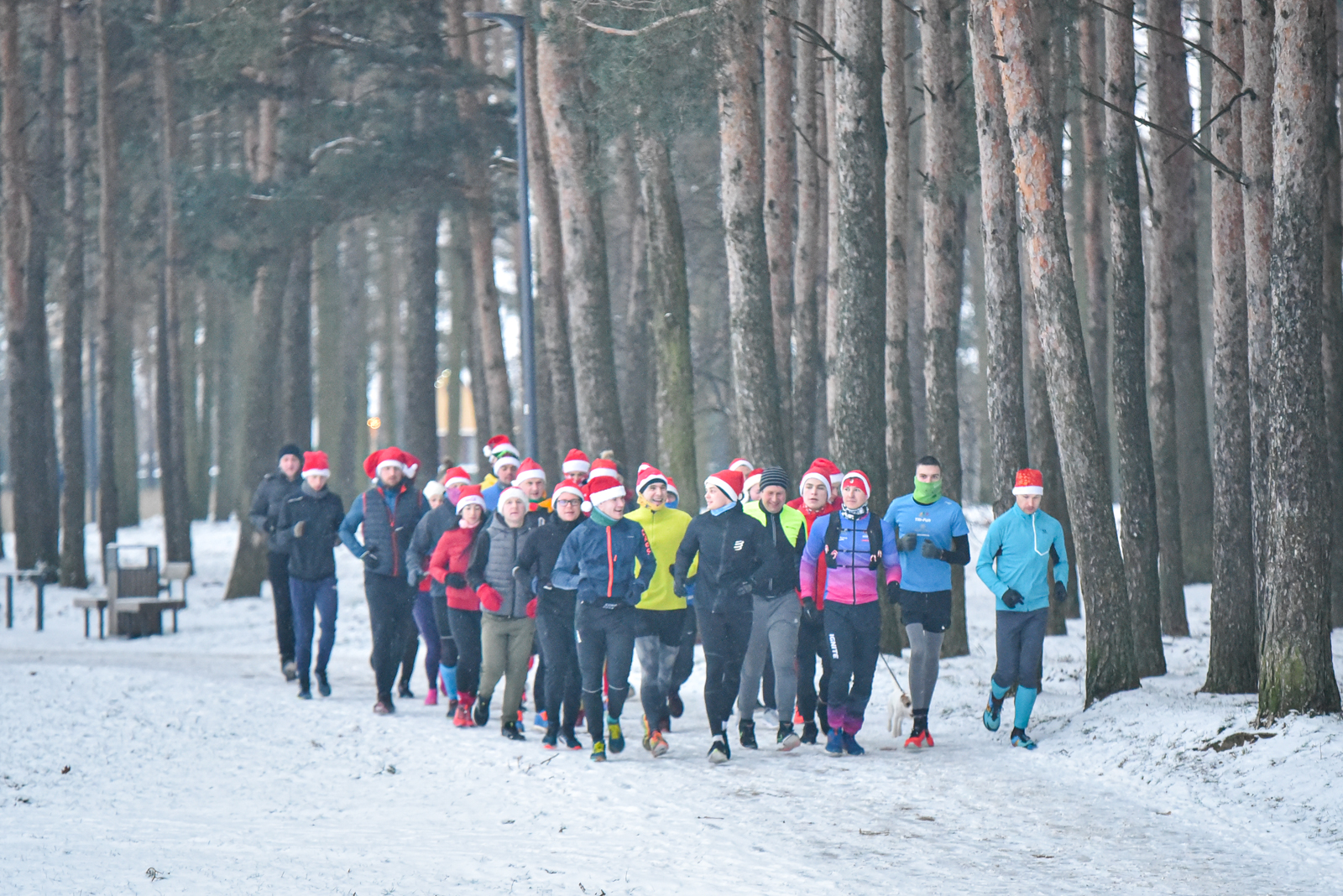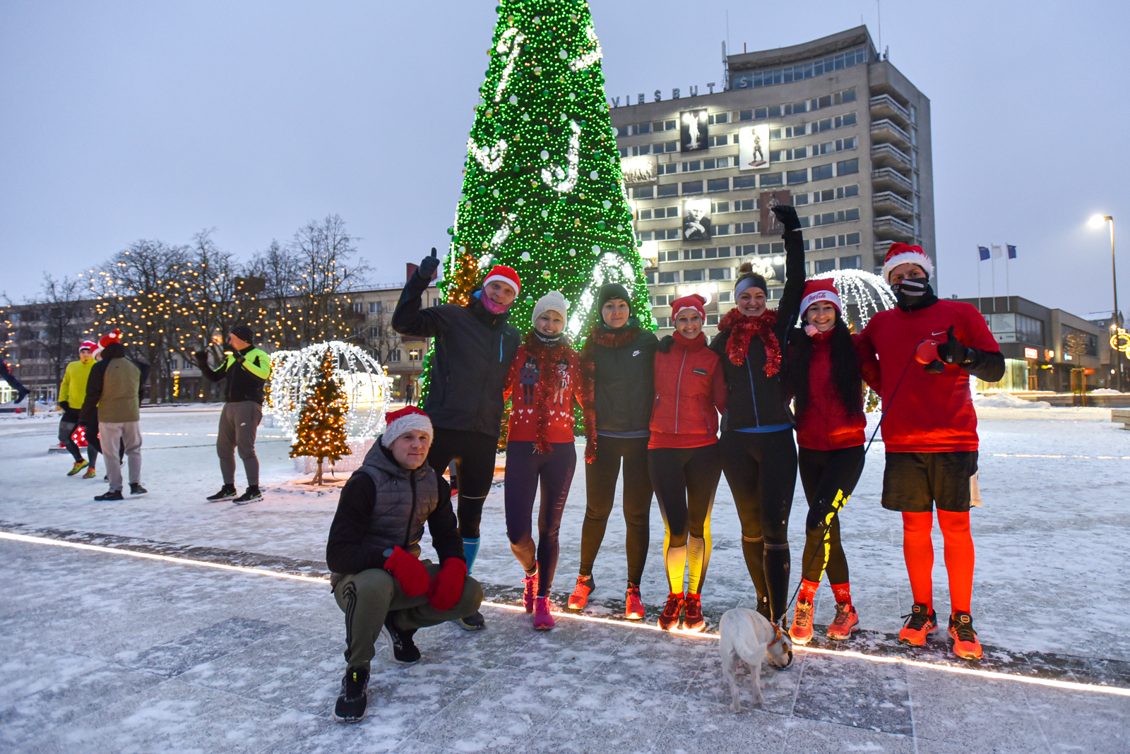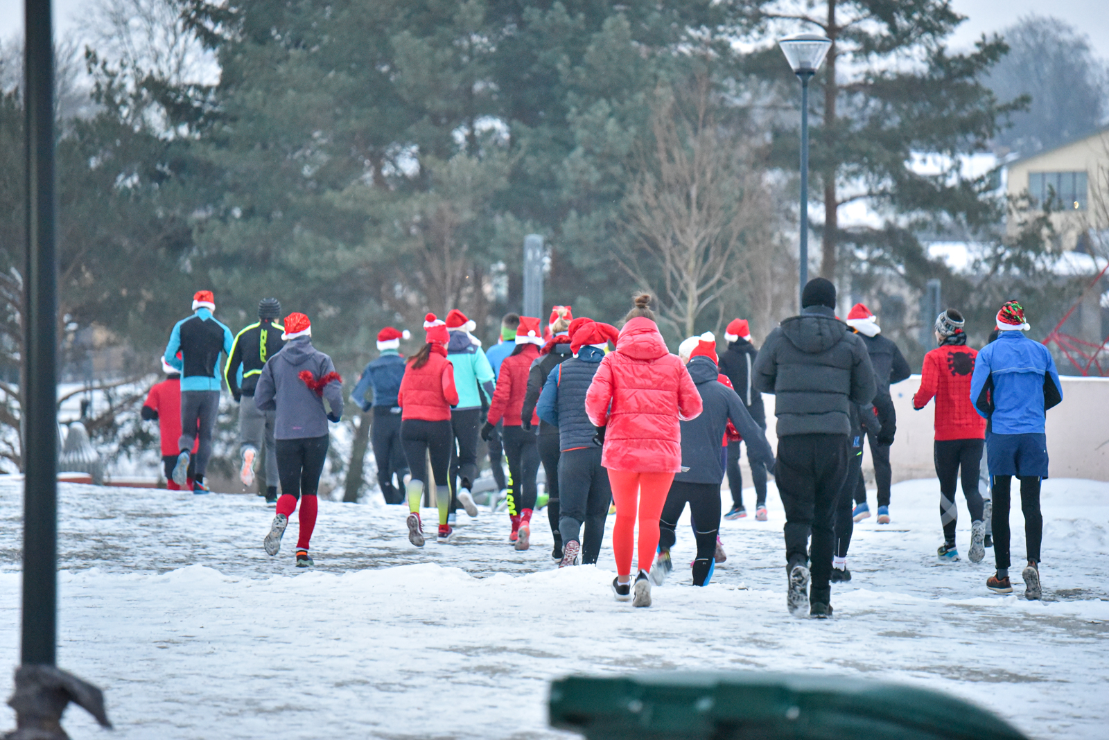 Iš čia būrys aistruolių startavo kalėdiniam bėgimui per miestą. Iš Laisvės aikštės bėgikai suko per rekonstruoti baigiamą Senvagę ir pagal Nevėžio upę Taikos alėja bėgo iki Kultūros ir poilsio parko. Jame apsukę ratą tuo pačiu maršrutu sugrįžo atgal, įveikę 10 kilometrų.