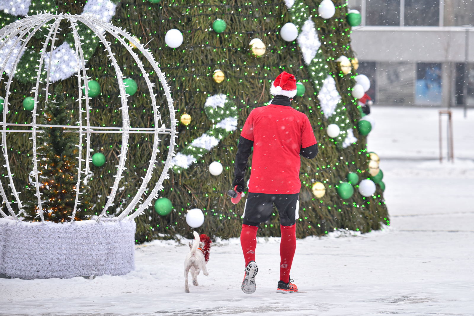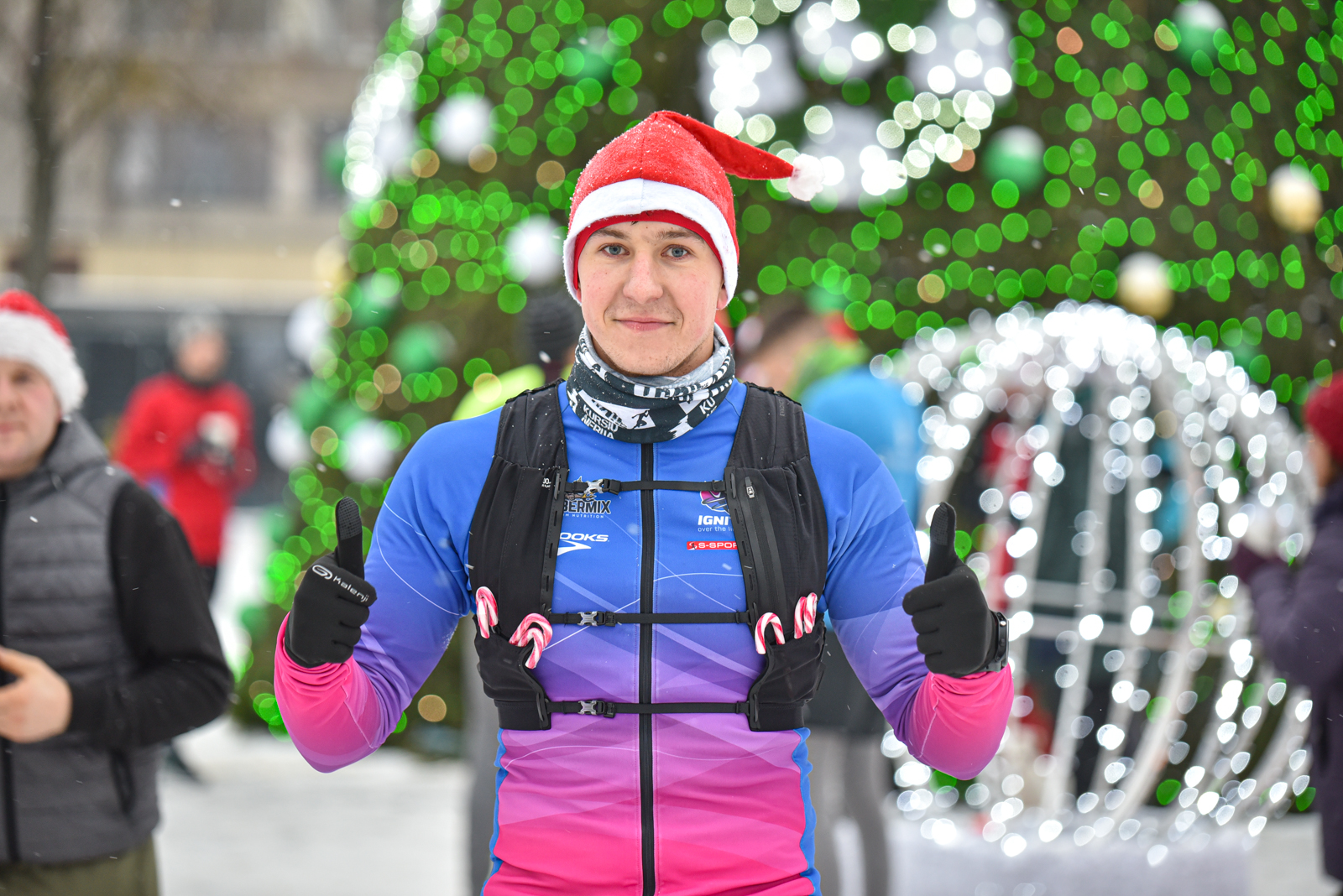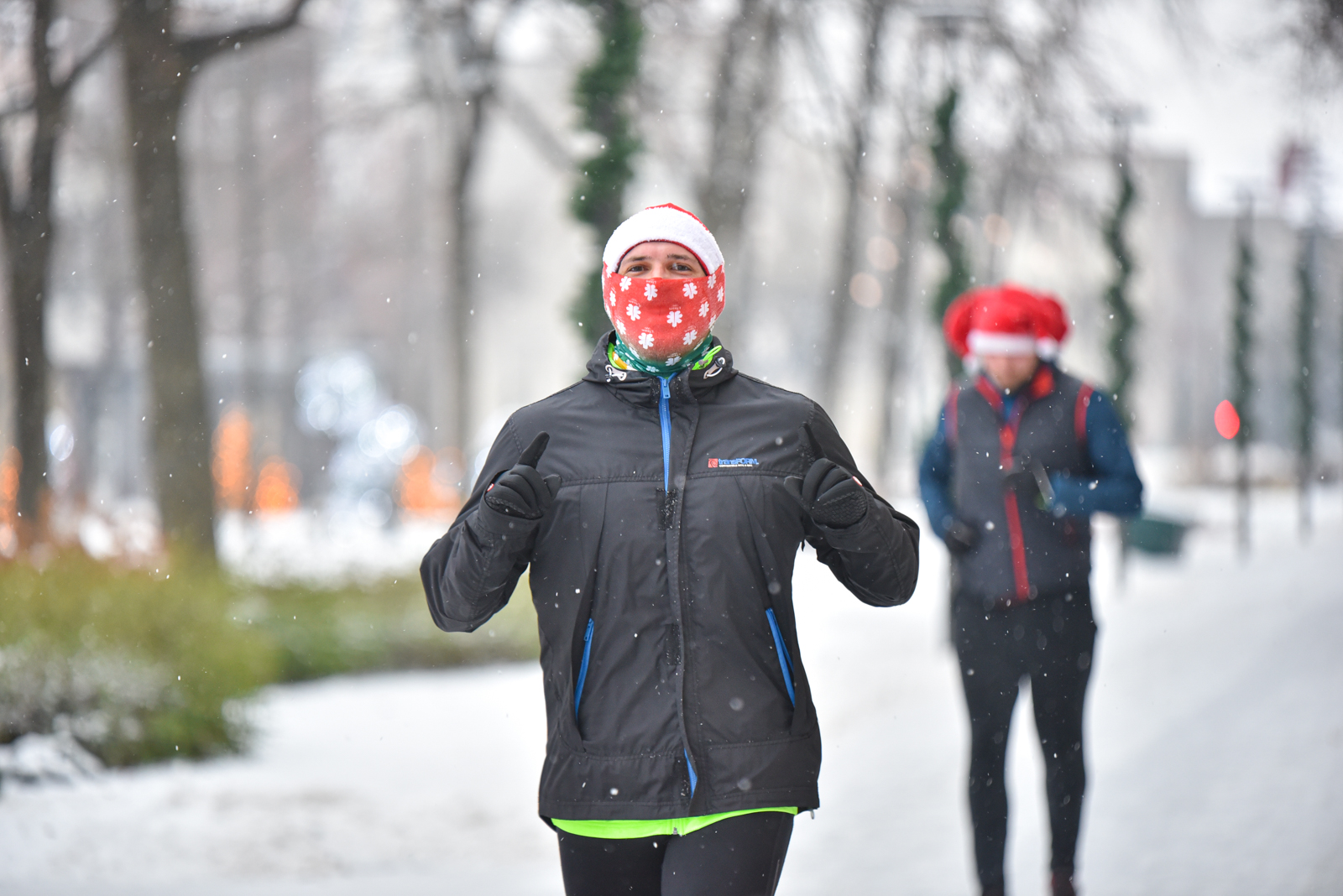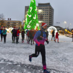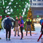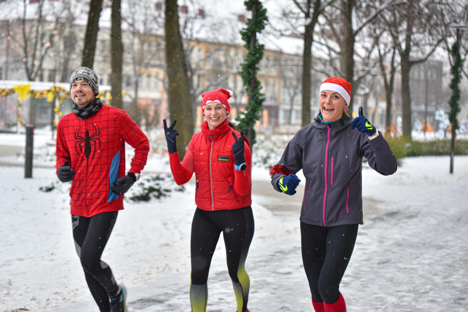 Iš čia būrys aistruolių startavo kalėdiniam bėgimui per miestą. Iš Laisvės aikštės bėgikai suko per rekonstruoti baigiamą Senvagę ir pagal Nevėžio upę Taikos alėja bėgo iki Kultūros ir poilsio parko. Jame apsukę ratą tuo pačiu maršrutu sugrįžo atgal, įveikę 10 kilometrų.