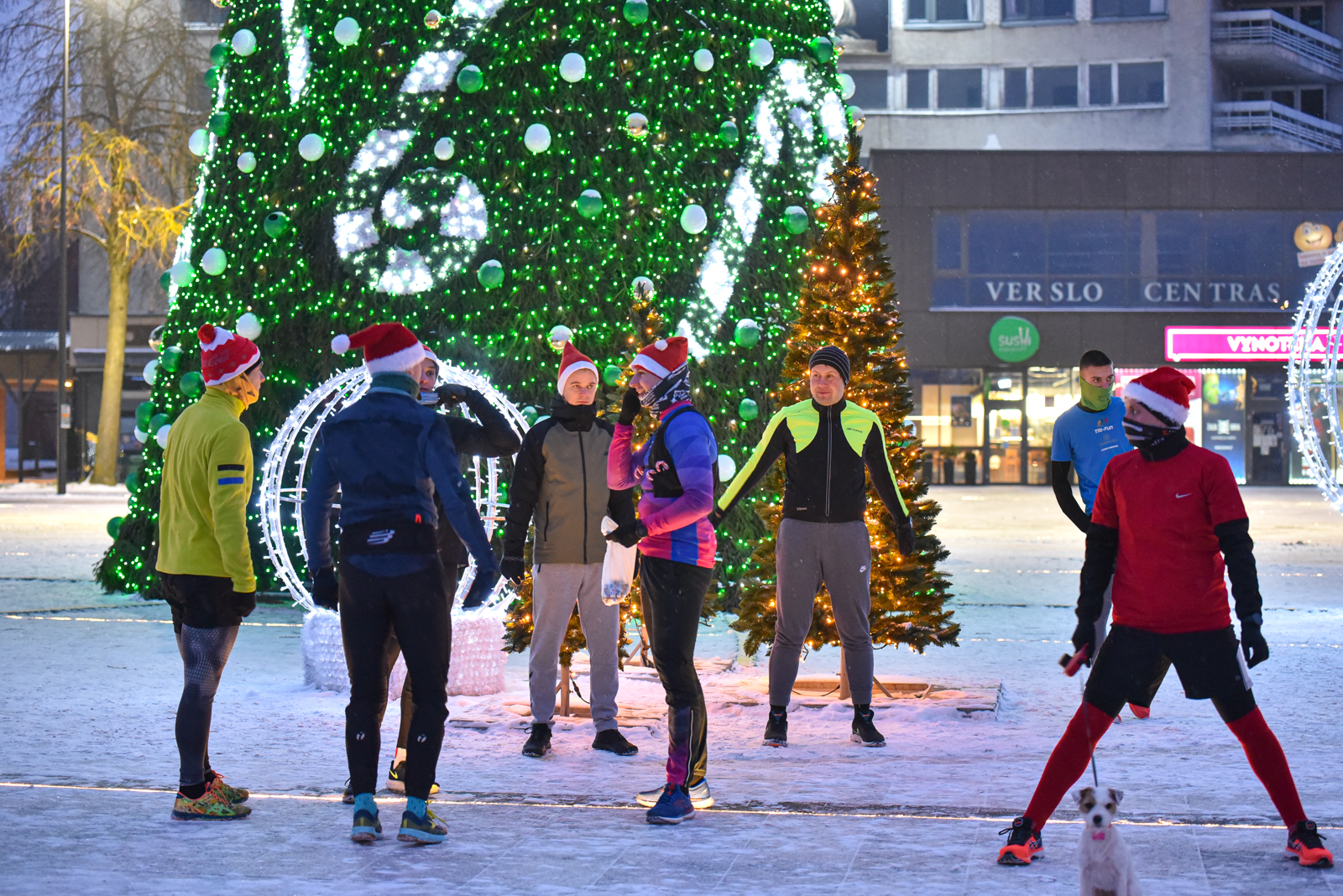 Kelios dešimtys entuziastų penktadienio ankstyvą rytą susirinko Laisvės aikštėje prie kalėdinės eglės.