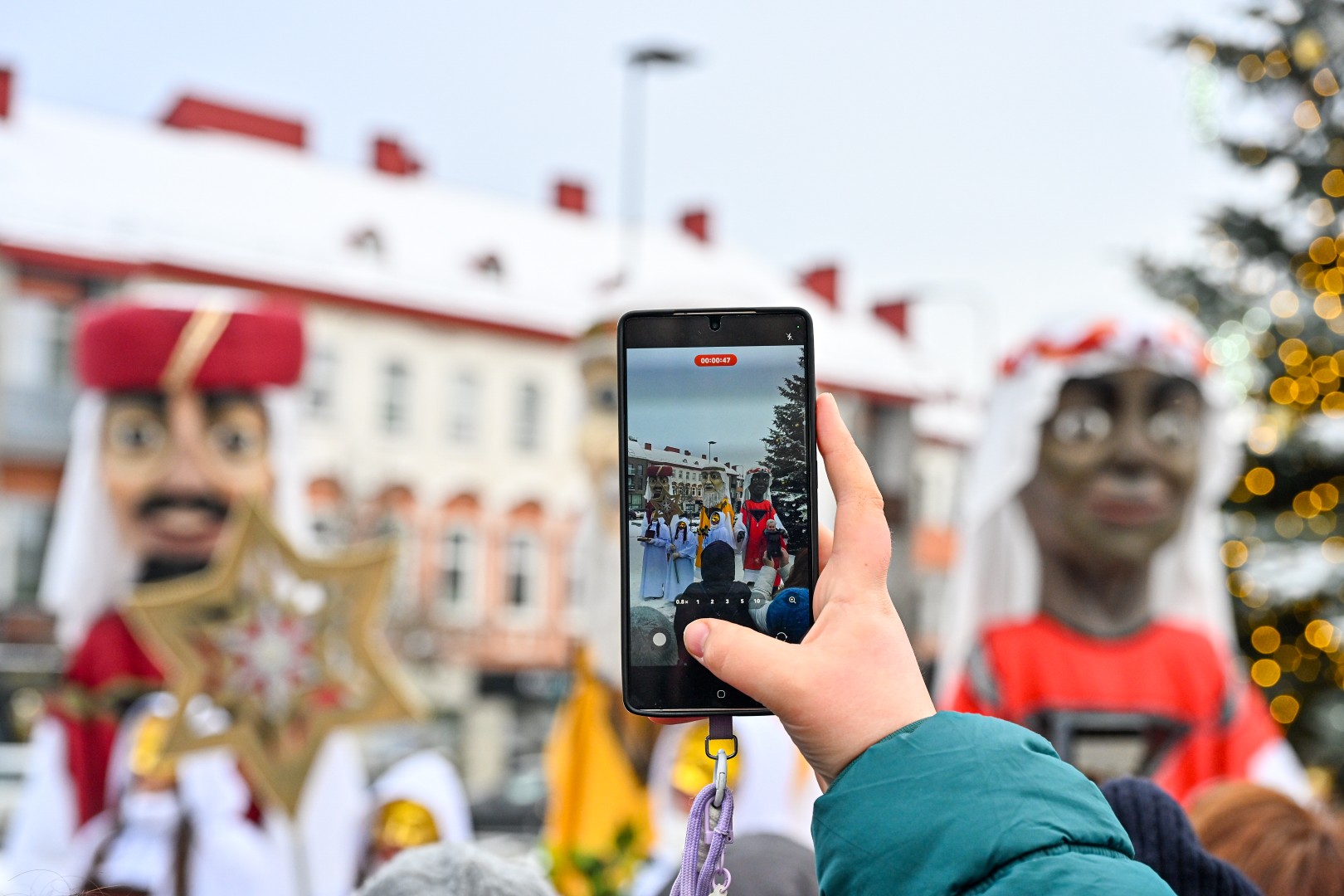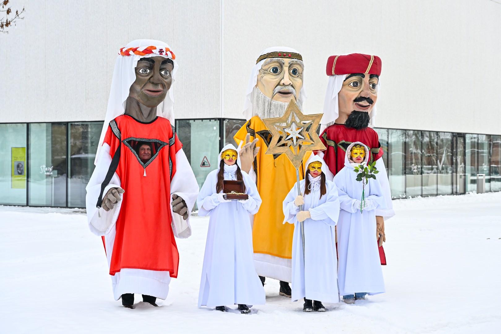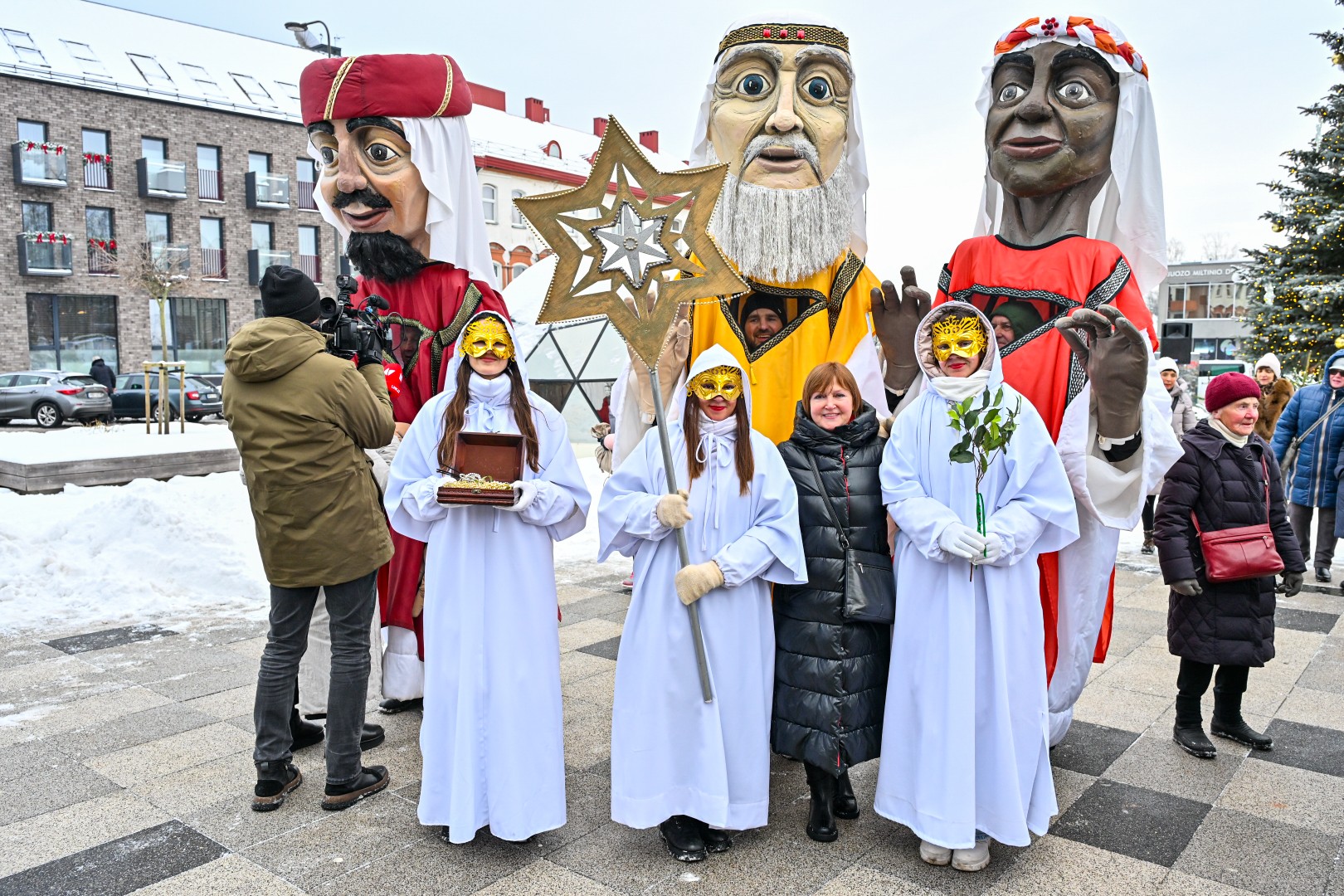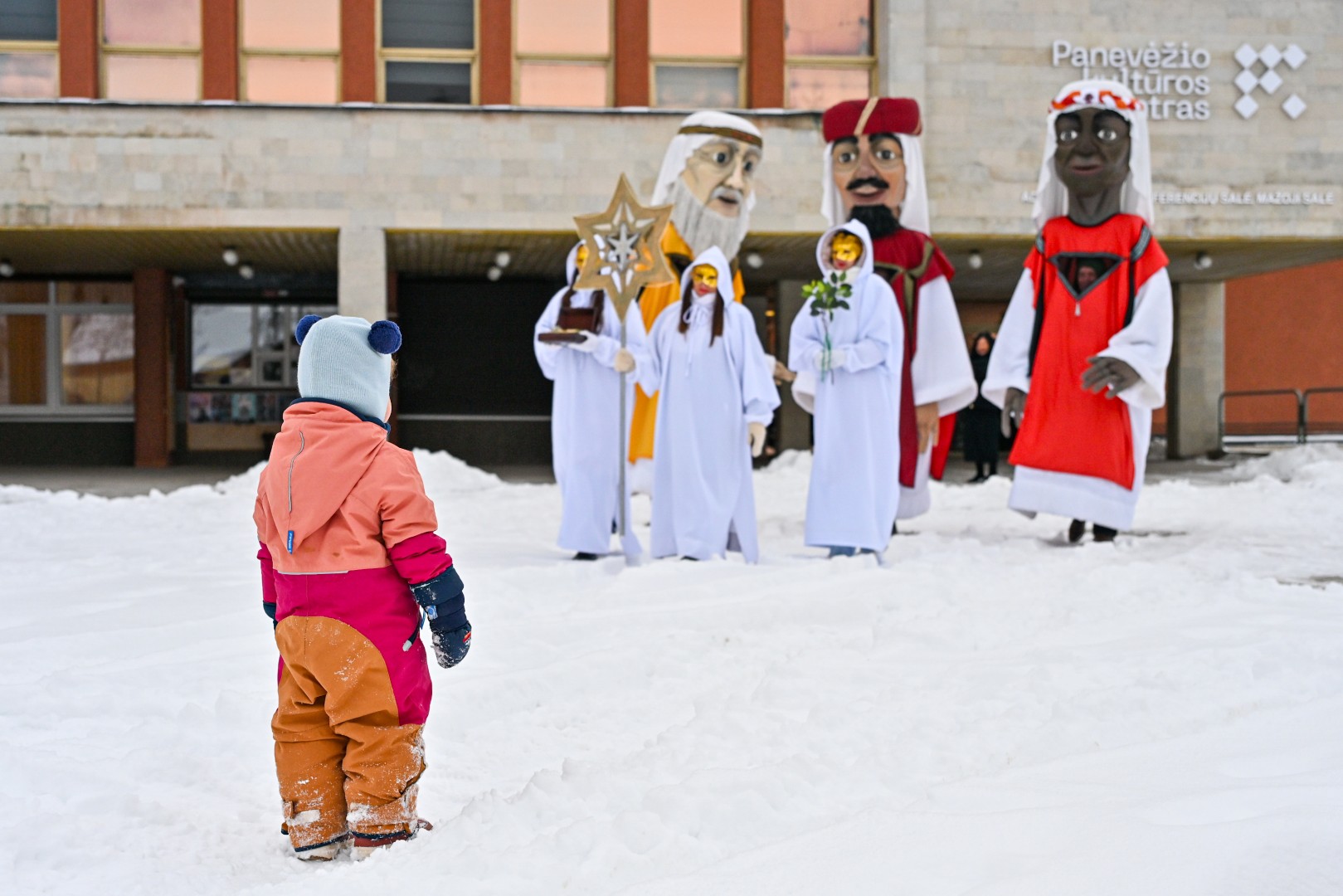 Įspūdingo ūgio karaliams pasiekus Kalėdų eglę, šalčio nepabūgę ir Laisvės aikštėje susirinkę panevėžiečiai išgirdo jų teatralizuotą sveikinimą.