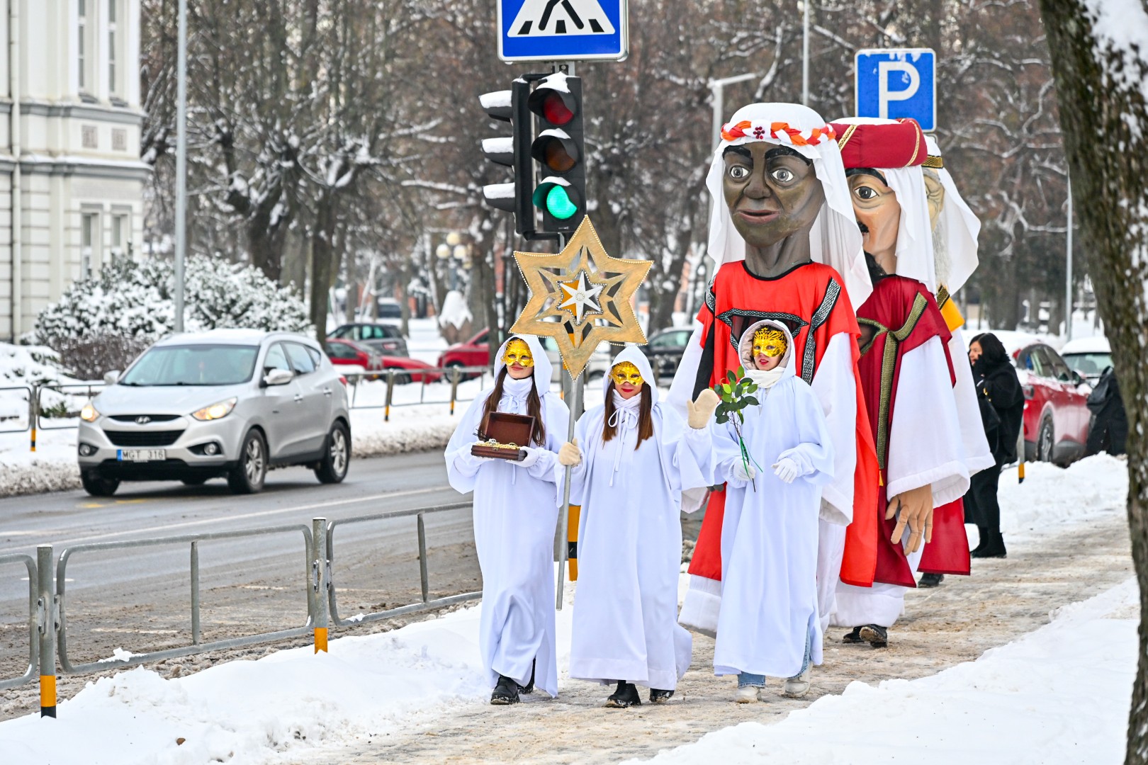 Kalėdinį laikotarpį tradiciškai užbaigė per Panevėžį pražygiavę ir praeivius pasveikinę Trys Karaliai.
