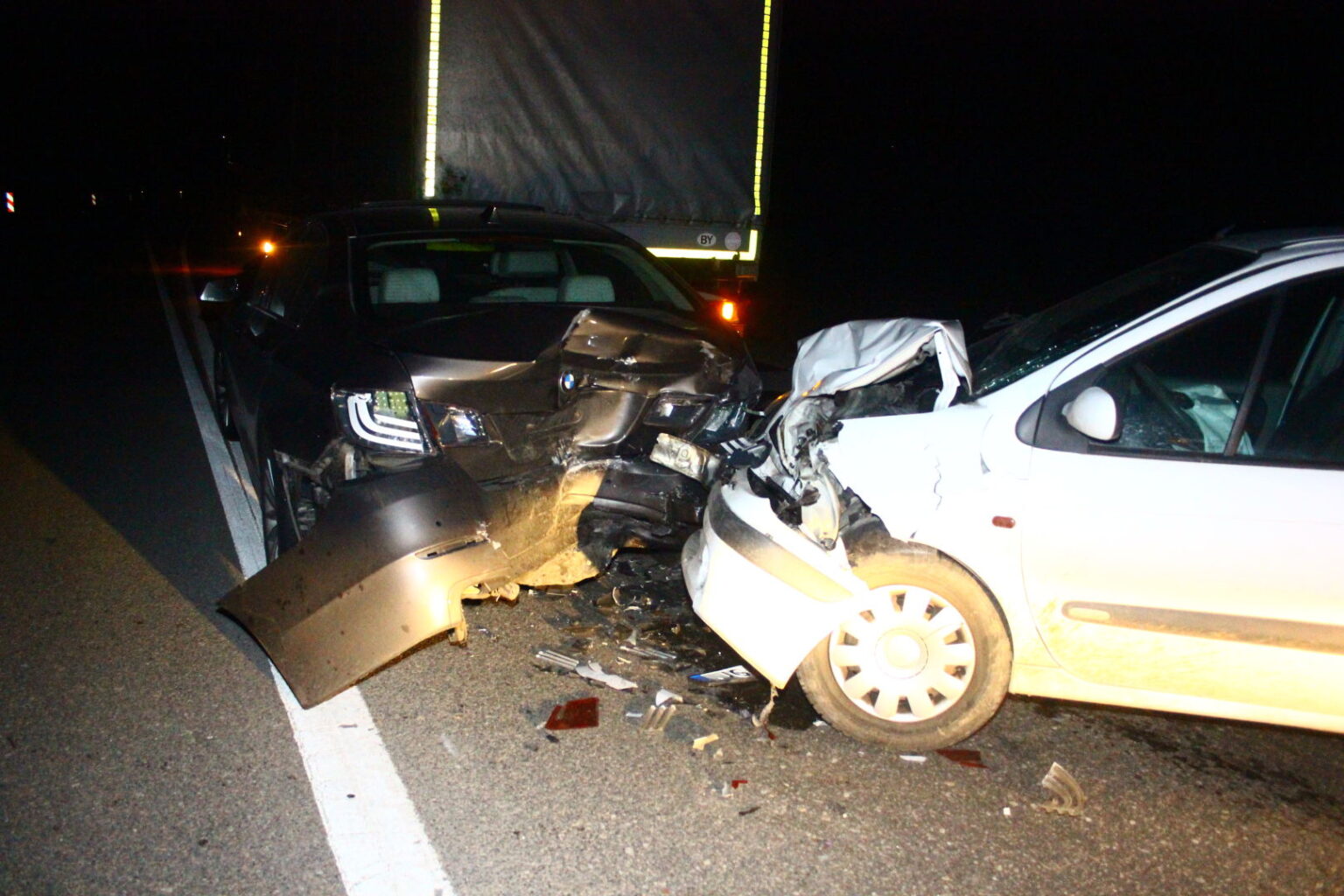 Neblaivaus vairuotojo sukeltoje avarijoje apgadintas prabangus BMW automobilis ir vilkikas. Pirminiais duomenimis, netoli sankryžos su keliu, vedančiu į Upytę, link Panevėžio vykęs vilkikas ėmė mažinti greitį, pastebėjęs, kad remontuojamo kelio atkarpoje užsidegė raudonas šviesoforo signalas. Iš paskos vilkiko važiavęs BMW automobilis taip pat pradėjo stabdyti, tačiau paskui važiavęs „Renault“ vairuotojas nespėjo sureaguoti ir trenkėsi BMW į galą, o šis – į vilkiką.