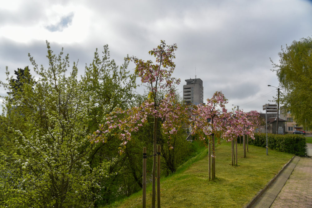 Į Lietuvą plūstelėjus šiltesniam orui ir iš po debesų išlindus saulei, visą grožį išskleidė Panevėžio centro puošmenos – gražuolės sakuros Kranto gatvėje, ant Senvagės šlaito.