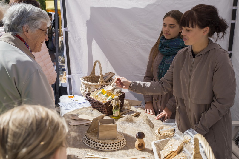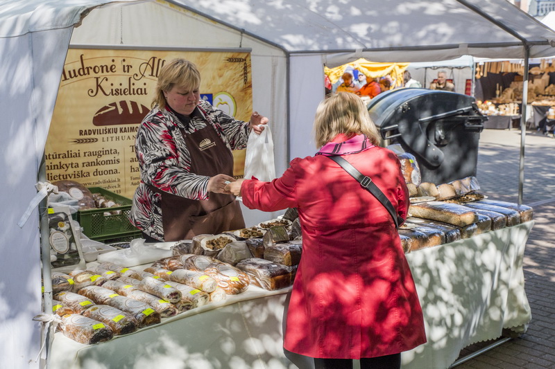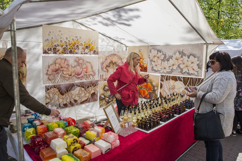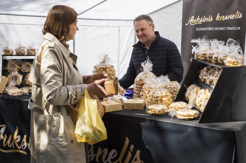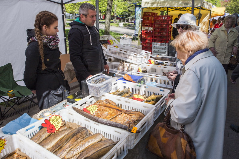 Ten, pavasario mugėje, savo prekes ir paslaugas pristato per šimtą iš visos Lietuvos sugužėjusių gamintojų. Po visą miesto aikštę išsirikiavę prekybininkai siūlė rūkytų mėsos gaminių, saldainių, chalvos, konditerijos gaminių ir naminės duonos, čia pat vietoje rūkomos žuvies, šaltalankių sulčių ir kitų gėrybių.