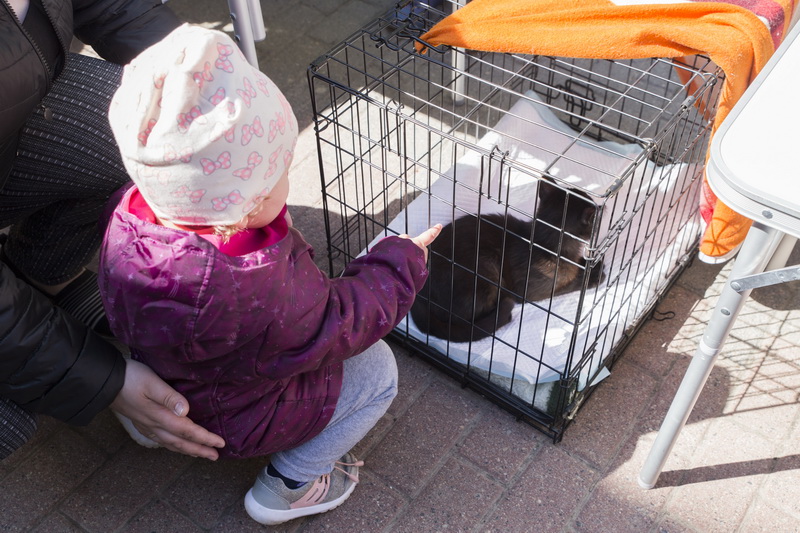 Mugėje apsilankančių gyventojų gerumo tikėjosi ir beglobių gyvūnų organizacijos atstovės. Savanorės atsivežė tris kiek paūgėjusius katinus, kuriuos mielai perduos į atsakingų naujų šeimininkų rankas.