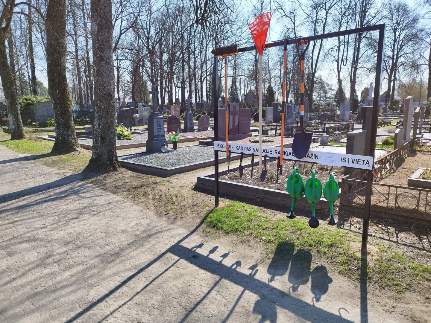 Stovai su įrankiais įrengti panevėžiečiams ir atvykusiems iš tolimesnių miestų, kurie užsuks aplankyti artimųjų kapų ir bus neapsirūpinę kapų priežiūrai reikalingomis priemonėmis. Čia jie ras šluotą, grėblį, kastuvą, laistytuvą, kauptuką, grėbliuką, grėblį vėduoklę.