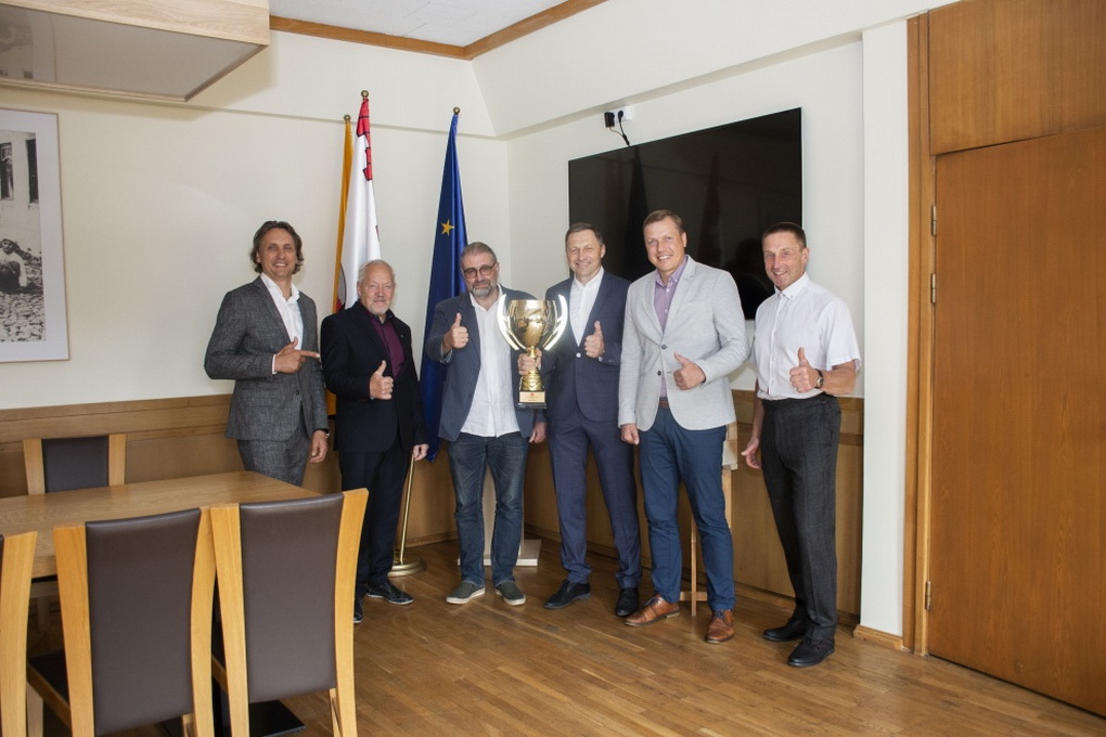 Panevėžio miesto meras Rytis Račkauskas šiandien įteikė padėką miestą garsinančiai „Olimpo“ ledo ritulio veteranų komandai.