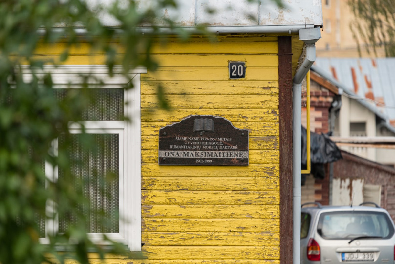 Atminimo lenta ant namo Pušaloto g. 20, Panevėžyje, kuriame 1939–1957 m. gyveno pedagogė, humanitarinių mokslų daktarė Ona Maksimaitienė. „Mažylis Media“ nuotr.