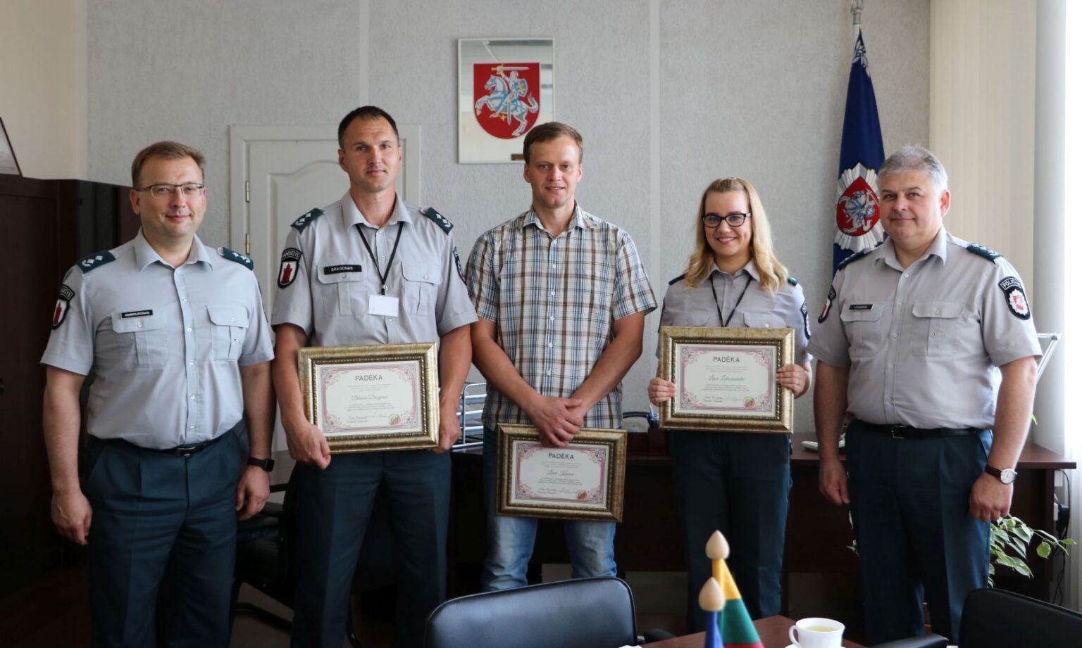 Už malonų bendravimą, profesionalumą, atsakingą ir pasiaukojamą darbą šiandien Nusikaltimų nuosavybei tyrimo valdybos pareigūnams D. Dragūnui, L. Kaunui ir L. Lukoševičiūtei padėkojo Panevėžio apskrities vyriausiojo policijos komisariato vadovai. Jie sveikino, dėkojo už puikius rezultatus, minėjo, kad visada malonu išgirsti gražius gyventojų padėkos žodžius, palinkėjo ir ateityje sąžiningai vykdyti savo misiją – „Ginti, saugoti, padėti“.