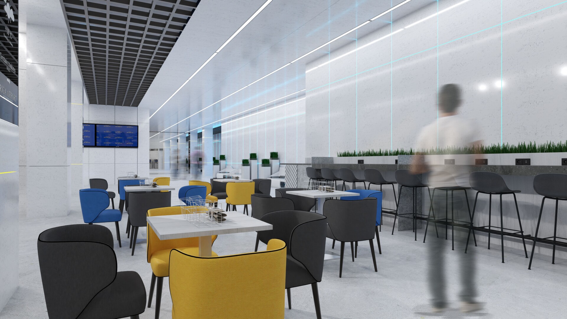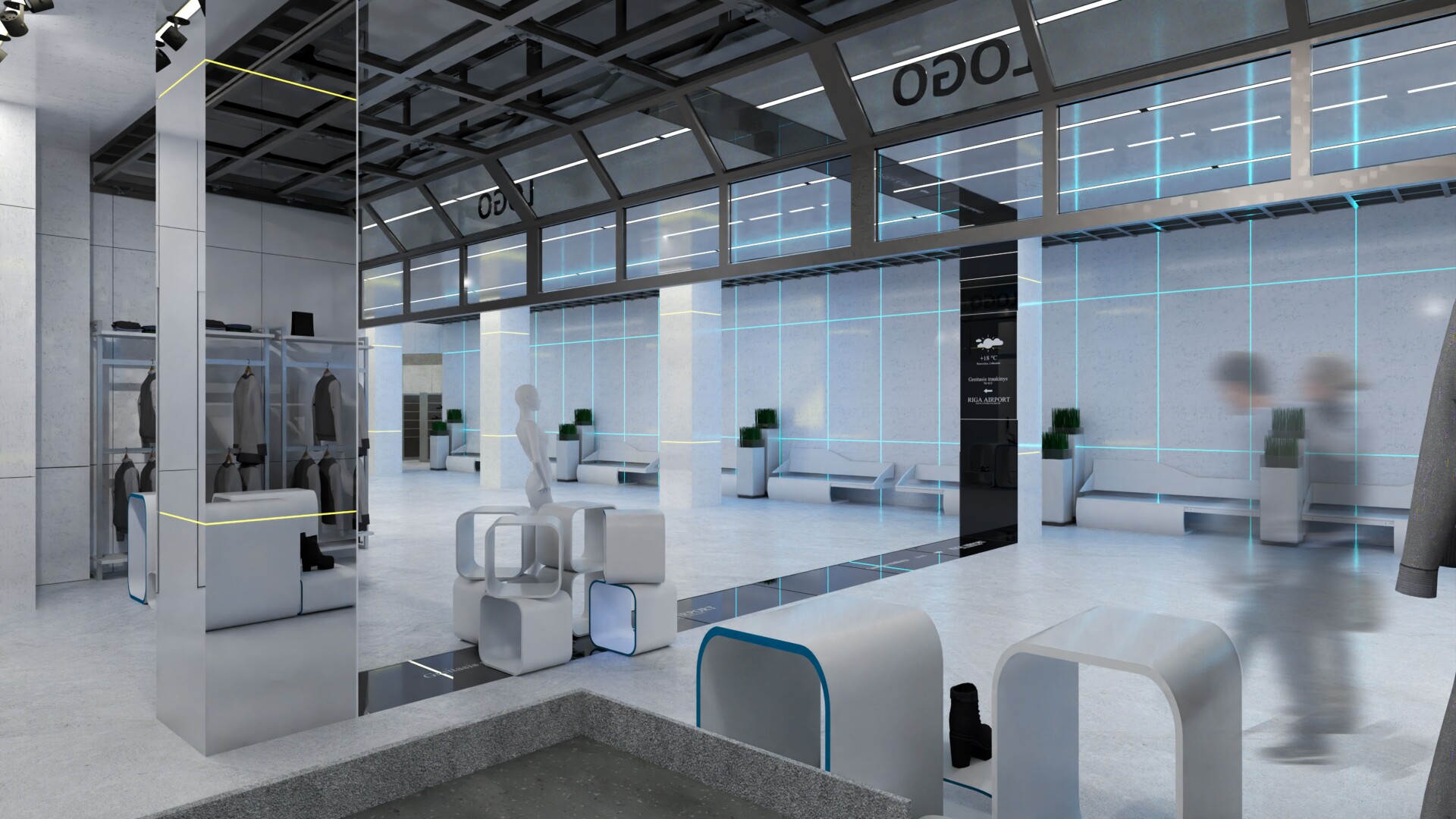 „Projekto architektūrą pasirinkau linijinio tipo, plačių koridorių, kurie yra pritaikyti valdyti žmonių srautus, o interjerą pasirinkau iš šviesių apdailos medžiagų, kurios užtikrintų sterilumą, higieną, atsparumą įvairiems poveikiams, o pats medžiagiškumas ir spalvų pasirinkimas būtų priimtinas įvairaus tipo ir amžiaus keleiviams“, – dalinasi Lukas Bičiūnas bei priduria, jog pasirinktas interjero stilius yra futuritinis, pasitelkiant naujausias technologijas, skaitmeninimą, interaktyvumą ir pritaikymą, jog sprendimai būtų išmanūs, naujoviški, modernūs ir priimtini ne tik jaunimui, bet ir senjorams bei specialių poreikių keleiviams. Taip pat vieta požeminei stočiai buvo pasirinkta ne atsitiktinai – buvo įvertintas susisiekimas iš miesto į šią kiek užmiestyje esančią stotį.
