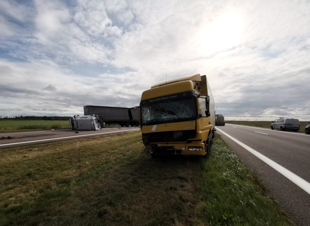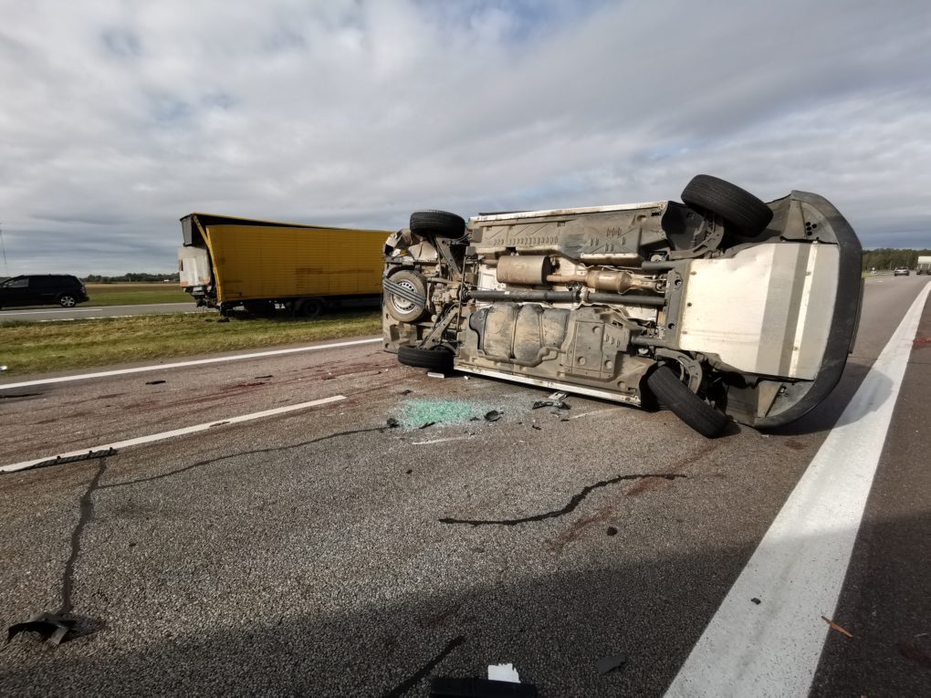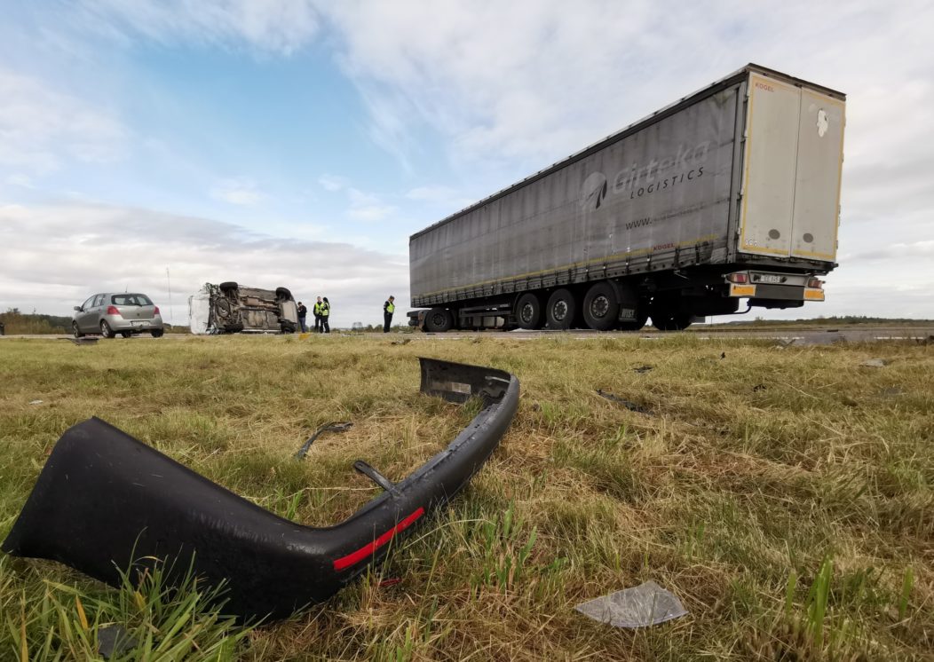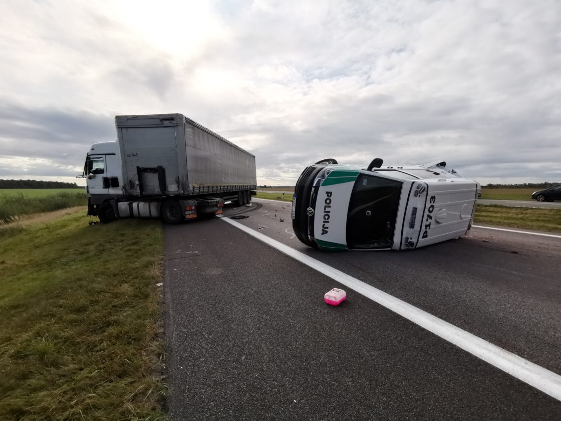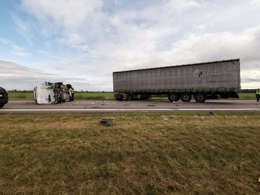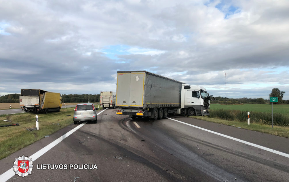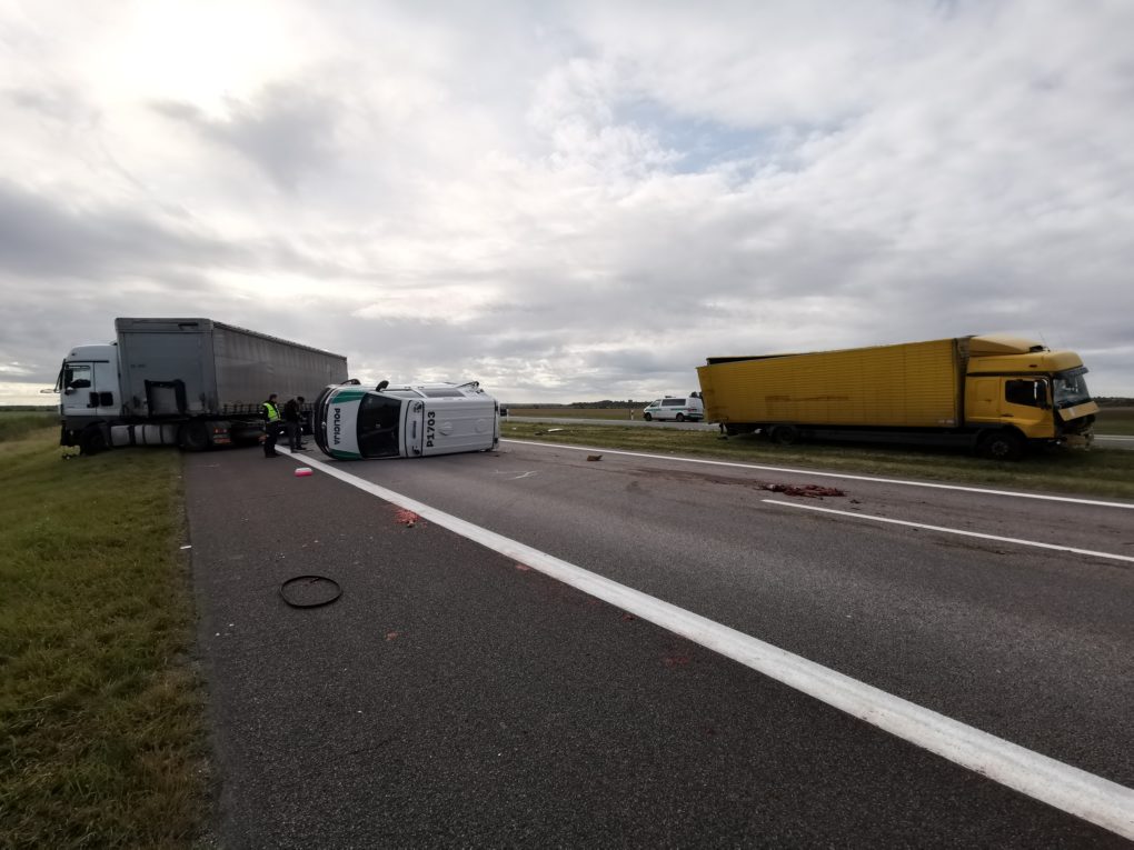 Apie 8 val. kelyje Vilnius-Panevėžys du lengvieji automobiliai pateko į techninį eismo įvykį. Vairuotojams nesutarus dėl kaltės, buvo iškviesti pareigūnai. Praėjus maždaug porai valandų, jiems aiškinantis avarijos aplinkybes, autostrada važiavusio vilkiko vairuotojas per vėlai pastebėjo kelyje stovintį policijos tarnybinį automobilį „VW Transporter“ su įjungtais švyturėliais ir puolė staigiai stabdyti. Tuo metu į jį trenkėsi iš paskos važiavęs kitas vilkikas. Smūgio nublokšta sunkiasvorė transporto priemonė rėžėsi į tarnybinį policijos automobilį ir šis vertėsi ant stogo. Laimei, žmonių tuo metu policijos tarnybiniame automobilyje nebuvo.