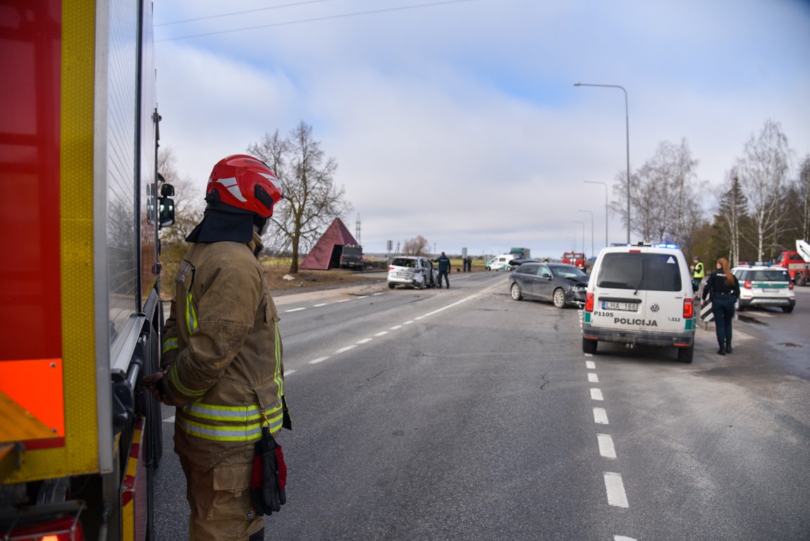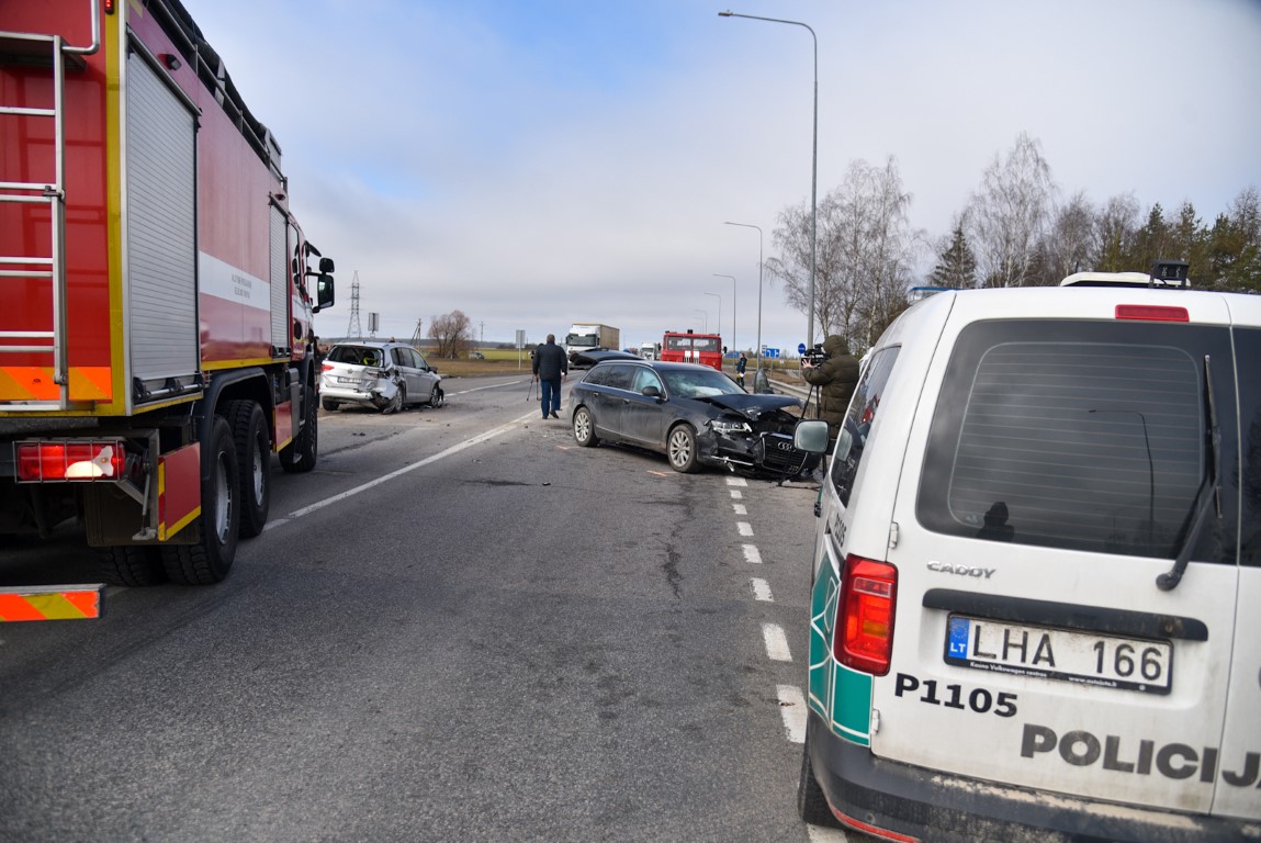 Į įvykio vietą atvykę policijos pareigūnai, ugniagesių ir greitosios medicinos pagalbos ekipažai rado tris susidūrusius automobilius.