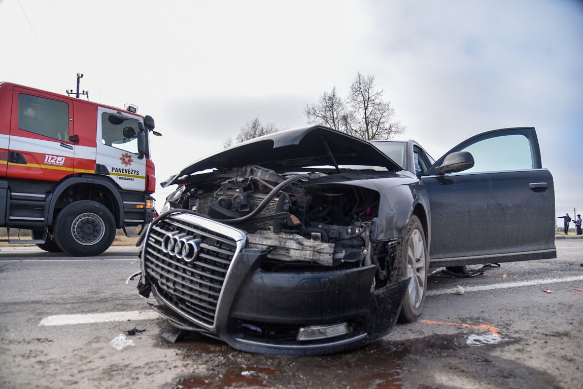 Panevėžio rajone susidūrė trys automobiliai, yra nukentėjusių