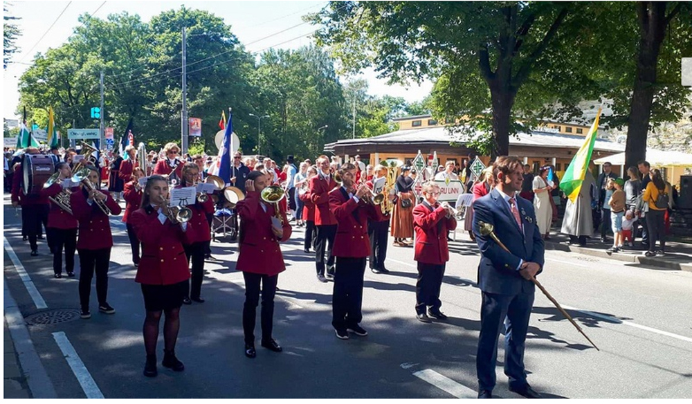 Lietuvos bei Panevėžio rajono savivaldybės vėliavos, nešamos orkestro „Aukštyn“ jaunųjų muzikantų, plevėsavo ir didžiojoje eisenoje, žygiuojančioje iš Talino senamiesčio į Dainų slėnį. Parade naujamiestiečiai grojo lietuviškus kūrinius, taip garsindami mūsų šalį.