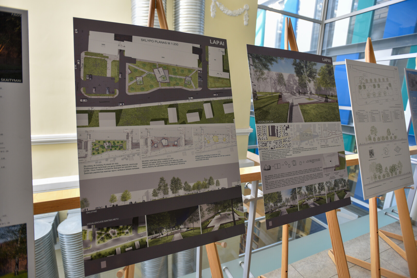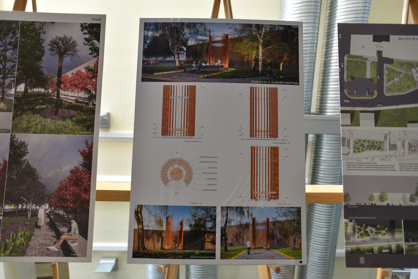 Pirmąja vieta įvertinta A. Balsio sukurtas darbas, taip pat antrąją vietą pelniusi bendra architektų Gintaro Čaikausko, Tado Gutausko, Adrianos Meilūnaitės bei trečiąją vietą užėmusių architektų Augustės Bujokaitės ir Giedriaus Bujoko sukurtos A. M. Šliogerio skvero vizualizacijos šiuo metu pristatomos G. Petkevičaitės-Bitės bibliotekoje.