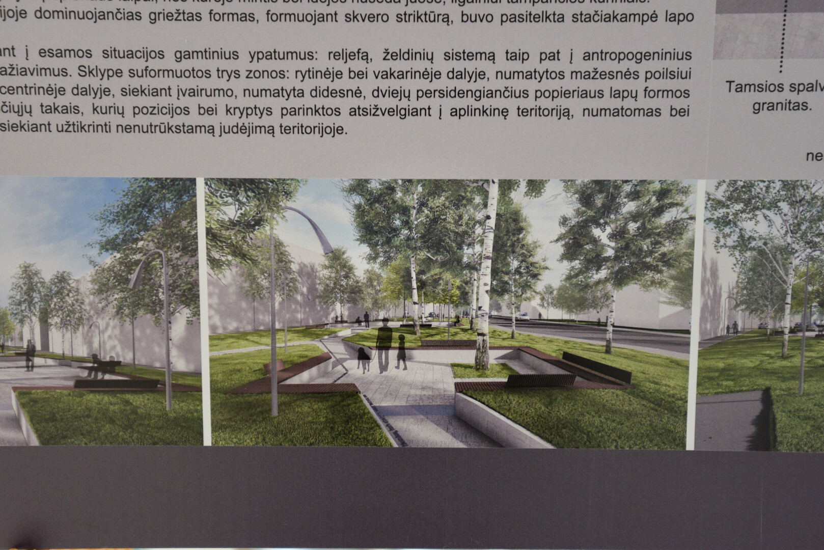 Skvere turėtų stovėti ilgas suolas, o per skverą eiti ilgas takas.