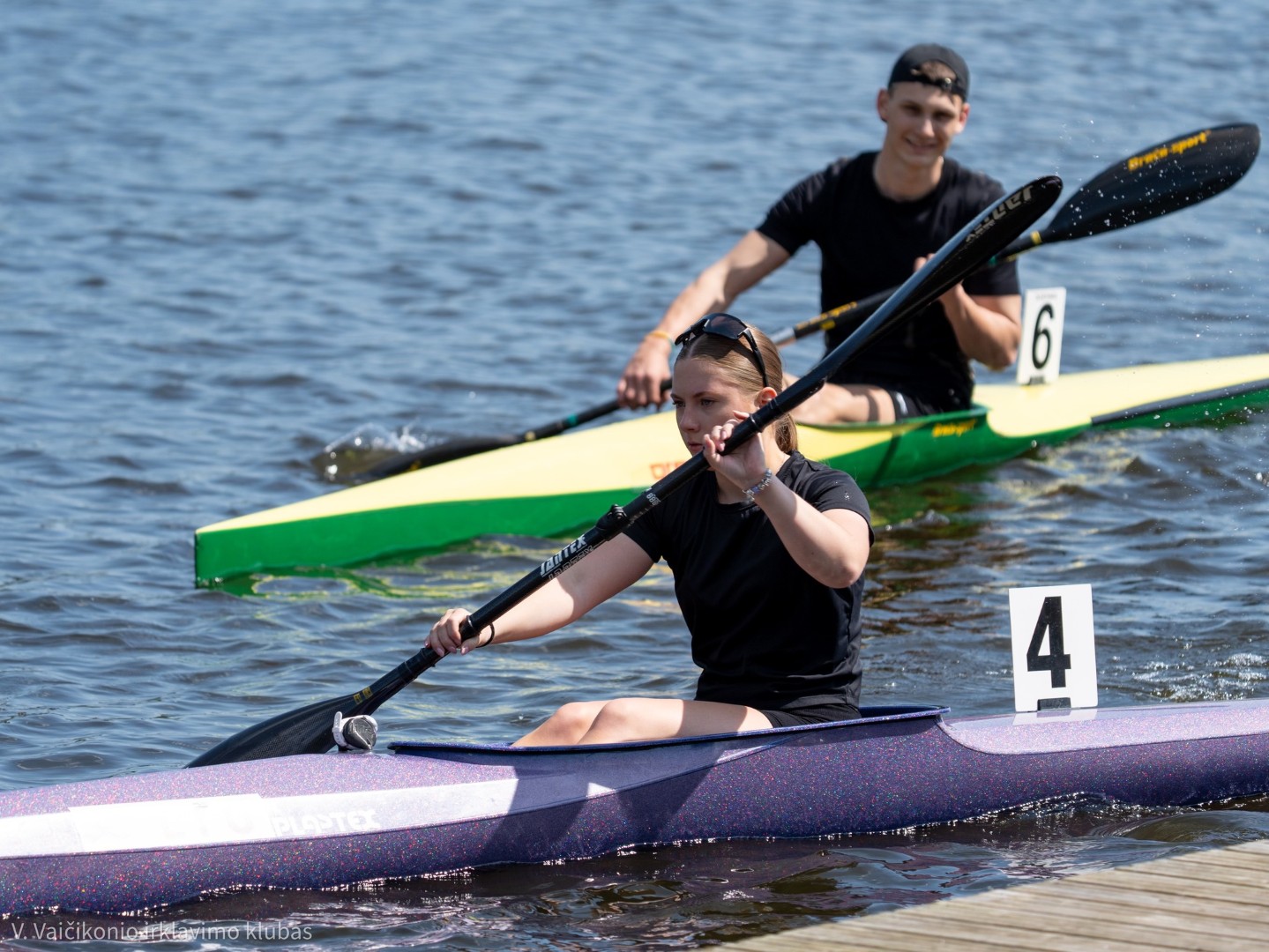 Puikiai sekėsi ir dvivietėmis baidarėmis startavusiems sportininkams: greičiausi buvo Augustas Stankevičius ir Domas Stakionis (38,12 sek., 2009–2010 m. g.) bei Elija Kraujalytė su Kamile Čiškauskaite (42,67 sek., gim. 2010 m.). Trečiąją vietą užėmė Urtė Navaruckytė ir Ugnė Montvilaitė (57,39 sek., gim. 2011 m.).