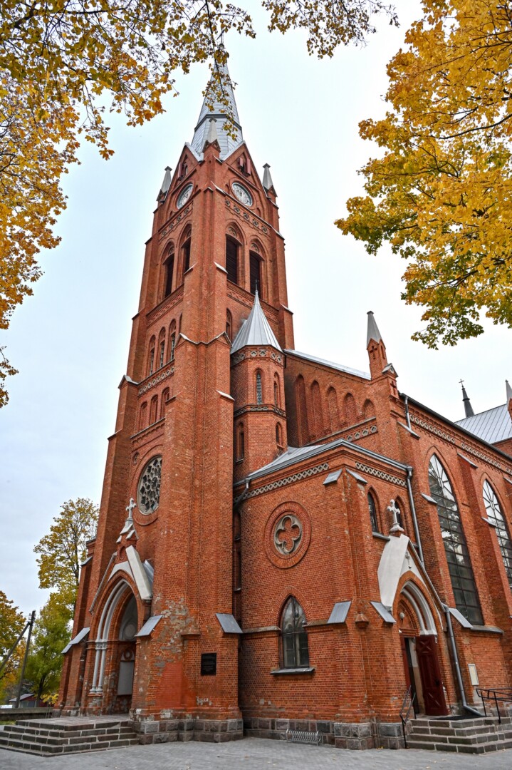 Neogotikinė raudonų plytų mūro bažnyčia pradėta statyti 1897 metais pagal architekto Karlo Edvardo Strandmano projektą.