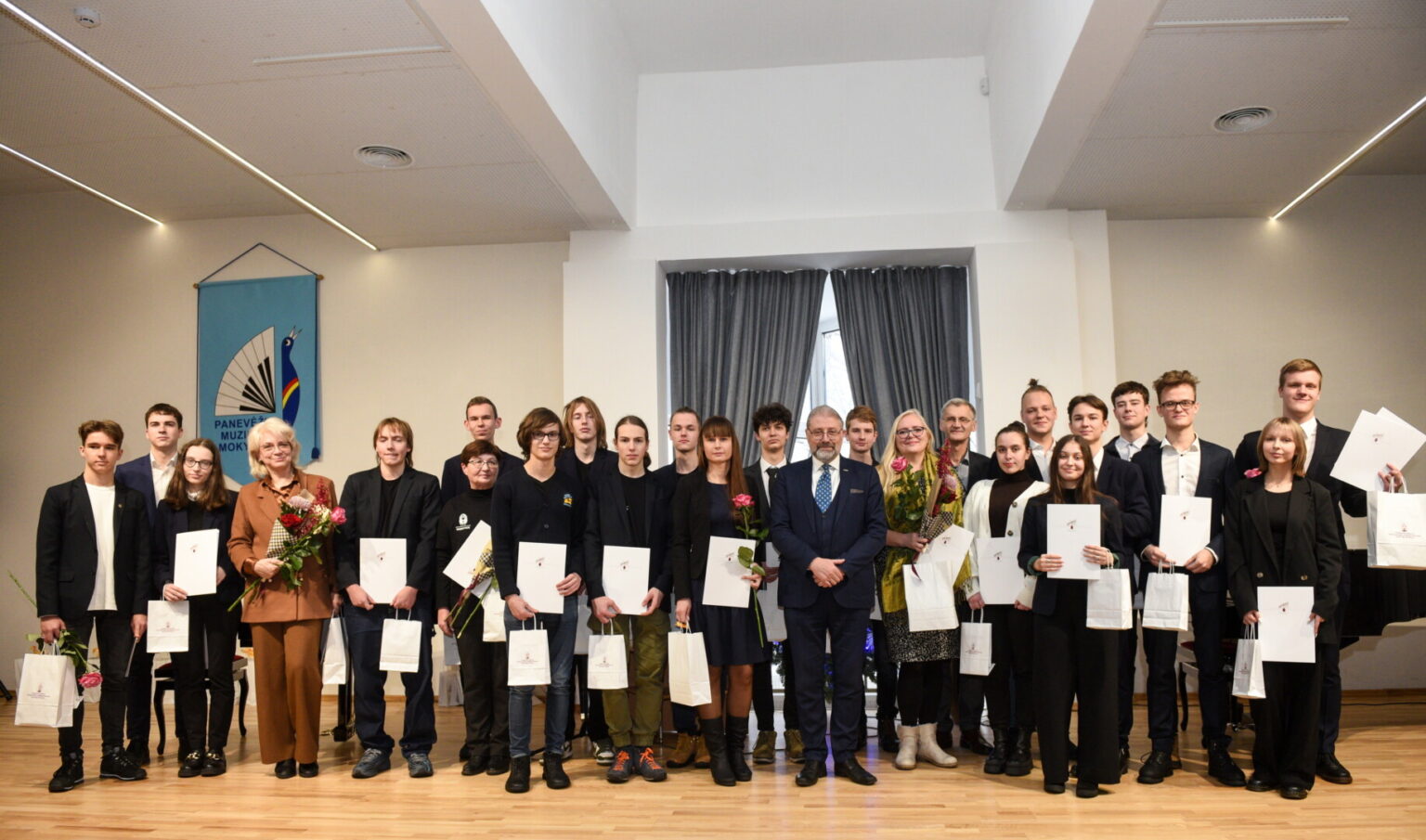 Muzikos mokykloje surengtoje šventėje pasveikinti Panevėžio mokiniai, 2021-2022 m. mokslo metais pasiekę geriausius rezultatus dalykinėse olimpiadose, konkursuose ir kituose renginiuose mokslo bei meno srityse.