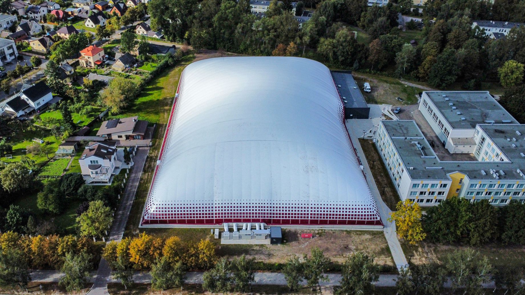 Aukštas kupolas užtikrina komfortiškas treniruočių sąlygas nepriklausomai nuo oro sąlygų.
