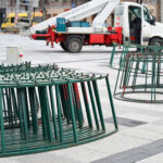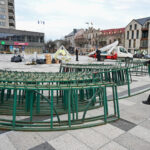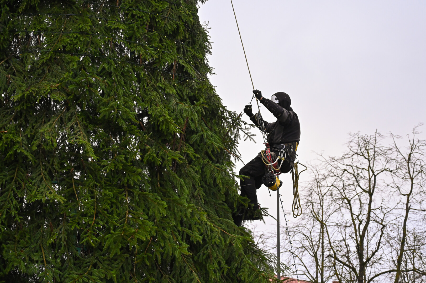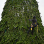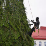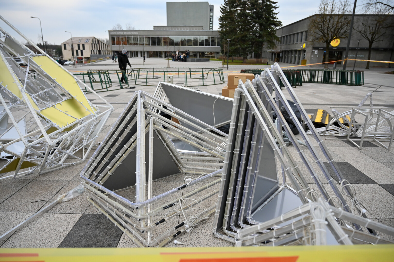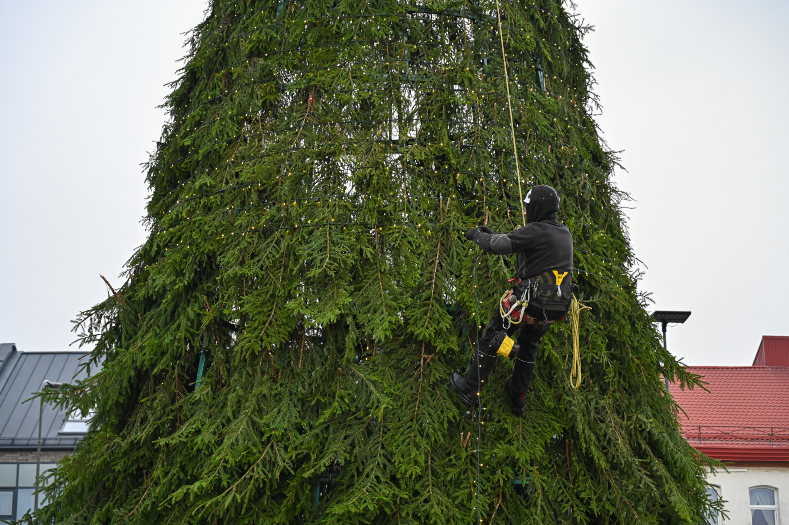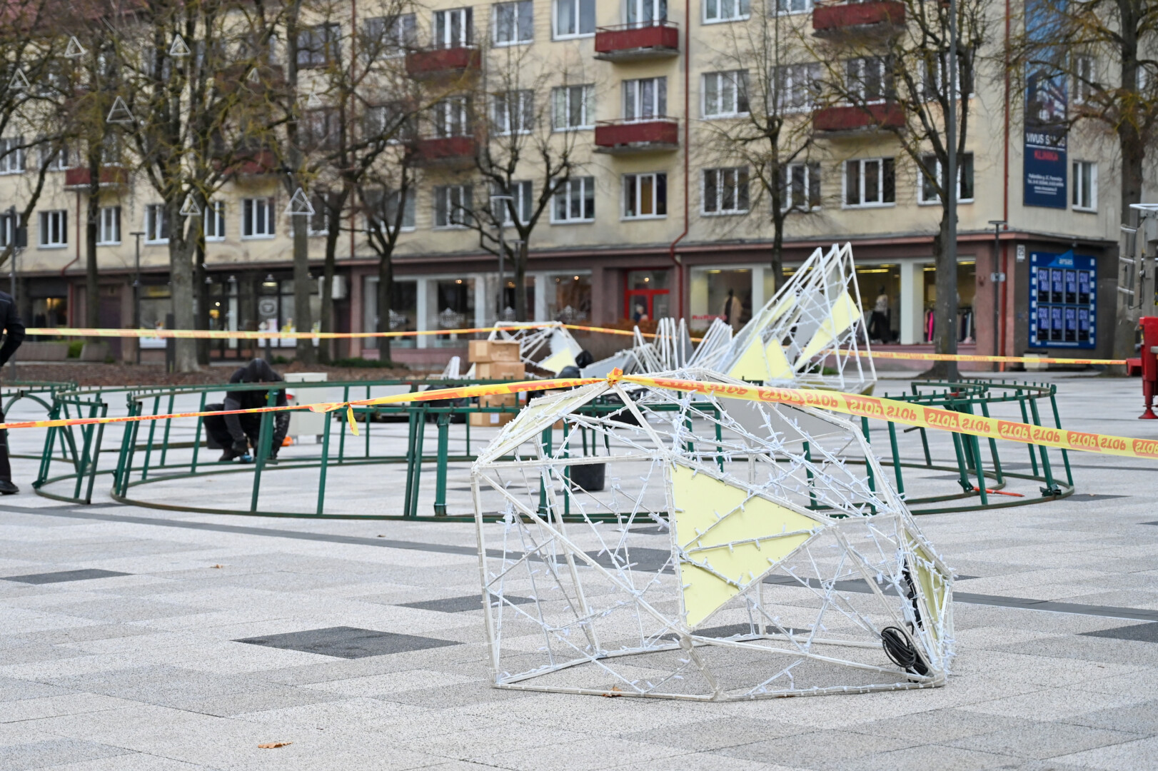 Laisvės aikštėje nuo antradienio darbuojasi kalėdinės eglės montuotojai.