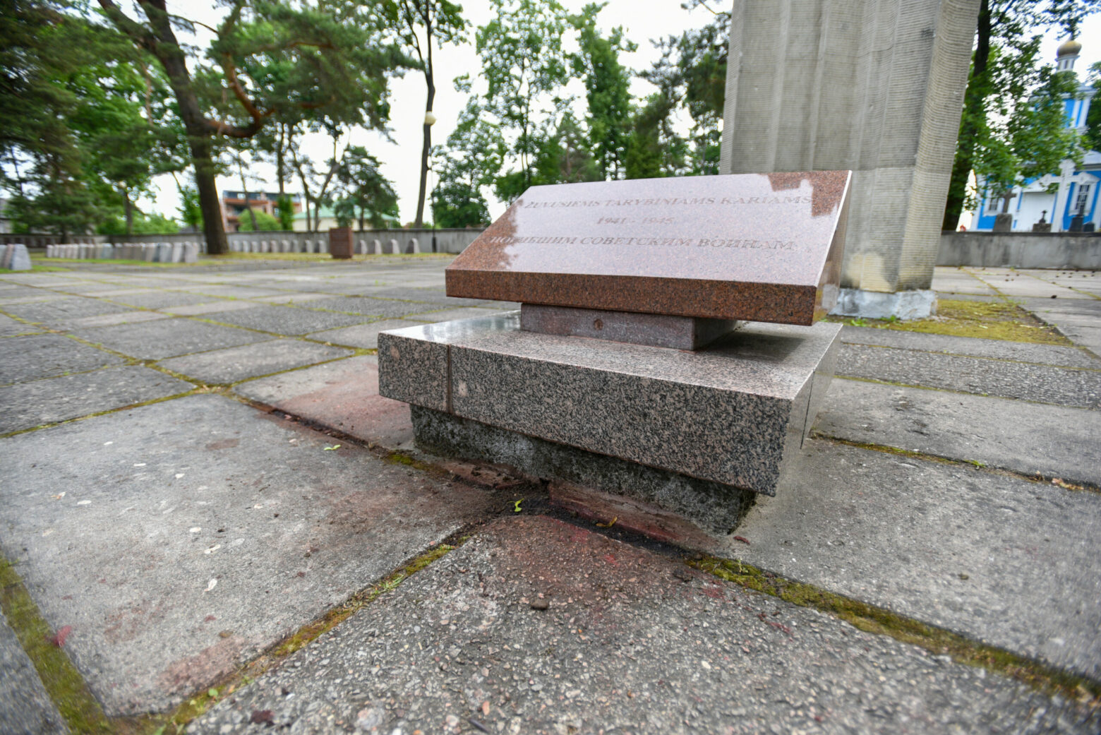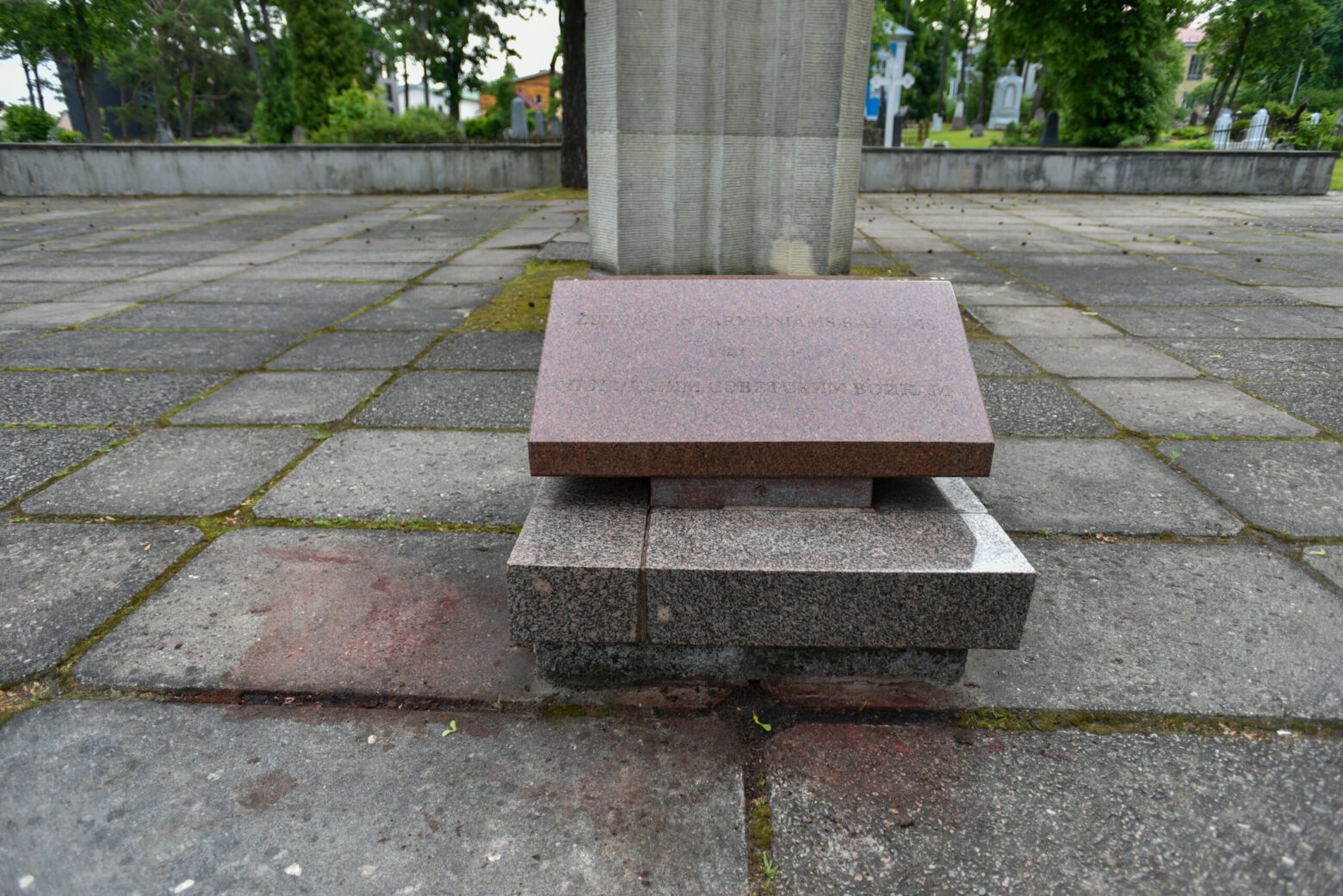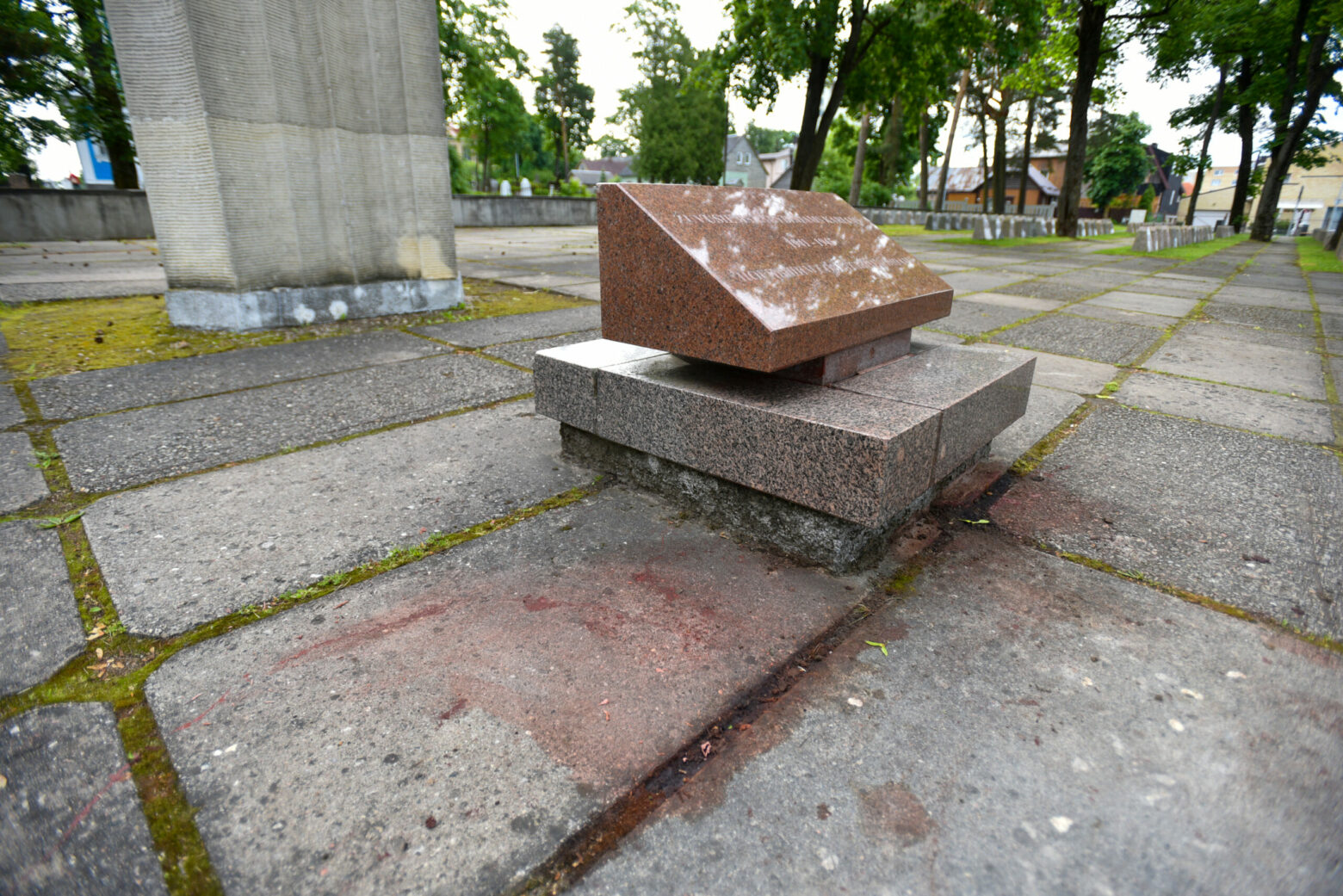 Panevėžyje dažais ištepliota atminimo lenta žuvusiems tarybiniams kariams.