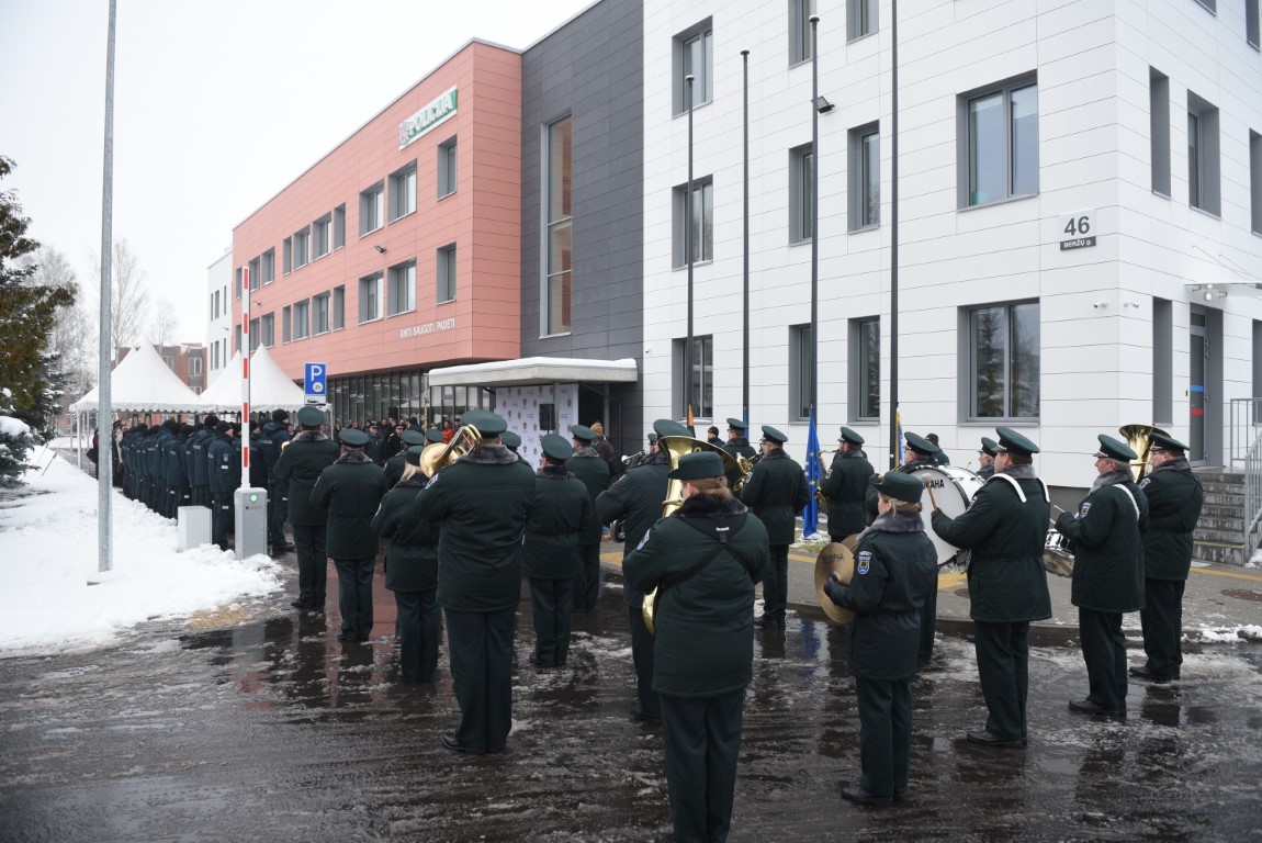 Skambant iškilmingam Vidaus reikalų ministerijos Pučiamųjų orkestrui, penktadienį atidarytas naujasis Panevėžio apskrities vyriausiasis policijos komisariatas su areštine.
