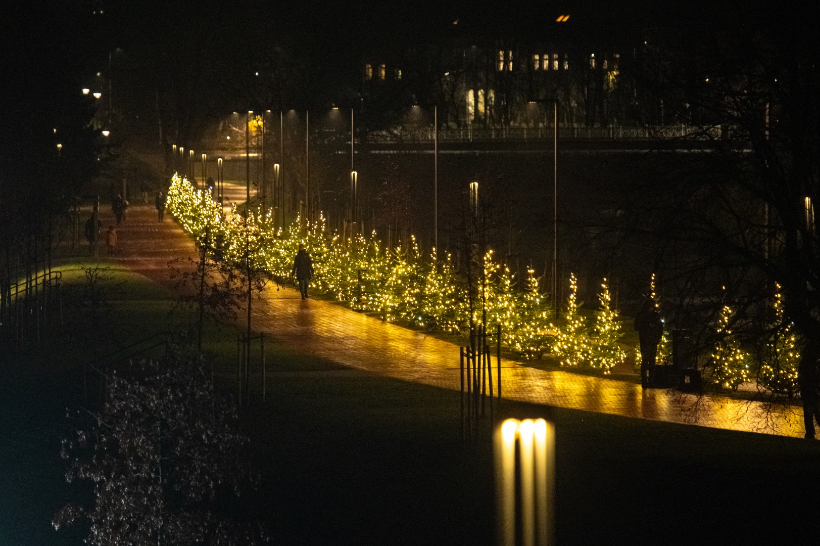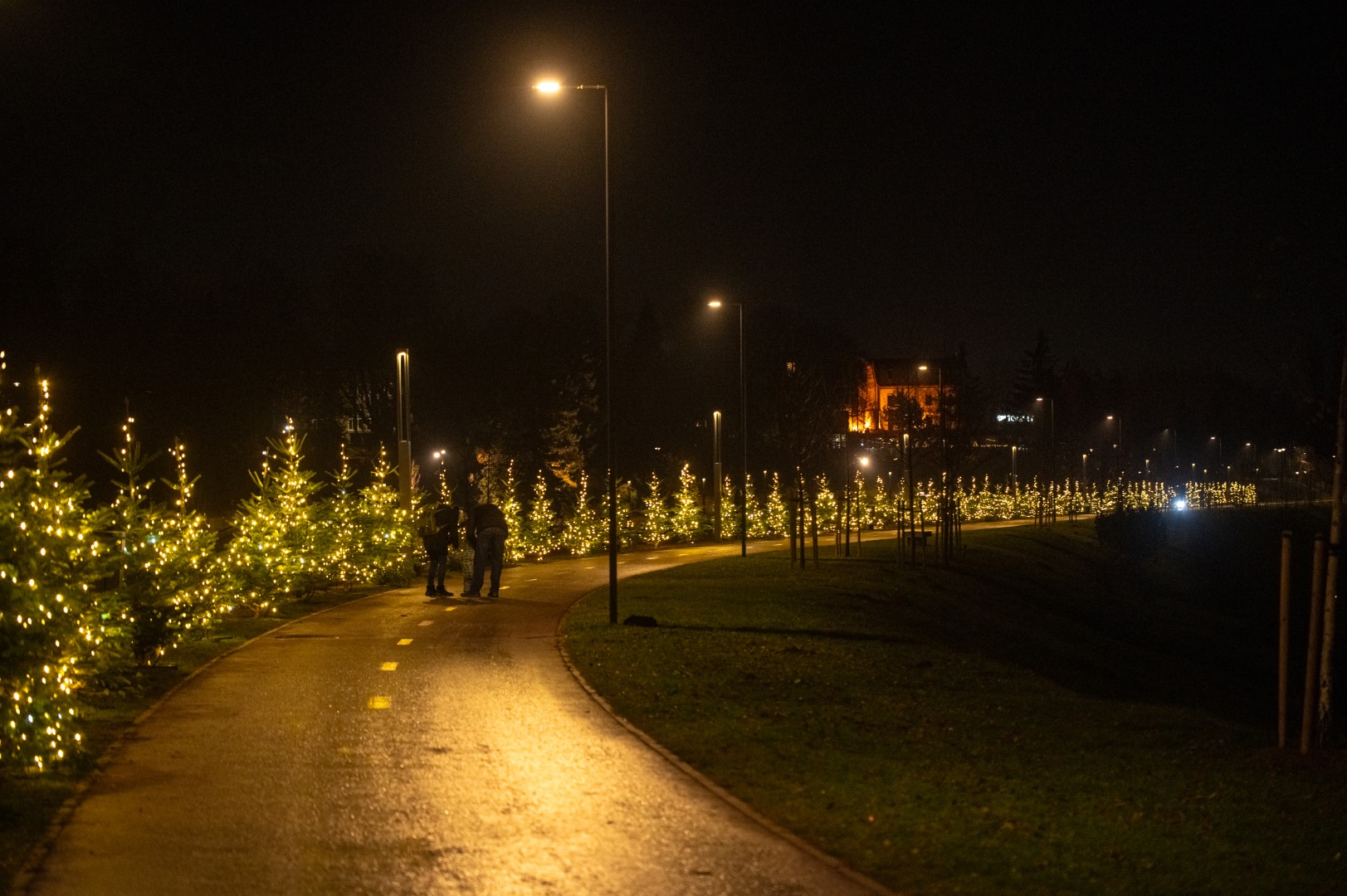 Norint pamatyti visą grožį, vertėtų nužingsniuoti iki Skaistakalnio parko. Čia vakarais sužibs įėjimas į parką nuo Muilo fabriko pusės, kitoje parko pusėje šalia tilto švieselėmis mirgės apie dešimt eglučių, pasipuošusi ir „Pragiedrulių“ sodyba.