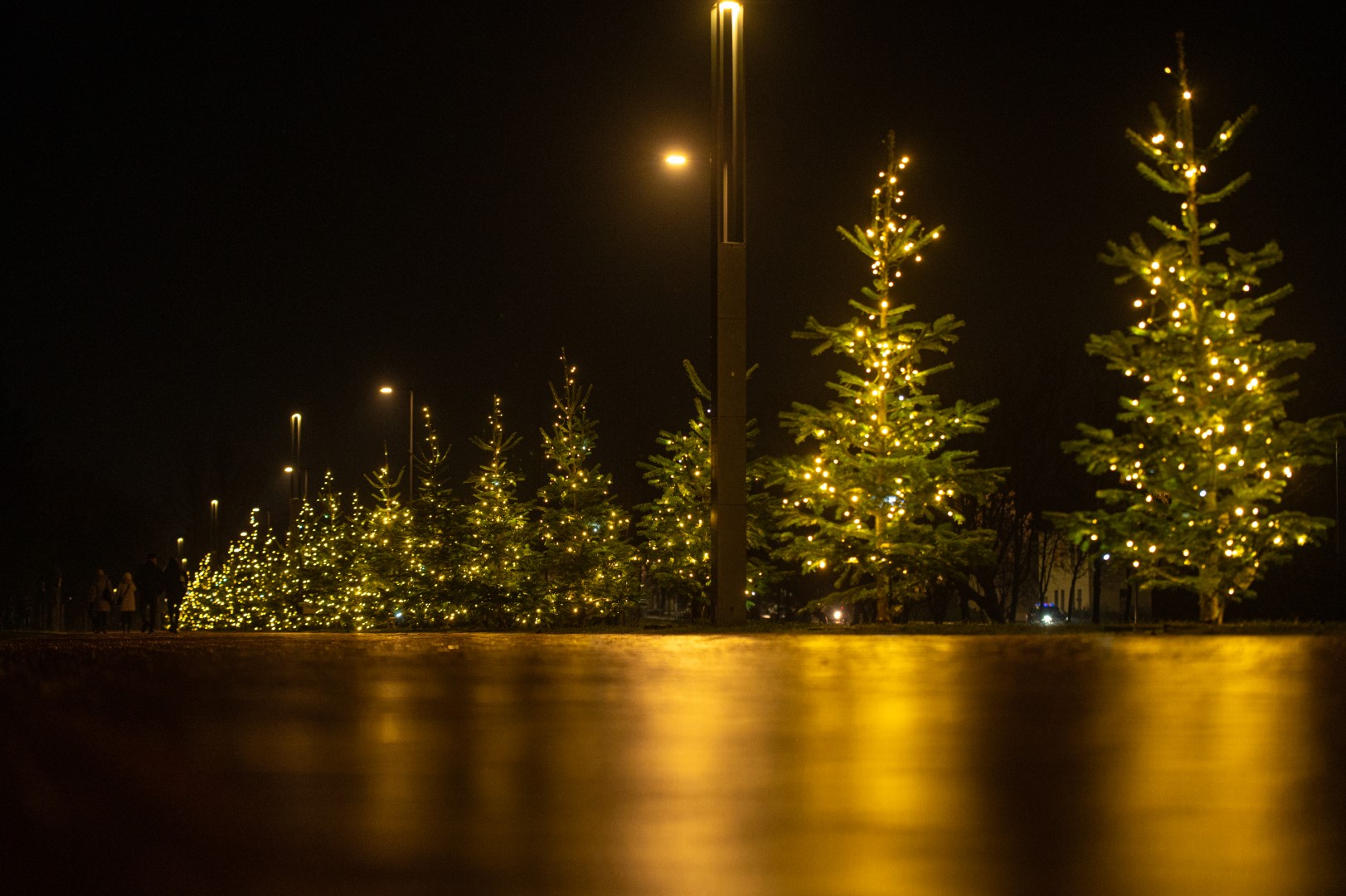 Pradėjus kelionę nuo Nepriklausomybės aikštės, per Laisvės aikštę nukeliaujama iki pagrindinės miesto eglės. Ja pasigrožėjus į Senvagę kviečia spindinti eglučių alėja. Paėjėjus iki šalia Kultūros centro esančių eglučių kompozicijos, sugrįžti rekomenduojama Respublikos gatve. Čia išdabinta erdvė ne tik prie Santuokų rūmų, bet ir šalia „Stasys Museum“.