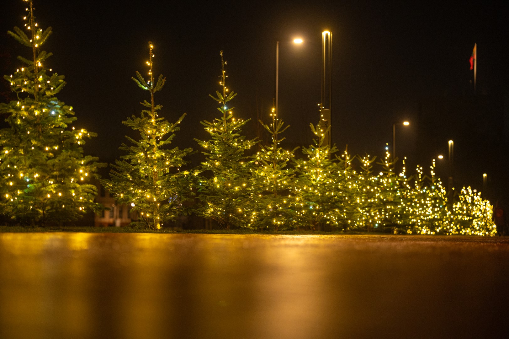 Artėjant Kalėdoms Panevėžyje daugėja eglių ir šviesų.