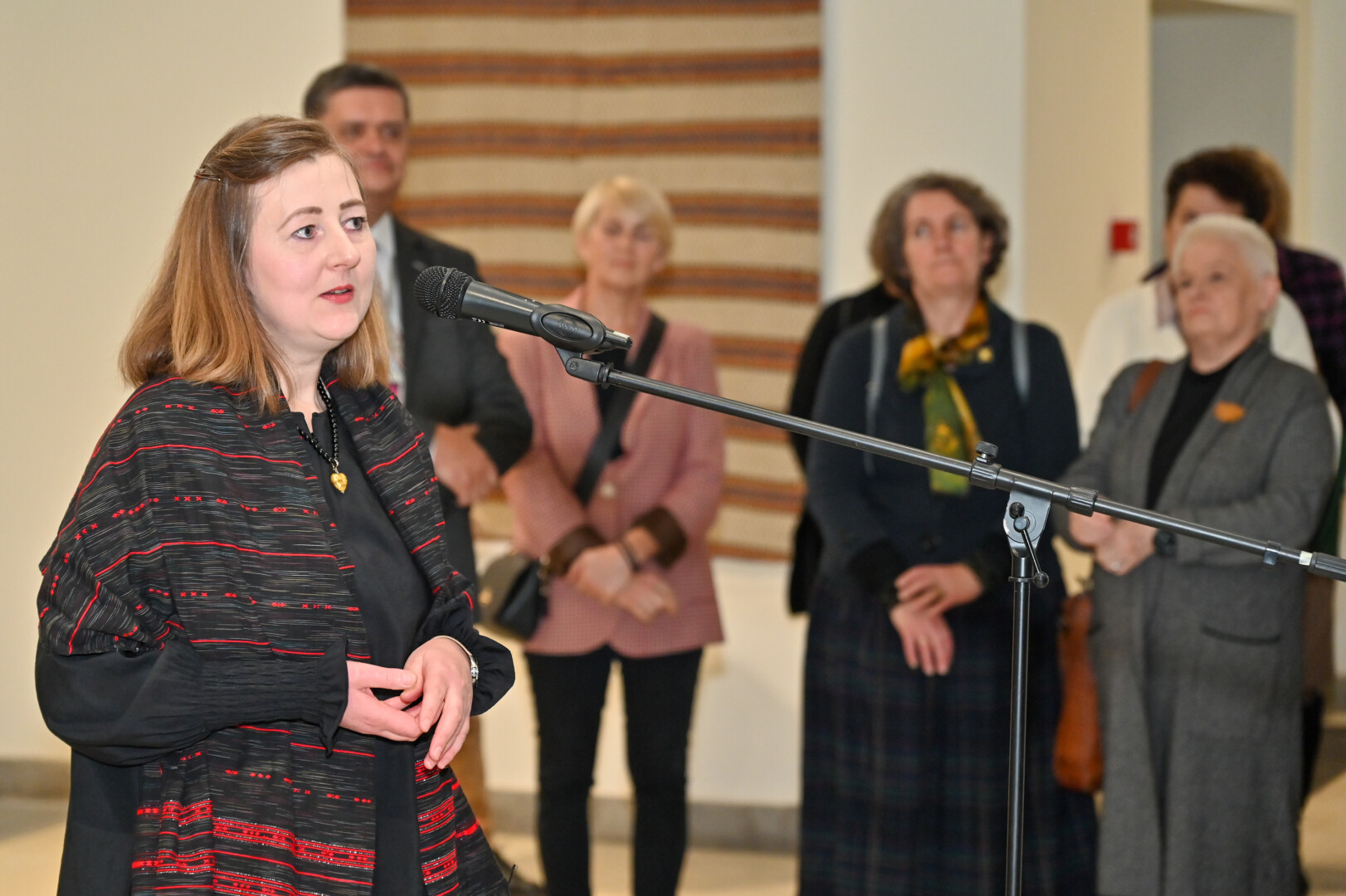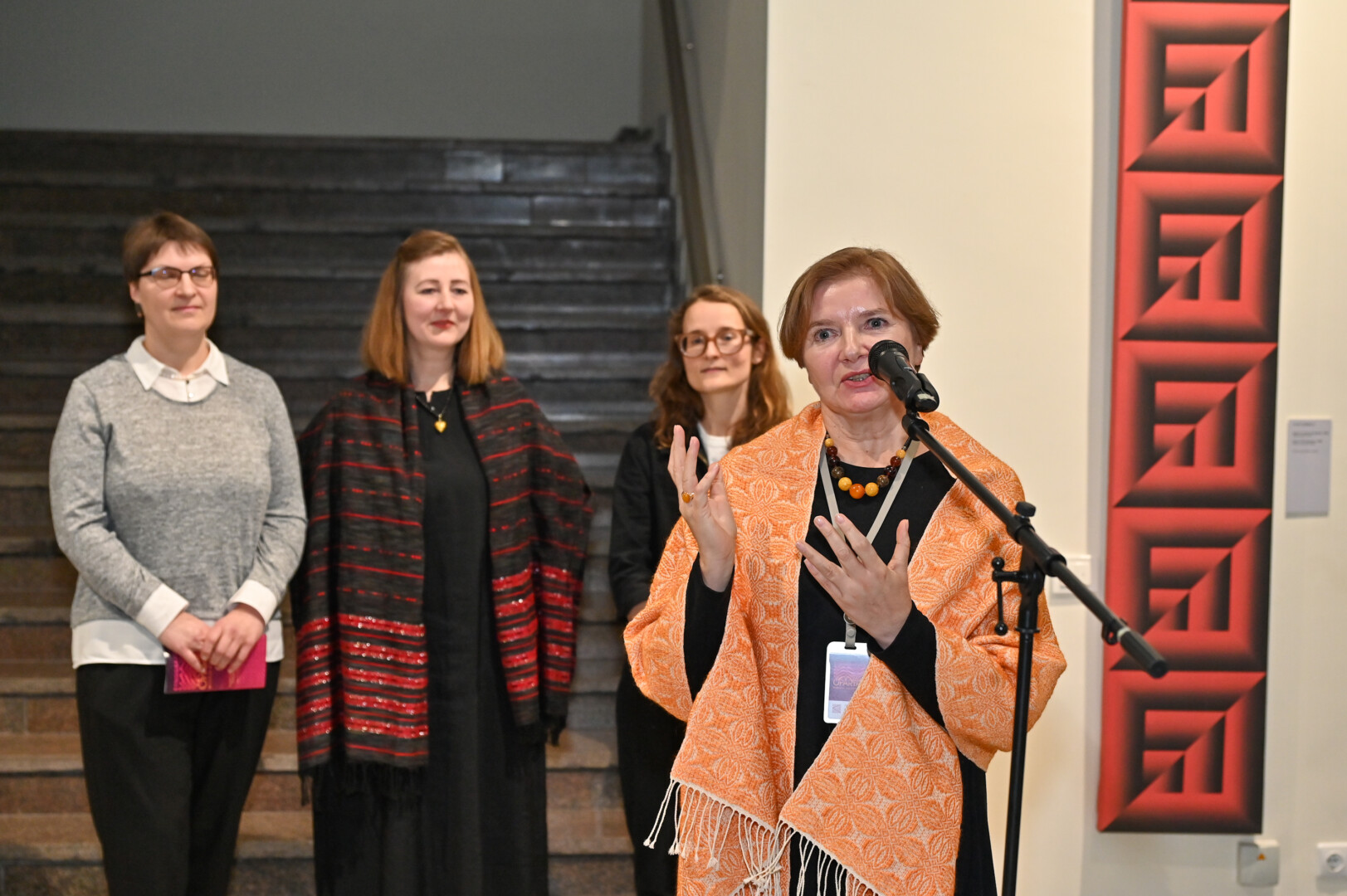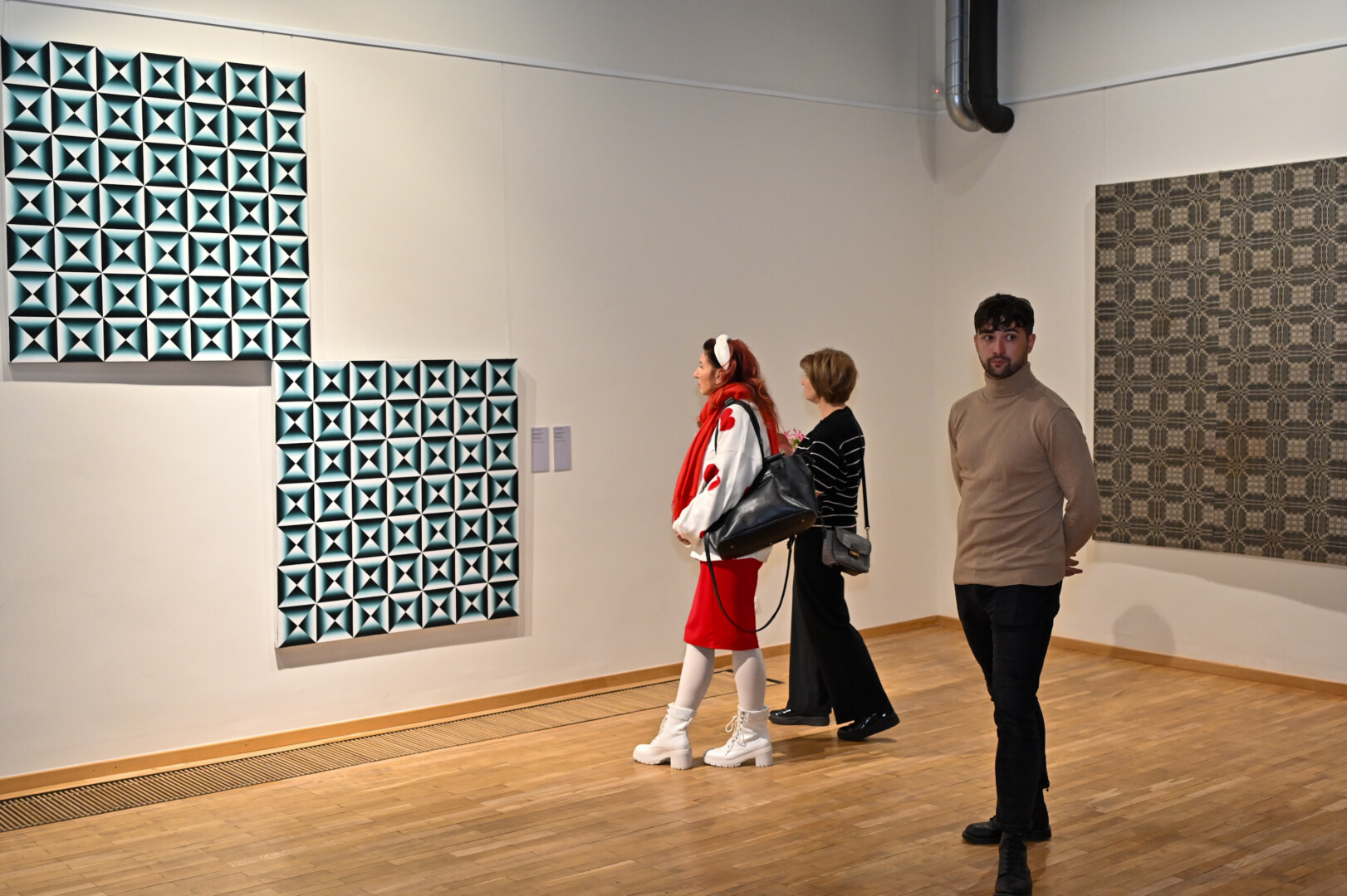 Panevėžio dailės galerijoje atidaryta unikali paroda „Etnografinis opartas muziejų kolekcijose“, kurioje tradicinės lietuvių tekstilės dirbiniai susijungia su Kazio Varnelio, vieno žymiausių Lietuvos optinio meno meistrų, kūryba.