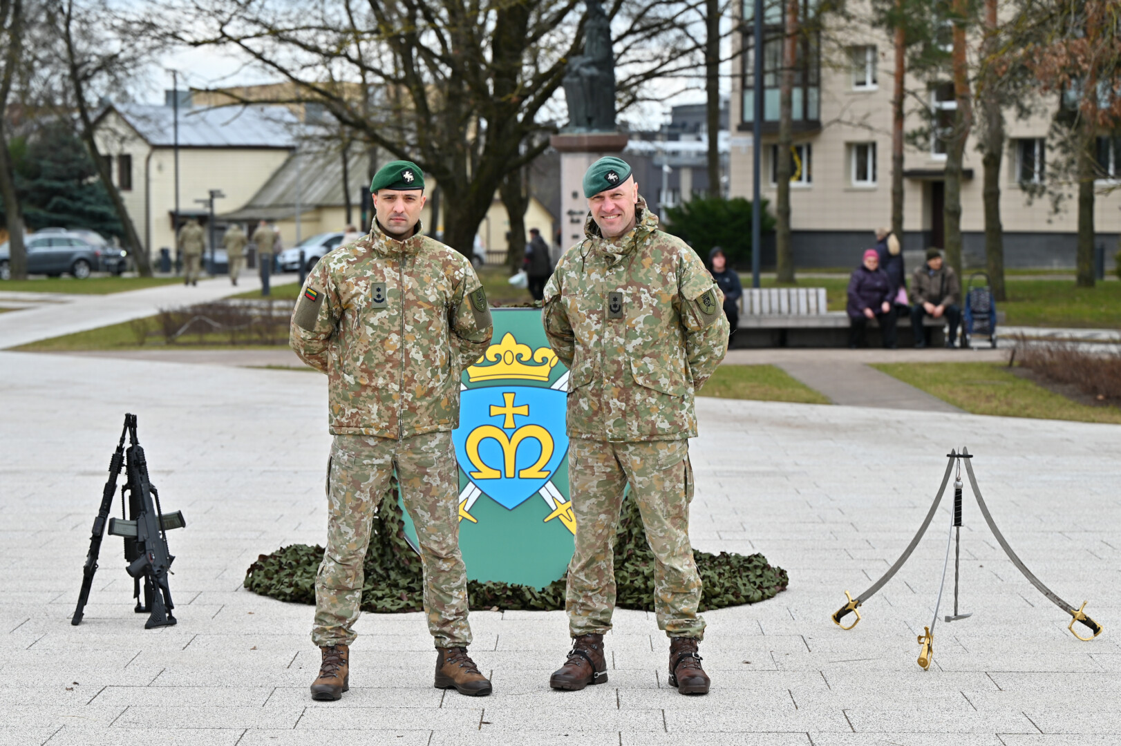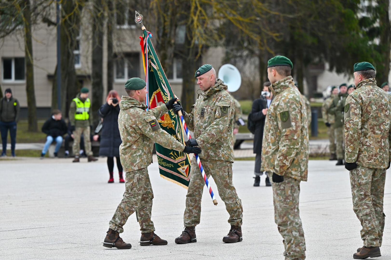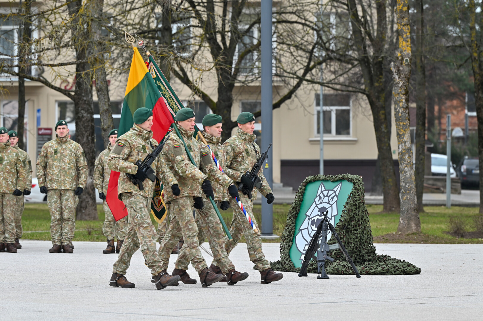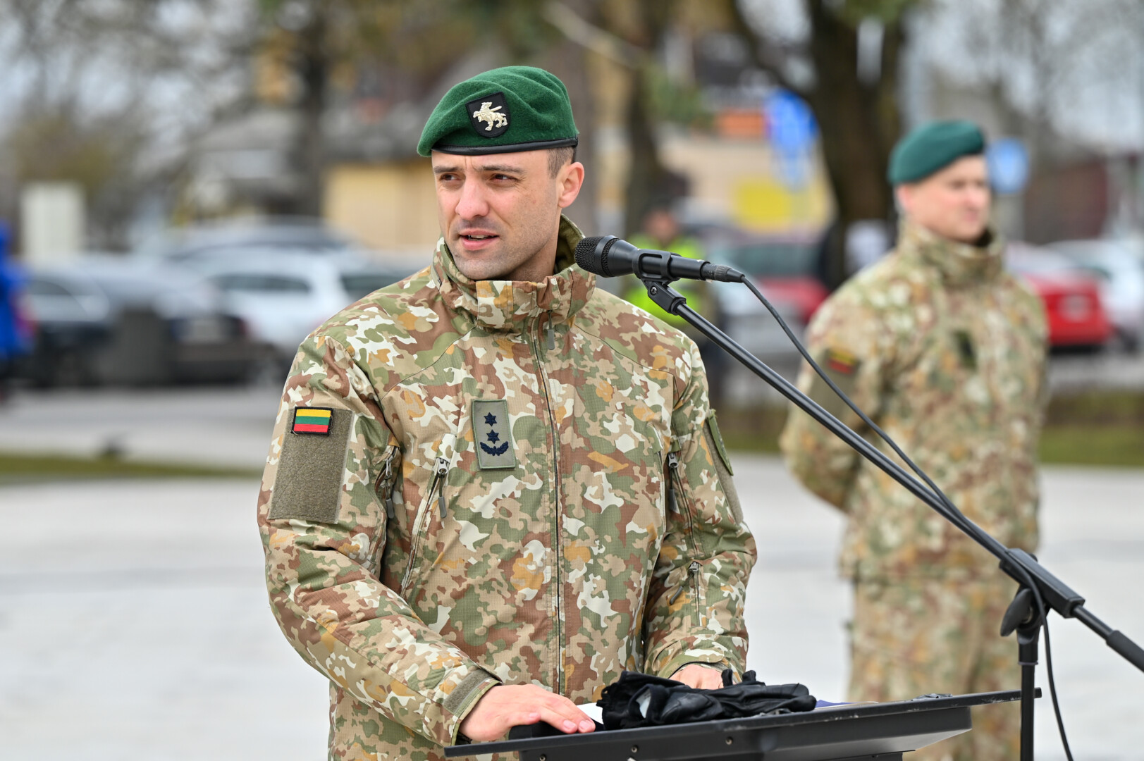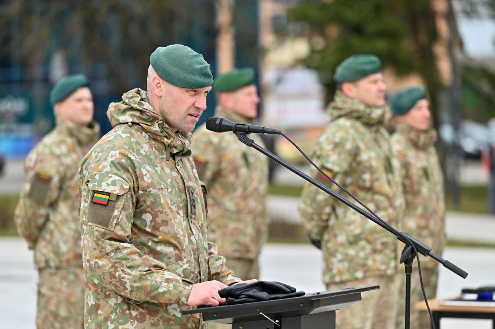 „Dėkoju, plk. ltn. Ernestui Gaigalui už išskirtinę lyderystę vadovaujant batalionui, sąžiningą tarnybą vykdant pavestas užduotis ir uolumą bendradarbiaujant su miesto vadovybe, civilinėmis institucijomis bei jėgos struktūromis. Išskirtinę padėką reiškiu už bataliono tradicijų puoselėjimą ir naujų kūrimą telkiant ir jungiant karius į puikiai veikiantį kovinį vienetą. Tikiu, kad patirtis įgyta tarnybos šiame batalione metu, ir Vilkiškos vertybės leis puikiai atlikti pareigas naujoje tarnybos vietoje. Pareigas pradedančiam plk. ltn. Arnoldui Žyliui linkiu nestokoti ryžto ir valios pastangų, nuo šio momento vedant Batalioną į priekį.“, – sakė plk. Aurelijus Motiejūnas