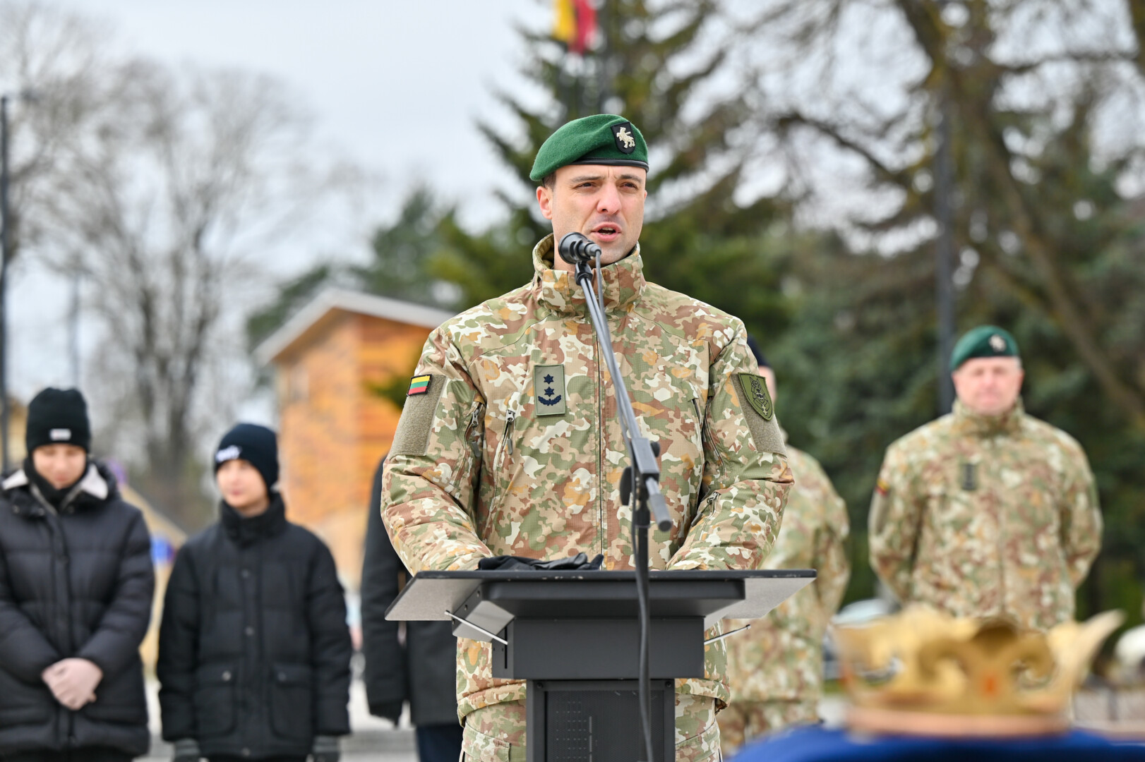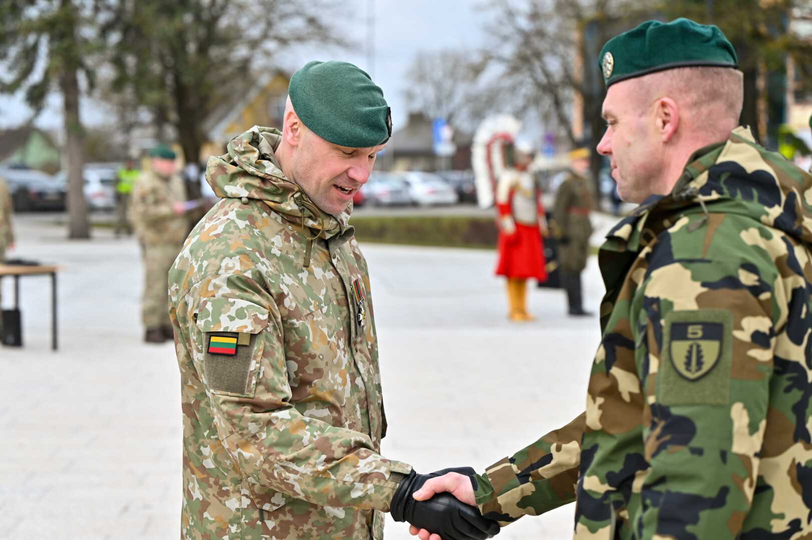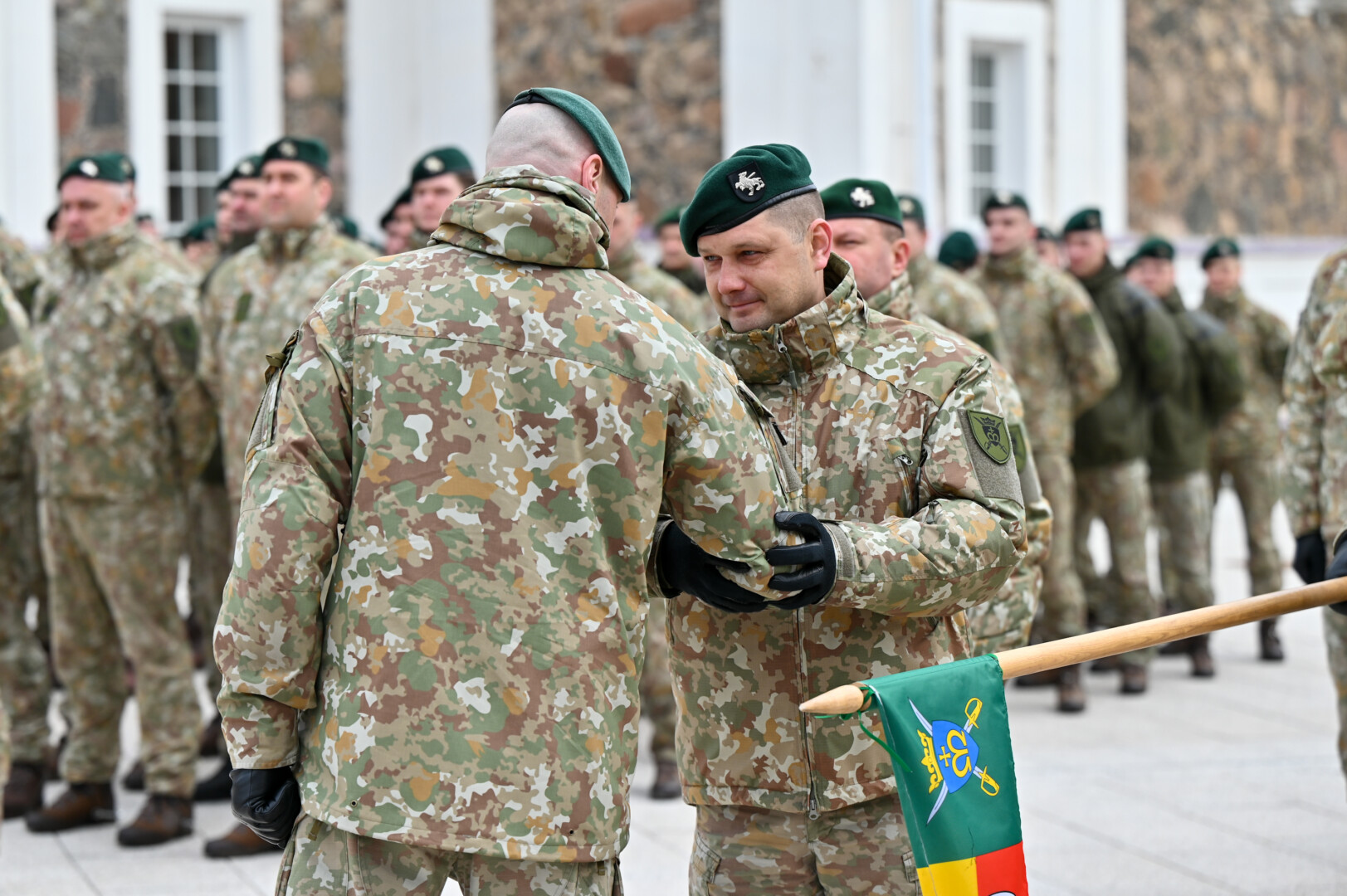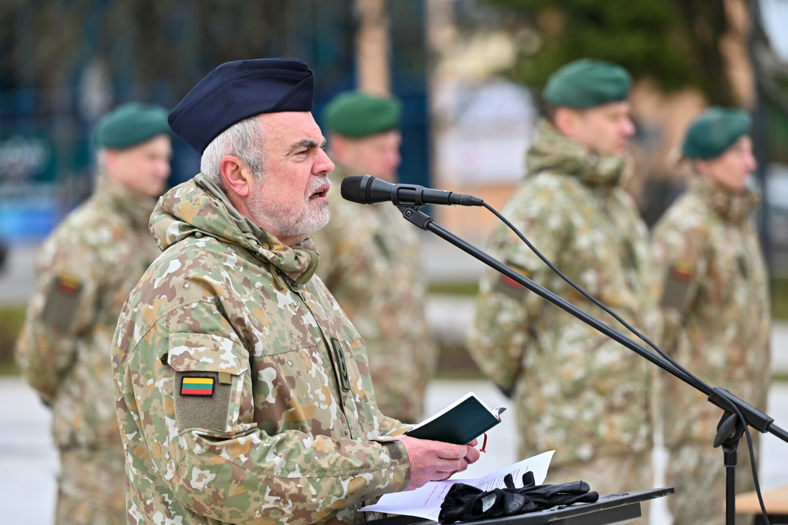 „Dėkoju, plk. ltn. Ernestui Gaigalui už išskirtinę lyderystę vadovaujant batalionui, sąžiningą tarnybą vykdant pavestas užduotis ir uolumą bendradarbiaujant su miesto vadovybe, civilinėmis institucijomis bei jėgos struktūromis. Išskirtinę padėką reiškiu už bataliono tradicijų puoselėjimą ir naujų kūrimą telkiant ir jungiant karius į puikiai veikiantį kovinį vienetą. Tikiu, kad patirtis įgyta tarnybos šiame batalione metu, ir Vilkiškos vertybės leis puikiai atlikti pareigas naujoje tarnybos vietoje. Pareigas pradedančiam plk. ltn. Arnoldui Žyliui linkiu nestokoti ryžto ir valios pastangų, nuo šio momento vedant Batalioną į priekį.“, – sakė plk. Aurelijus Motiejūnas