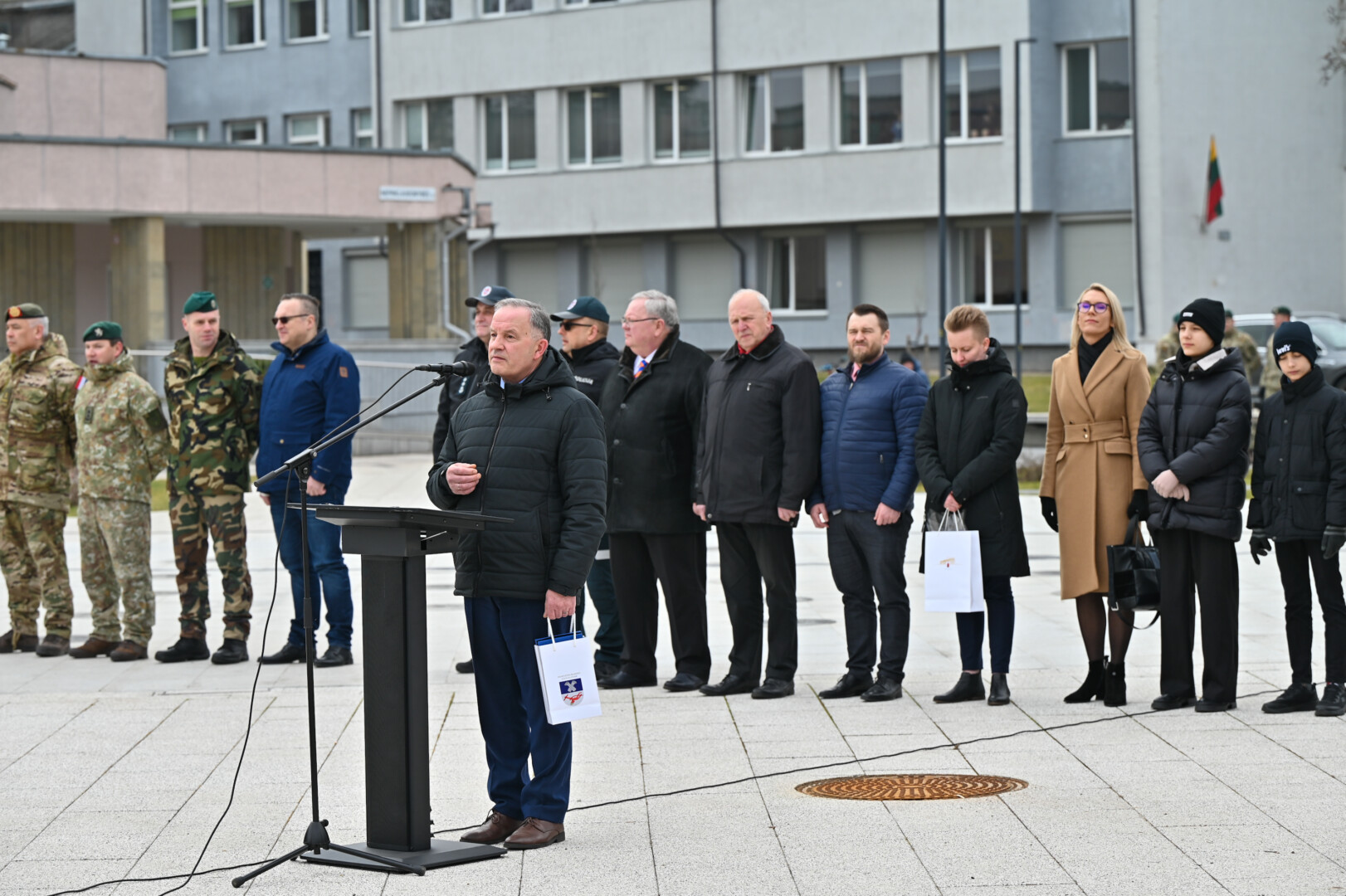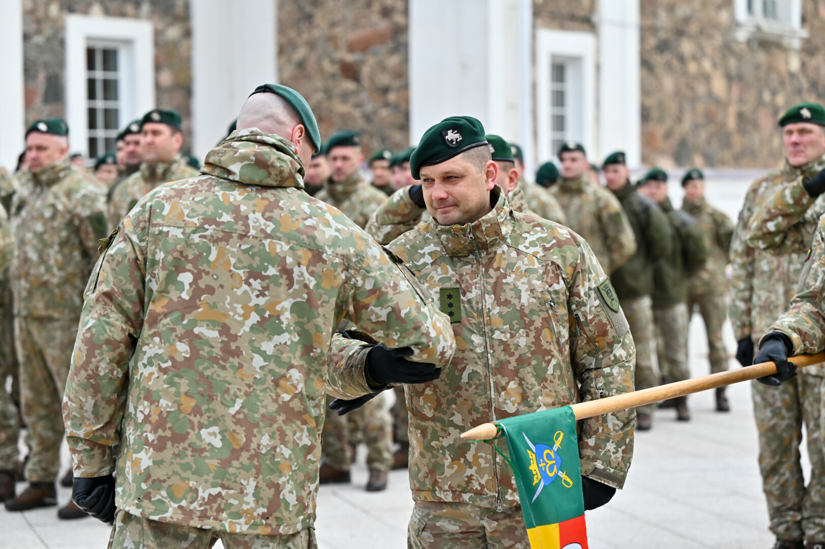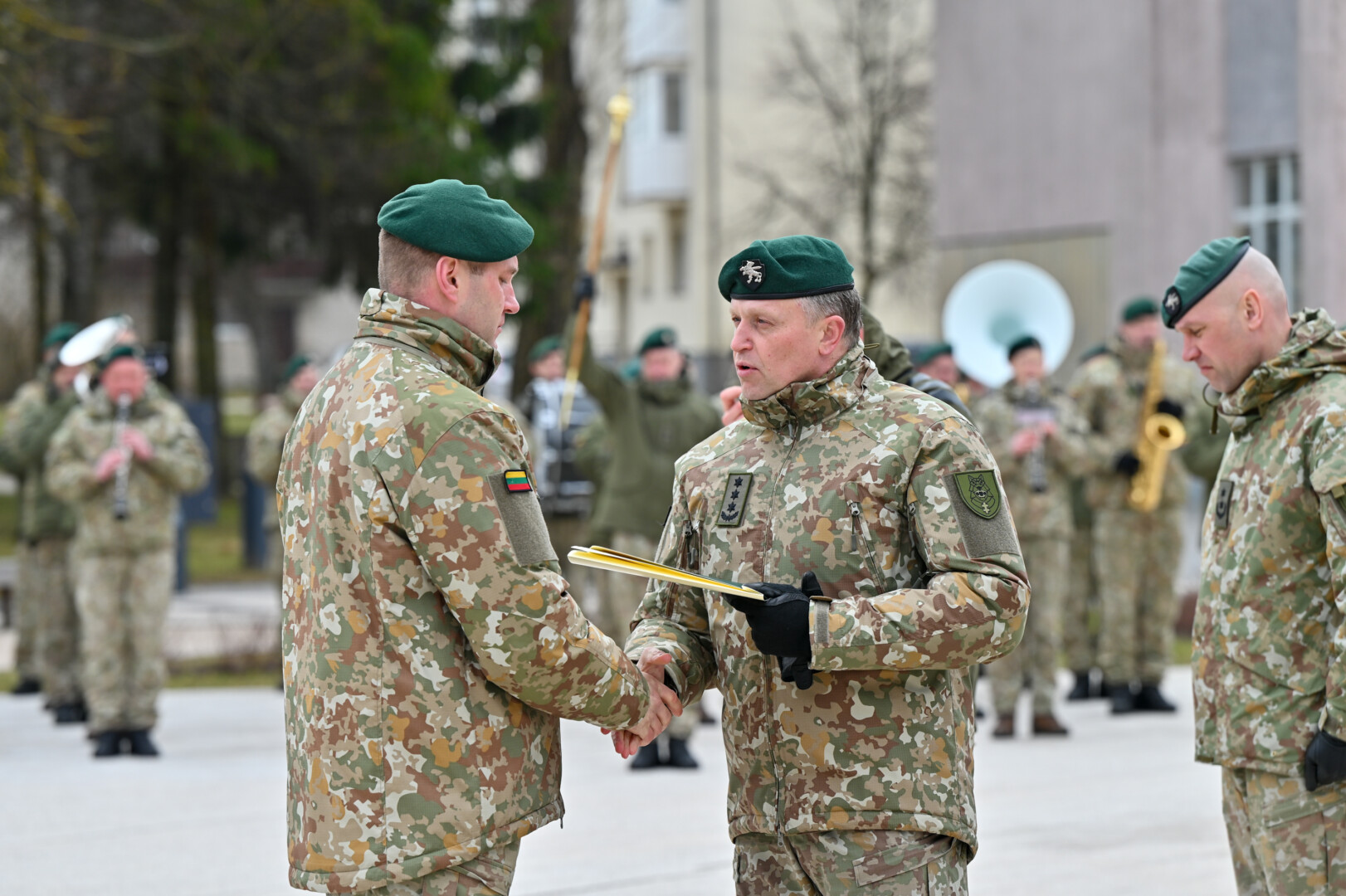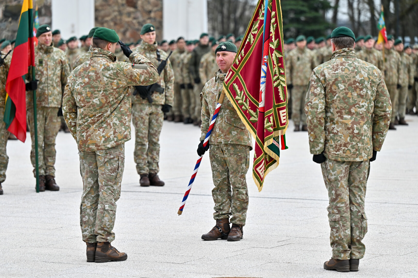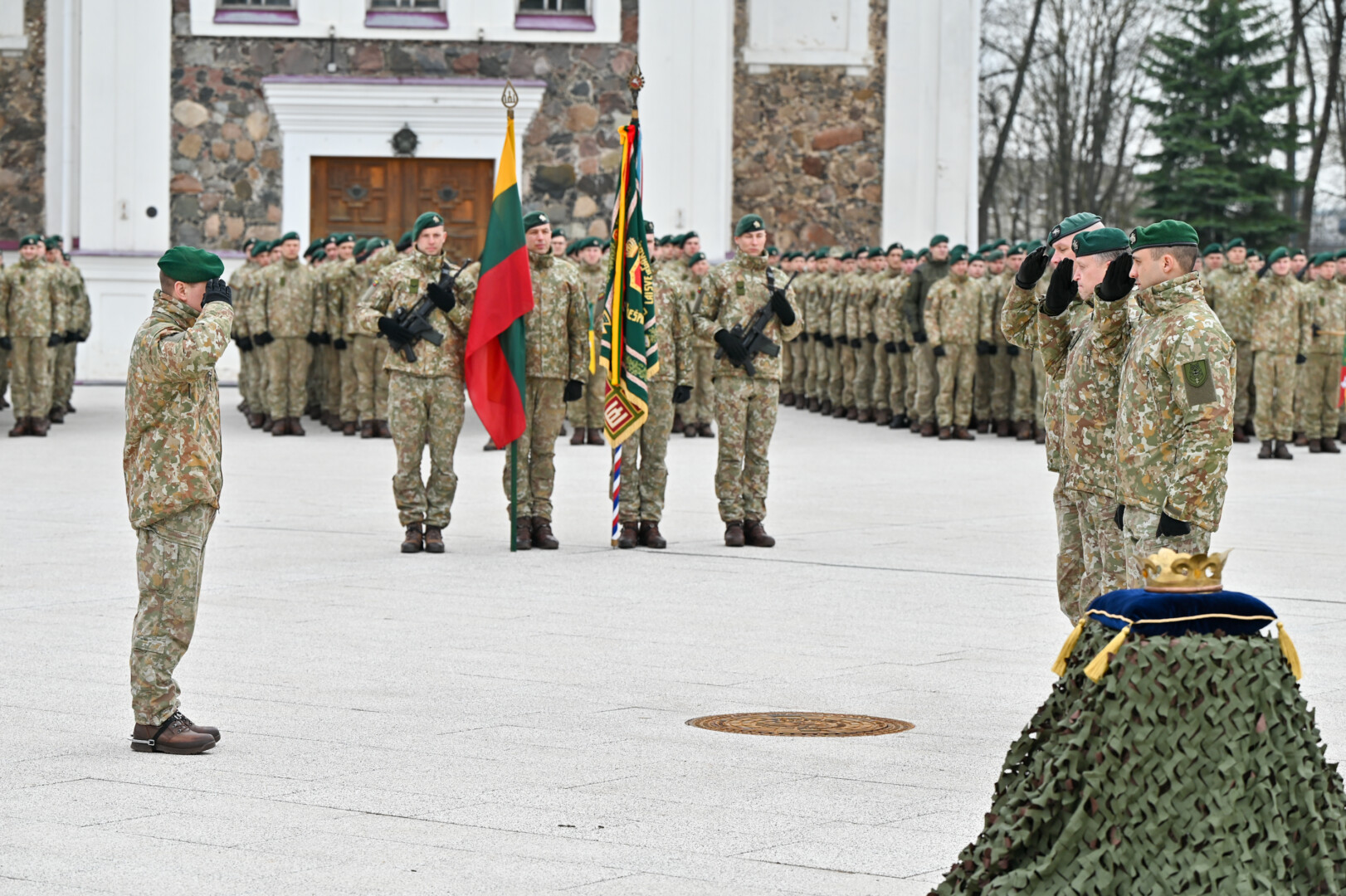 „Dėkoju, plk. ltn. Ernestui Gaigalui už išskirtinę lyderystę vadovaujant batalionui, sąžiningą tarnybą vykdant pavestas užduotis ir uolumą bendradarbiaujant su miesto vadovybe, civilinėmis institucijomis bei jėgos struktūromis. Išskirtinę padėką reiškiu už bataliono tradicijų puoselėjimą ir naujų kūrimą telkiant ir jungiant karius į puikiai veikiantį kovinį vienetą. Tikiu, kad patirtis įgyta tarnybos šiame batalione metu, ir Vilkiškos vertybės leis puikiai atlikti pareigas naujoje tarnybos vietoje. Pareigas pradedančiam plk. ltn. Arnoldui Žyliui linkiu nestokoti ryžto ir valios pastangų, nuo šio momento vedant Batalioną į priekį.“, – sakė plk. Aurelijus Motiejūnas