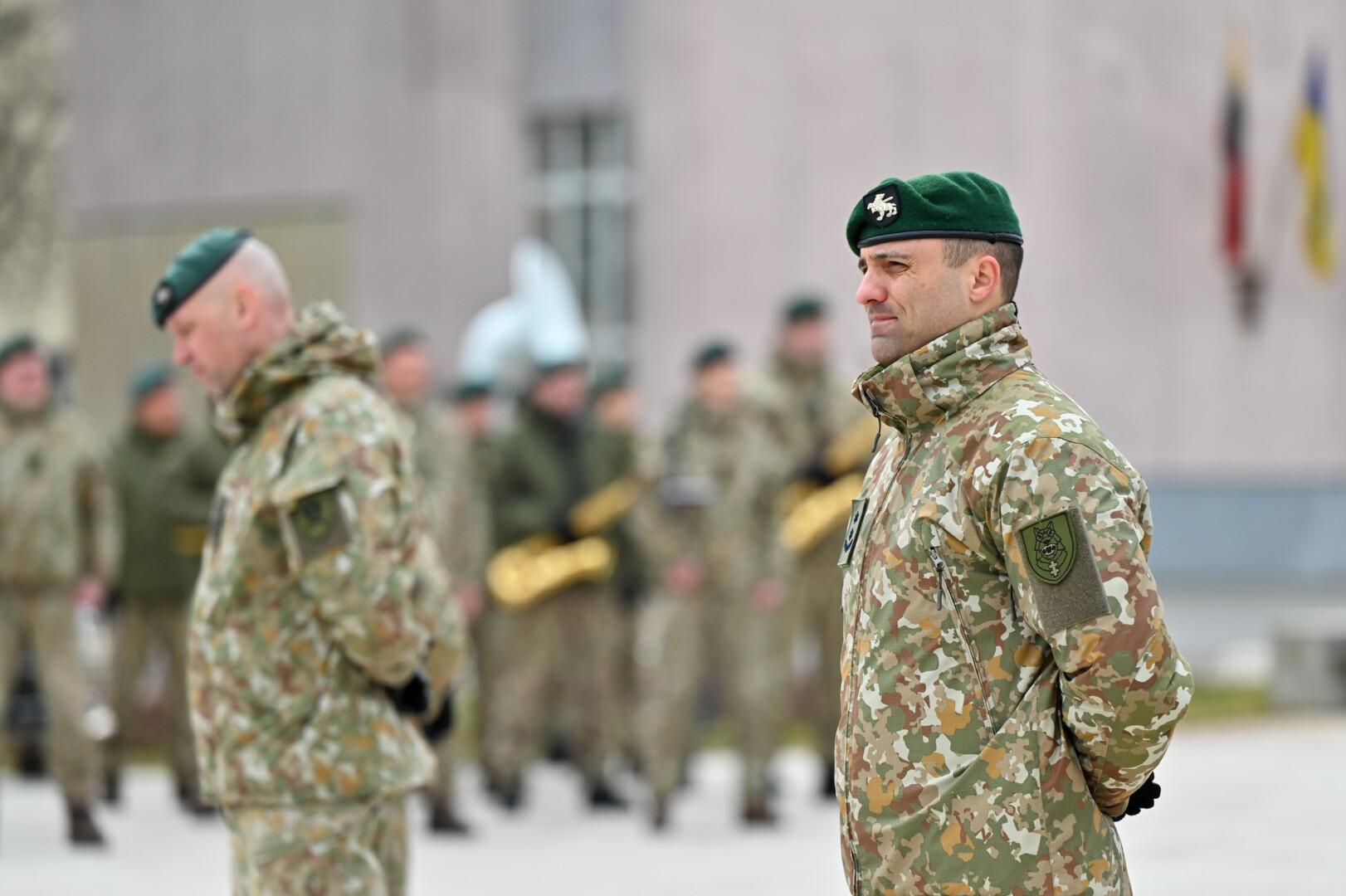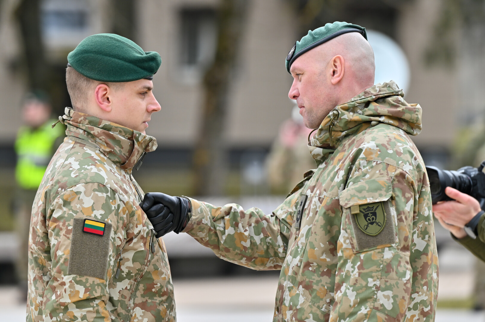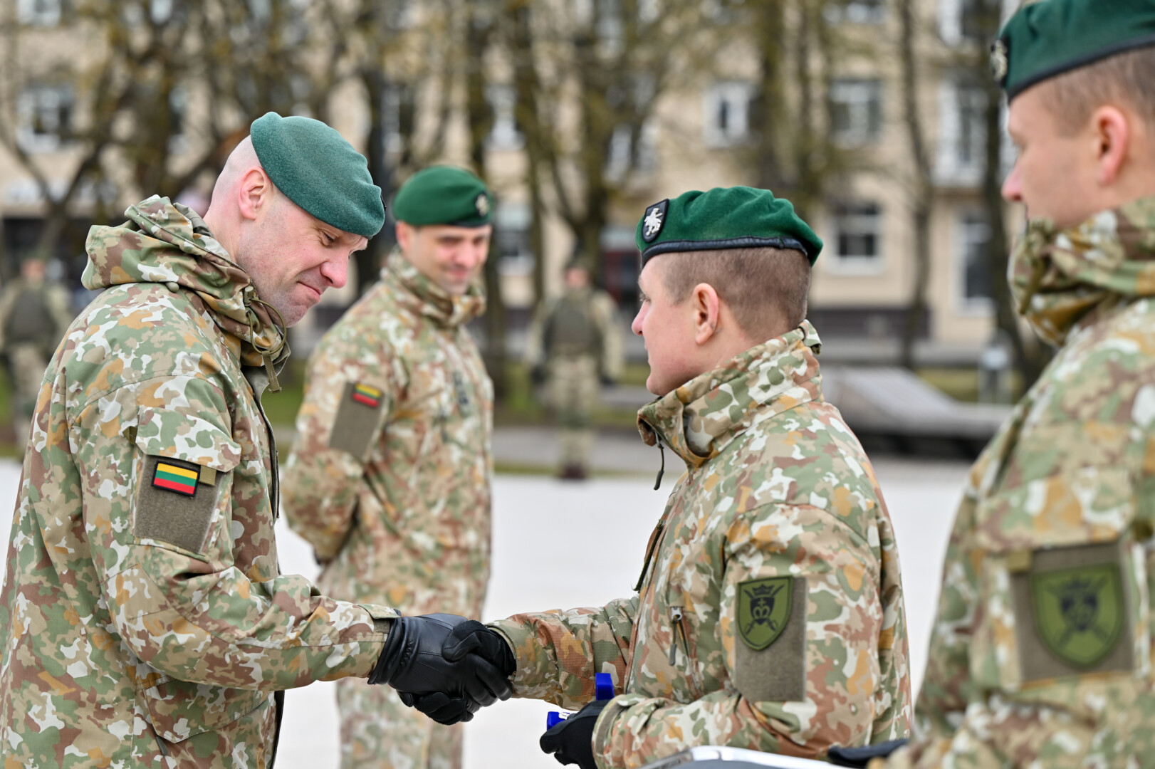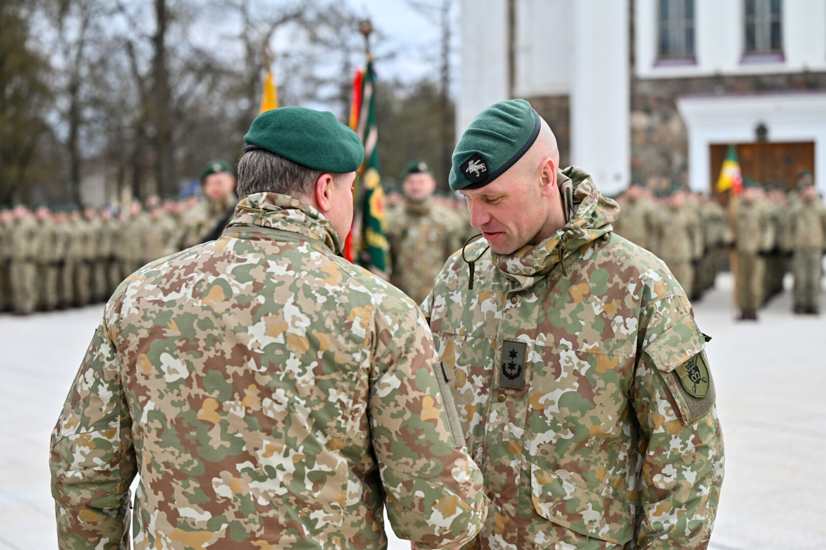 „Dėkoju, plk. ltn. Ernestui Gaigalui už išskirtinę lyderystę vadovaujant batalionui, sąžiningą tarnybą vykdant pavestas užduotis ir uolumą bendradarbiaujant su miesto vadovybe, civilinėmis institucijomis bei jėgos struktūromis. Išskirtinę padėką reiškiu už bataliono tradicijų puoselėjimą ir naujų kūrimą telkiant ir jungiant karius į puikiai veikiantį kovinį vienetą. Tikiu, kad patirtis įgyta tarnybos šiame batalione metu, ir Vilkiškos vertybės leis puikiai atlikti pareigas naujoje tarnybos vietoje. Pareigas pradedančiam plk. ltn. Arnoldui Žyliui linkiu nestokoti ryžto ir valios pastangų, nuo šio momento vedant Batalioną į priekį.“, – sakė plk. Aurelijus Motiejūnas