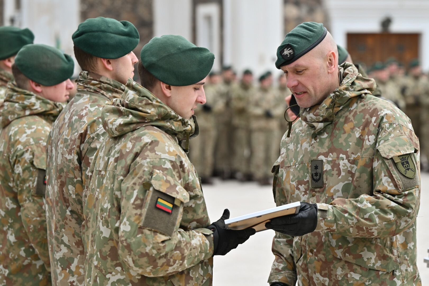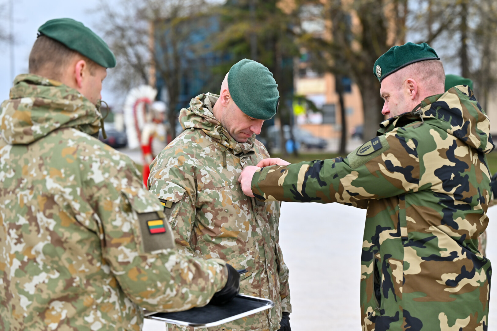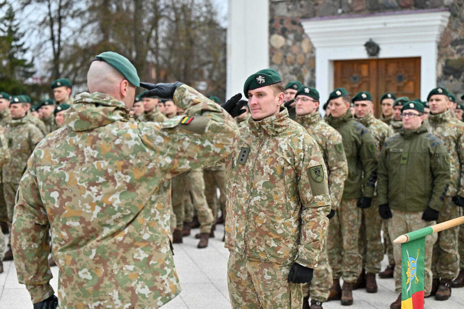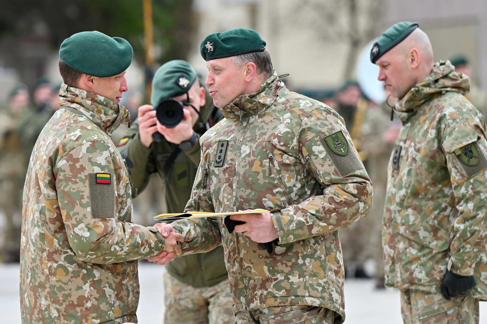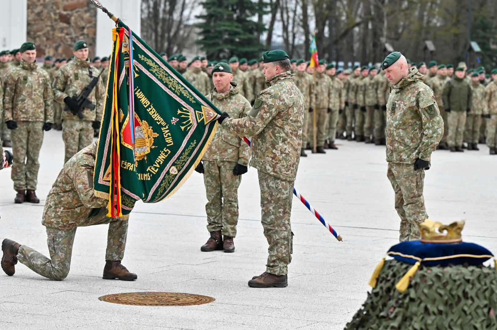 „Dėkoju, plk. ltn. Ernestui Gaigalui už išskirtinę lyderystę vadovaujant batalionui, sąžiningą tarnybą vykdant pavestas užduotis ir uolumą bendradarbiaujant su miesto vadovybe, civilinėmis institucijomis bei jėgos struktūromis. Išskirtinę padėką reiškiu už bataliono tradicijų puoselėjimą ir naujų kūrimą telkiant ir jungiant karius į puikiai veikiantį kovinį vienetą. Tikiu, kad patirtis įgyta tarnybos šiame batalione metu, ir Vilkiškos vertybės leis puikiai atlikti pareigas naujoje tarnybos vietoje. Pareigas pradedančiam plk. ltn. Arnoldui Žyliui linkiu nestokoti ryžto ir valios pastangų, nuo šio momento vedant Batalioną į priekį.“, – sakė plk. Aurelijus Motiejūnas