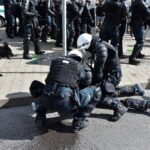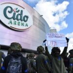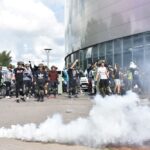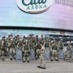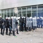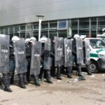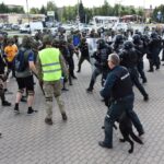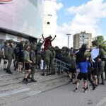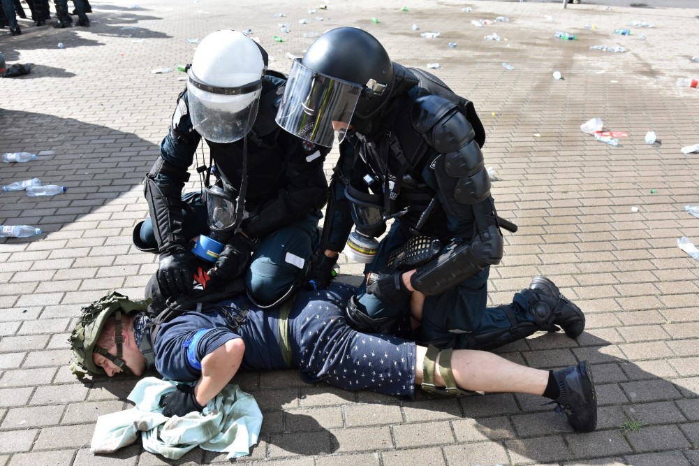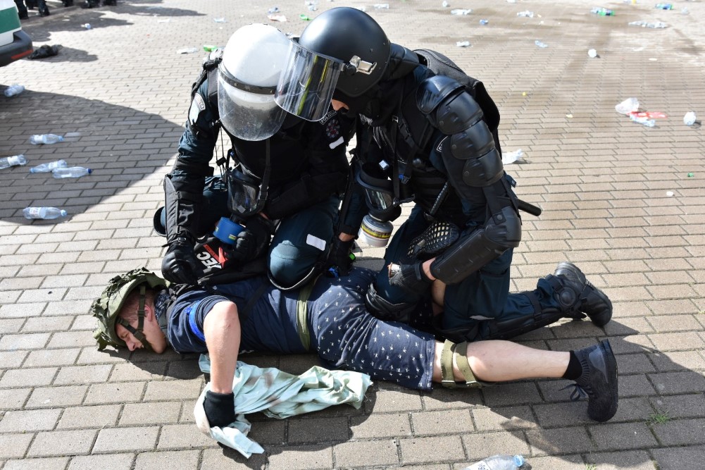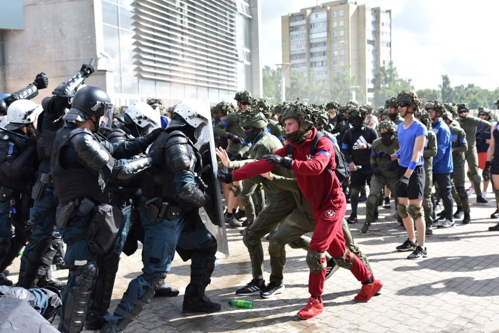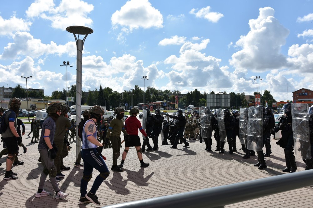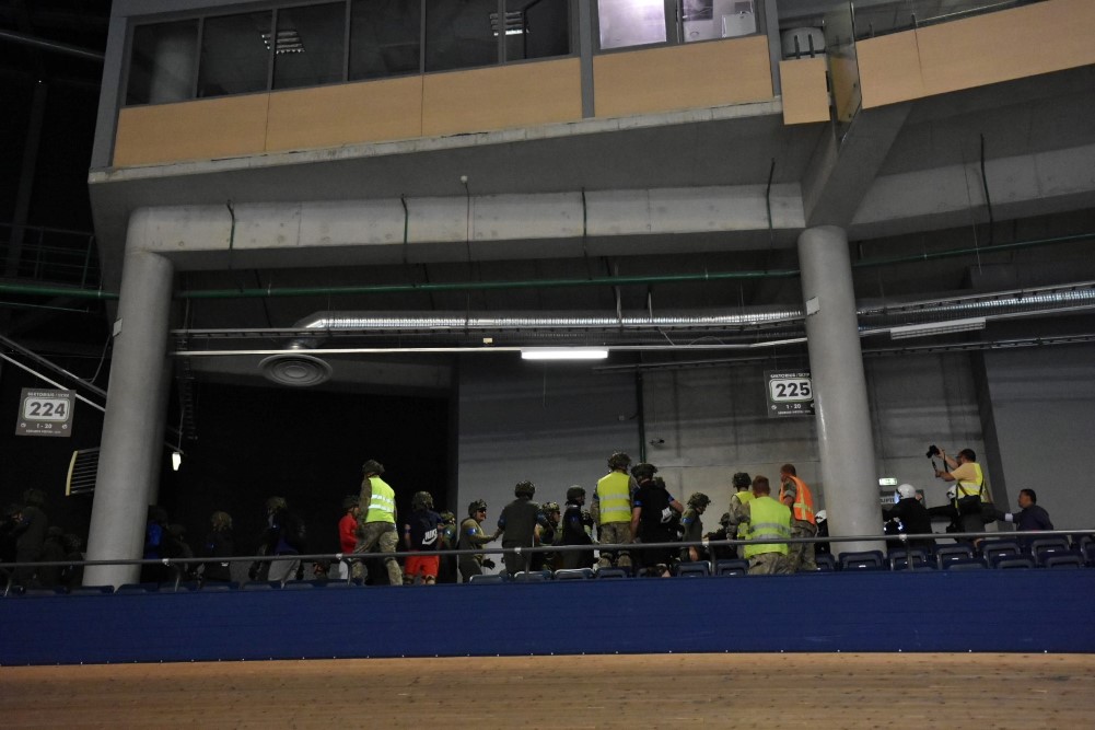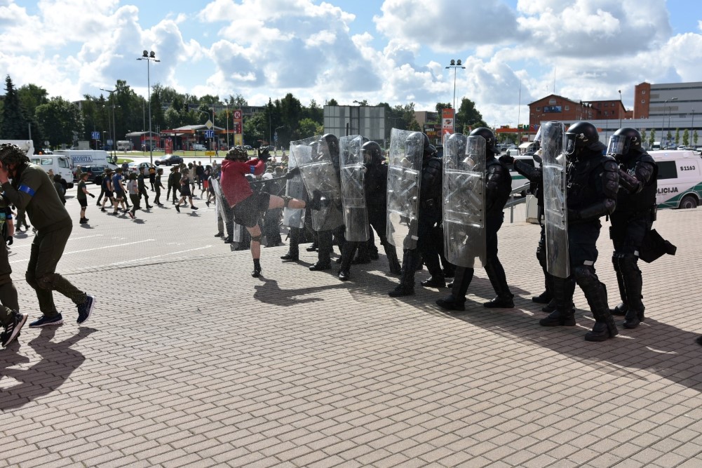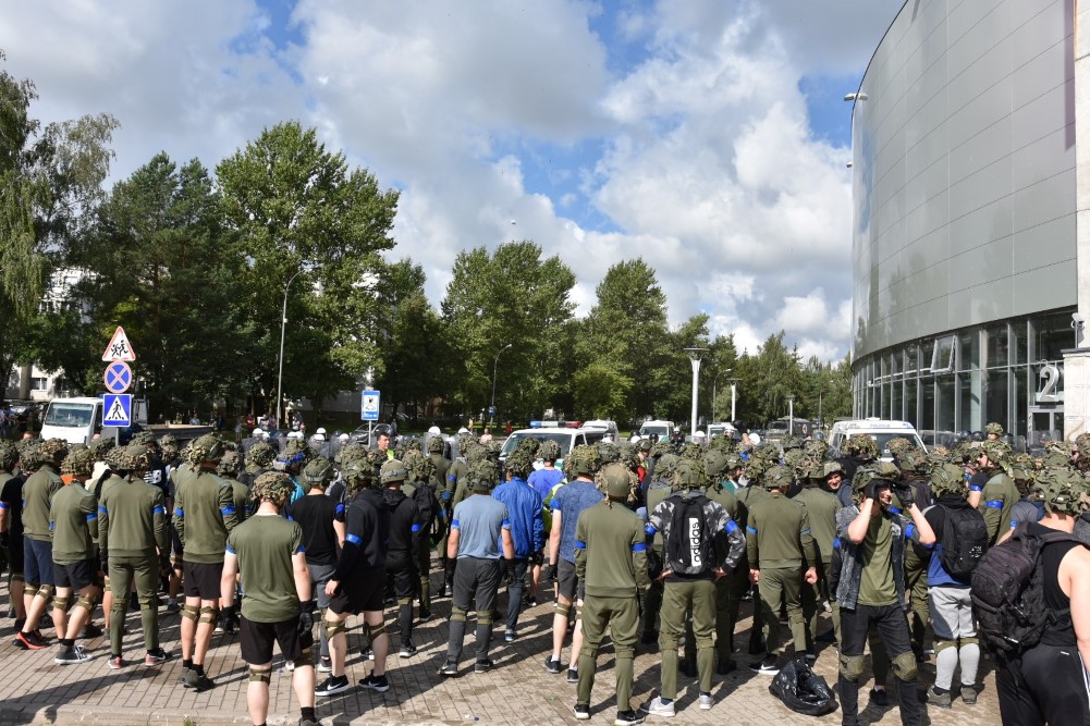 Gausios specialiųjų tarnybų ir karių pajėgos antradienio rytą sulėkė prie Panevėžio arenos malšinti įsisiautėjusios minios. Išstumti iš arenos vidaus, riaušininkai susibūrė lauke ir lengvai nepasidavė policijos pareigūnams.