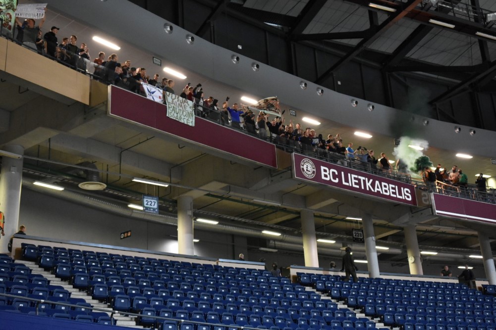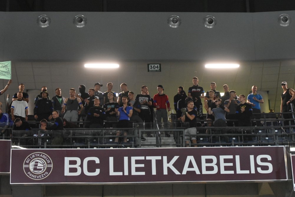 Pagal vieną jų neramumai šiandien prasidėjo Panevėžio arenos viduje stebint krepšinio varžybas – tarp skirtingų komandų sirgalių kilo nesutarimų.