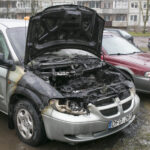 Per gaisrą išdegė „Dodge“ variklio skyrius. Gaisro priežastys dar nėra aiškios.