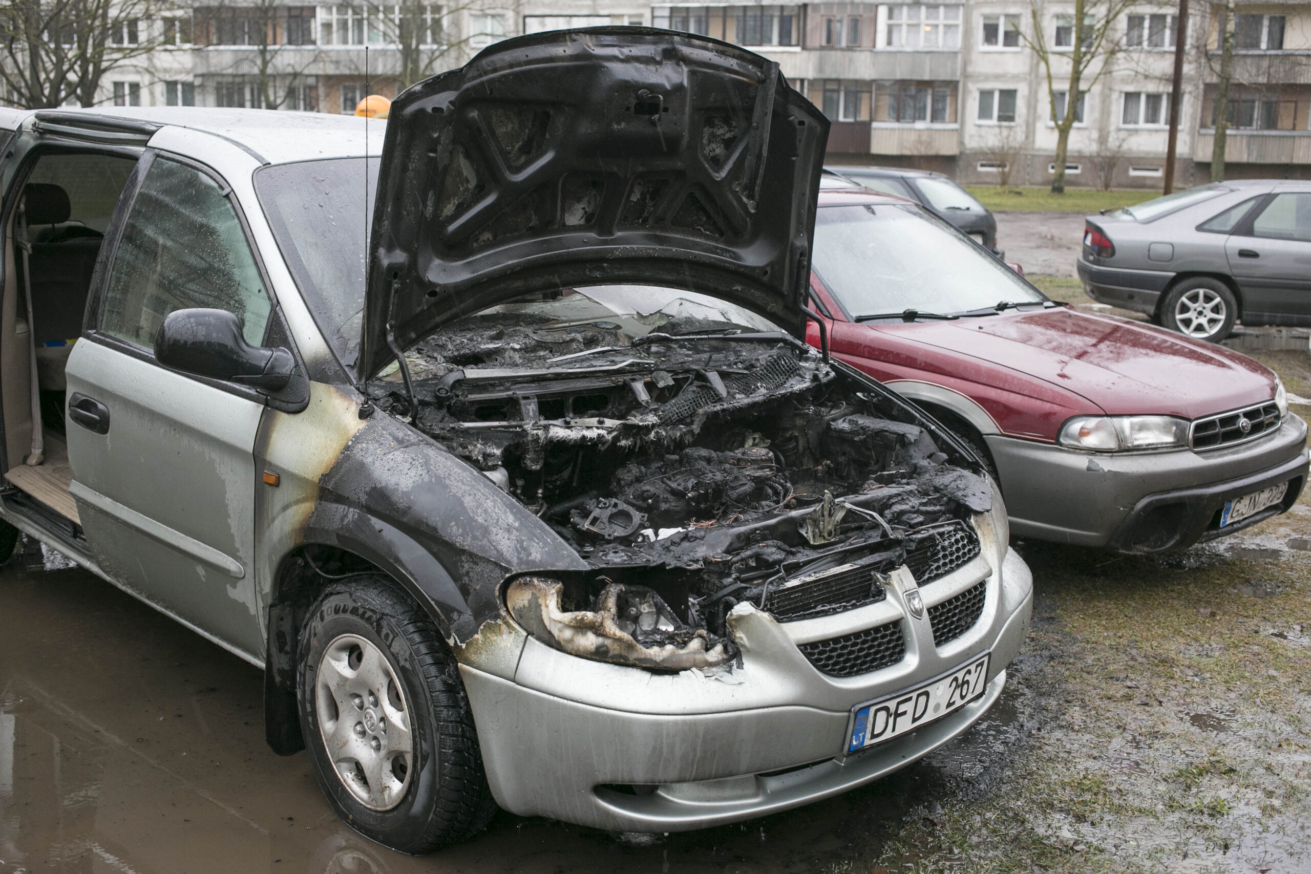 Pranešimo apie Klaipėdos g. ties 112-uoju namu kilusį gaisrą Bendrasis pagalbos centras sulaukė penktadienį, apie 9.45 val. Į įvykio vietą atvykus ugniagesiams-gelbėtojams amerikietiškas minivenas „Dodge“ jau degė atvira liepsna.