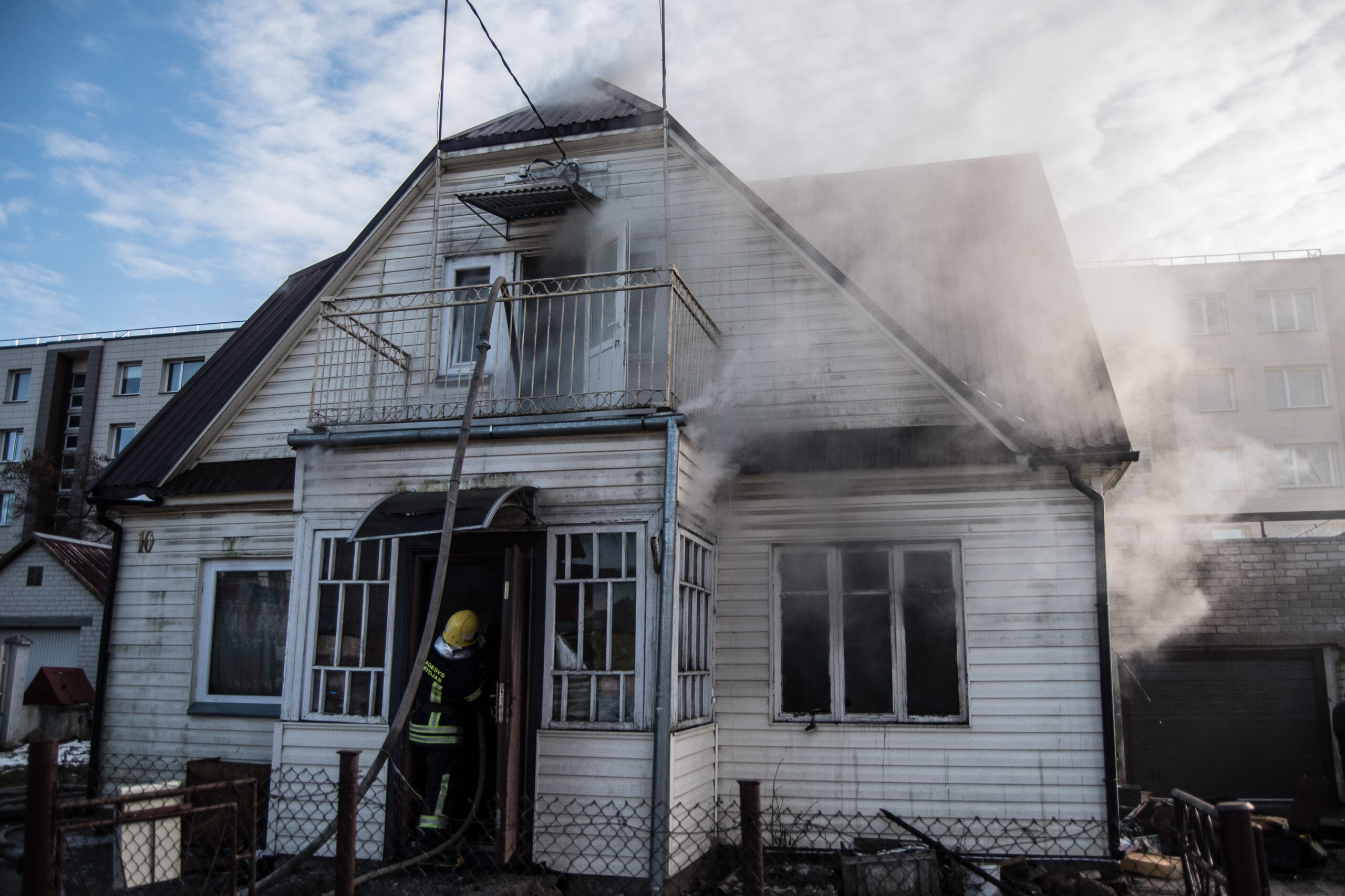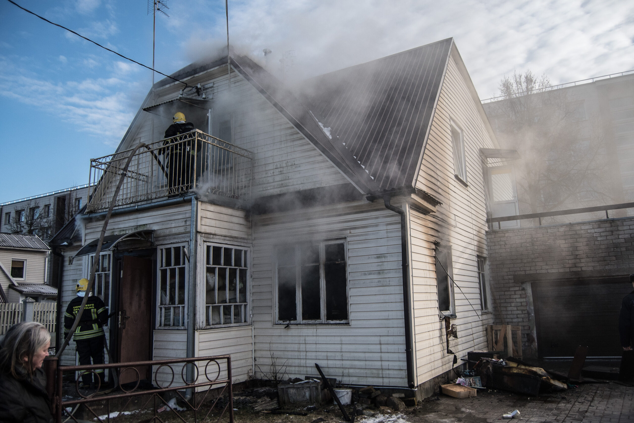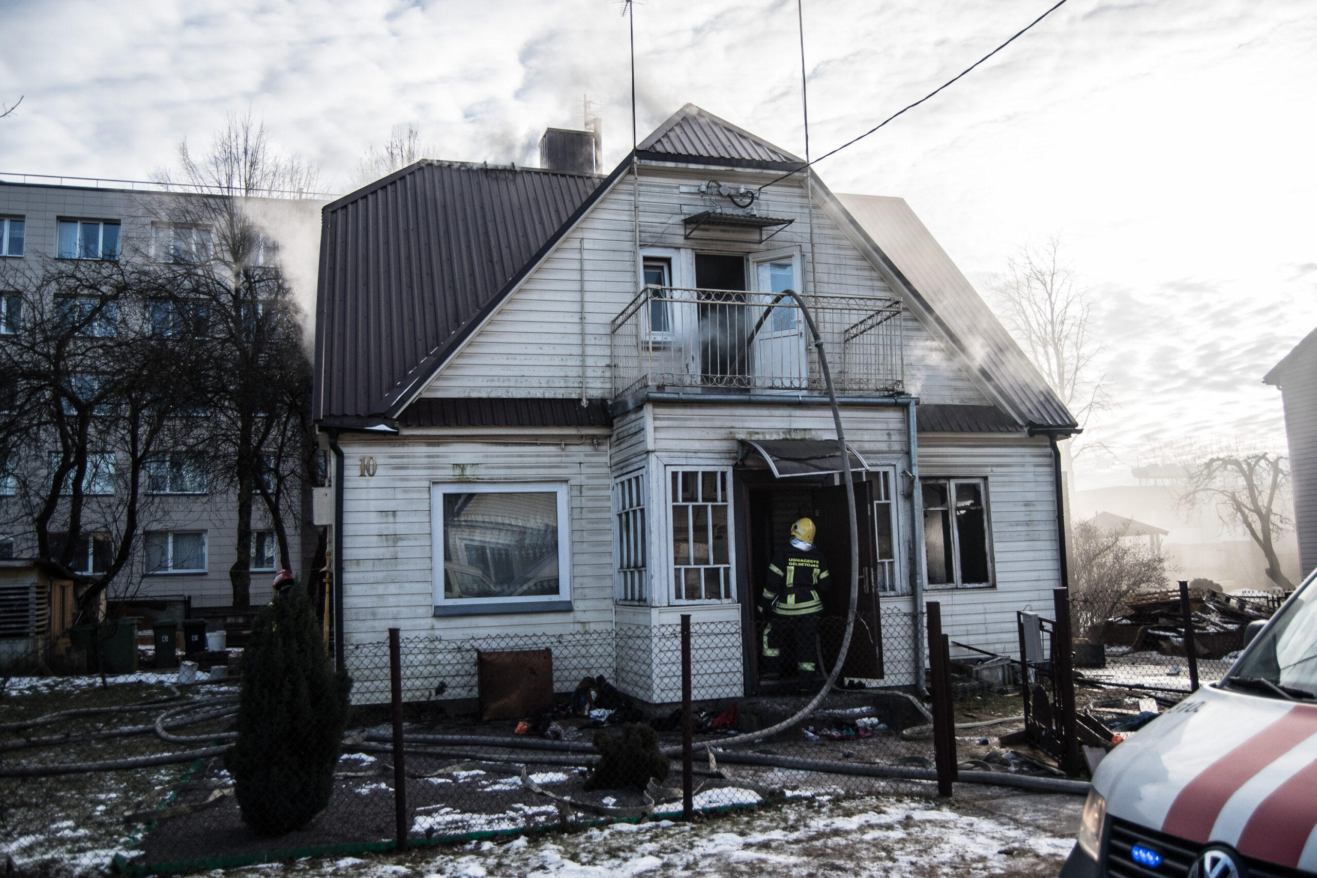 Ketvirtadienio popietę ugniagesiai skubėjo gesinti Lakštingalų gatvėje degančio dviejų aukštų medinio gyvenamojo namo.
