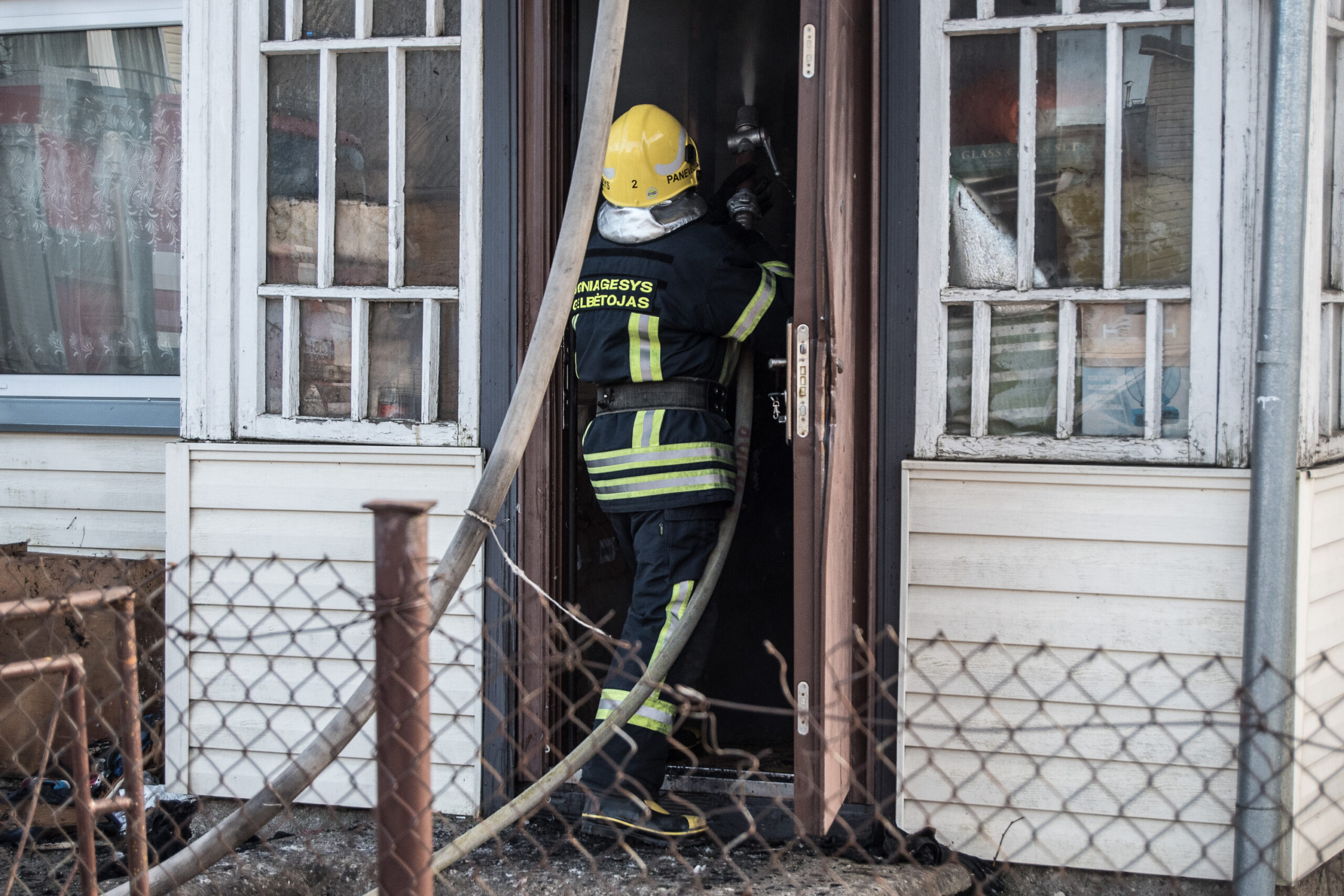 Per gaisrą namuose buvo tik šuo, jį ugniagesiams pavyko išgelbėti.