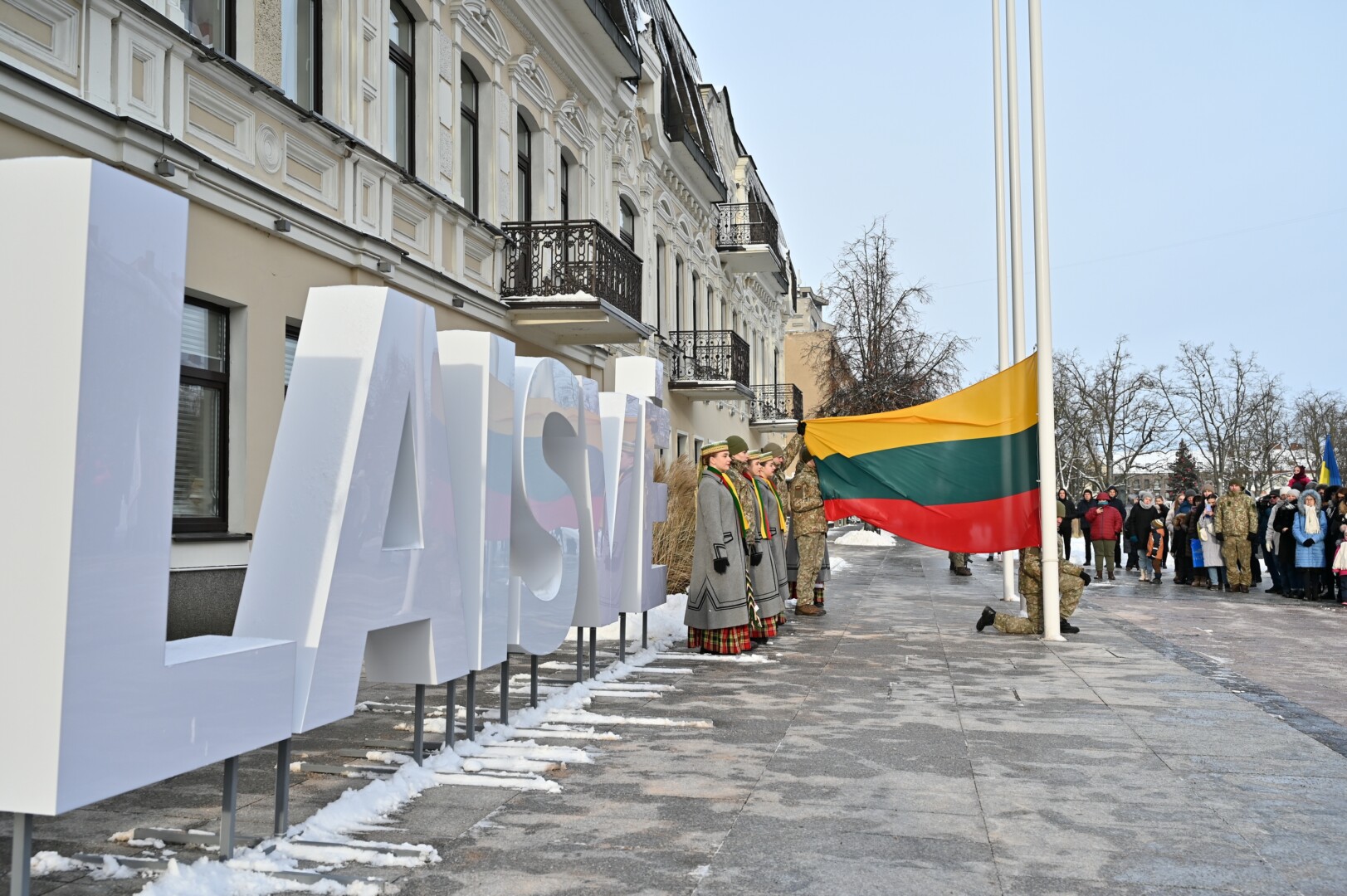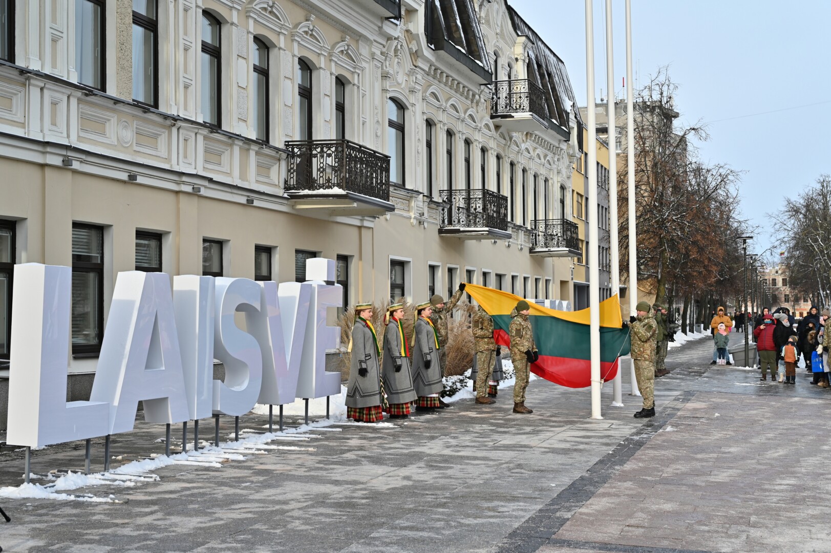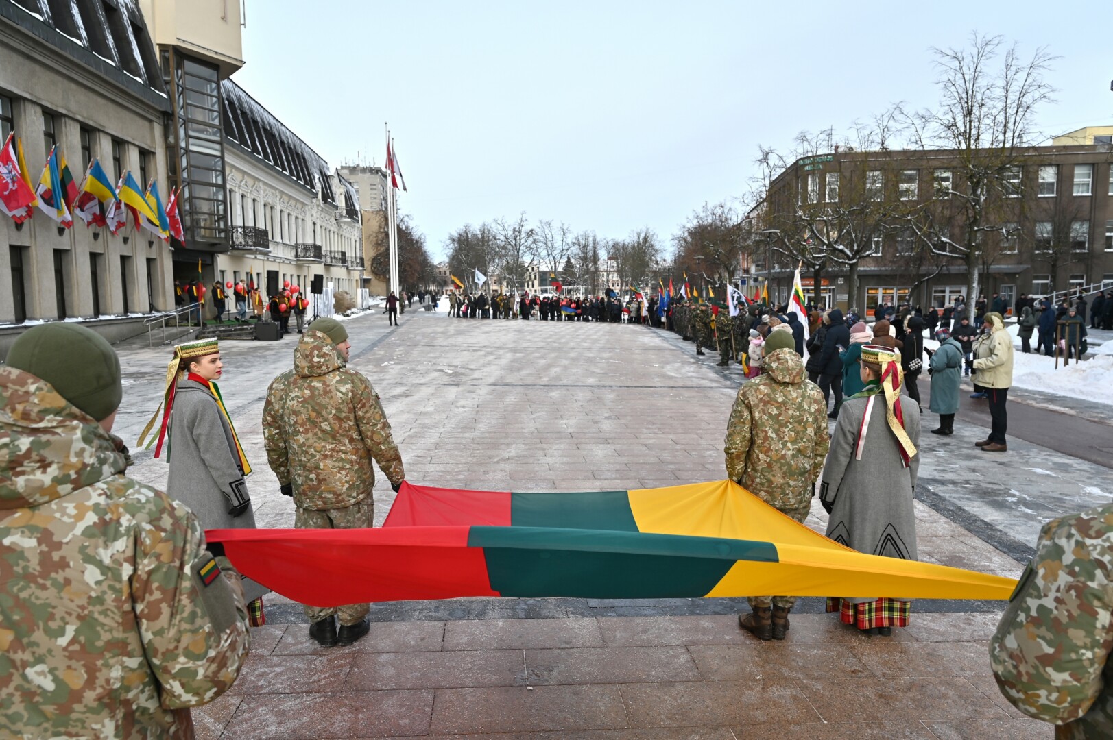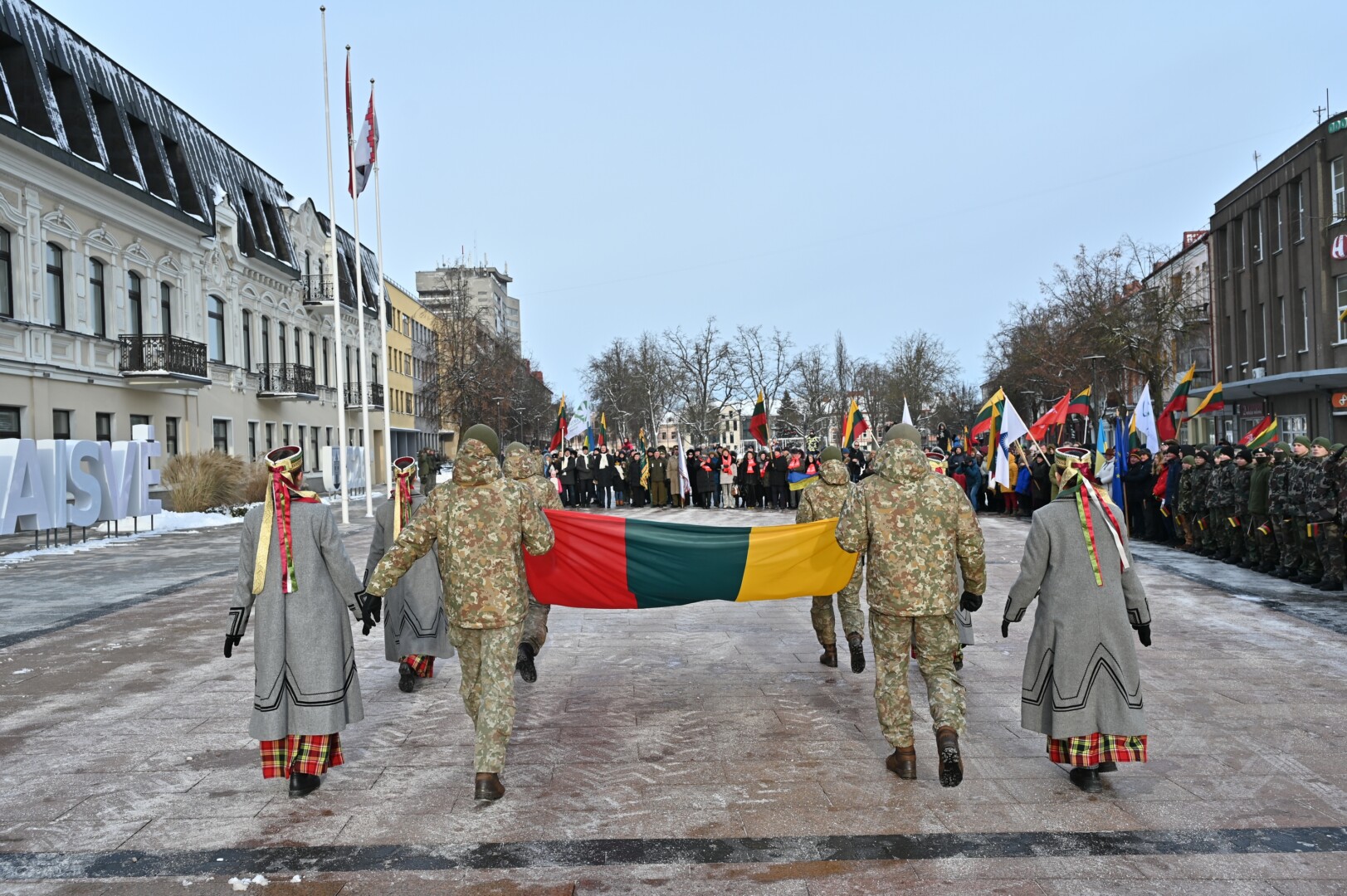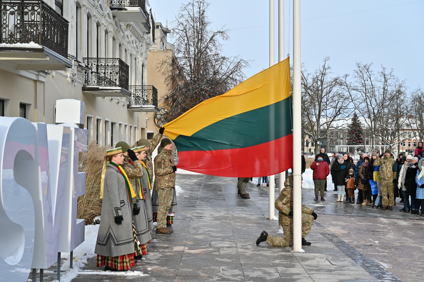 Iškilmingame renginyje šalies himną bei kitus kūrinius atliko solistas Juozas Janužas, Karaliaus Mindaugo husarų bataliono kariai paleido salves už tėvynę Lietuvą, šalies žmones ir Laisvės gynėjus. Po šio renginio Sausio 13-osios skvere padėtos gėlės, pagerbiant Laisvės gynėjų aukas.