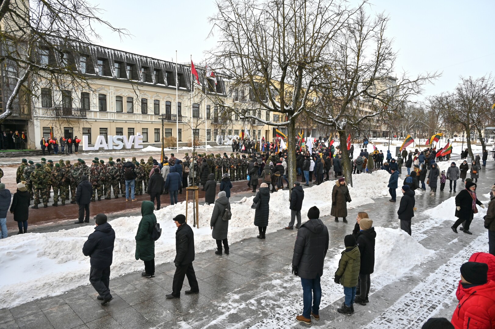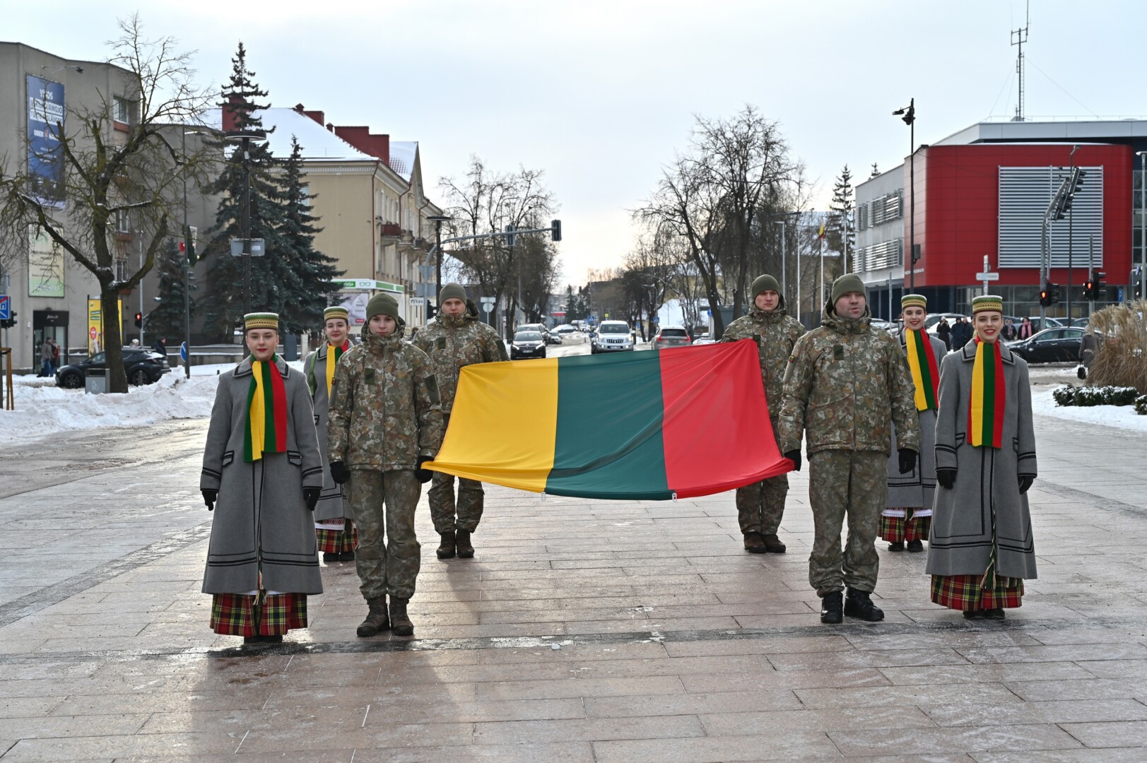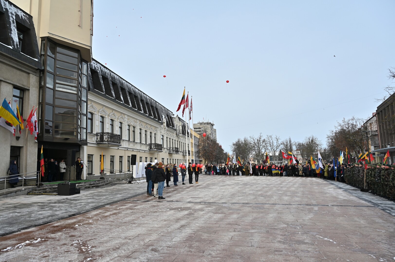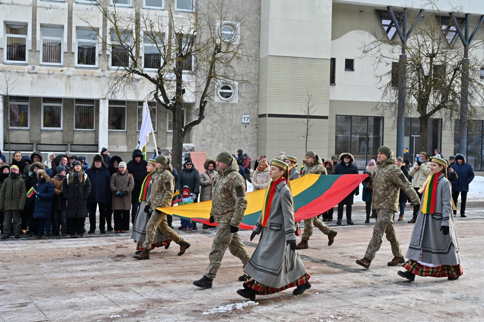 Iškilmingame renginyje šalies himną bei kitus kūrinius atliko solistas Juozas Janužas, Karaliaus Mindaugo husarų bataliono kariai paleido salves už tėvynę Lietuvą, šalies žmones ir Laisvės gynėjus. Po šio renginio Sausio 13-osios skvere padėtos gėlės, pagerbiant Laisvės gynėjų aukas.