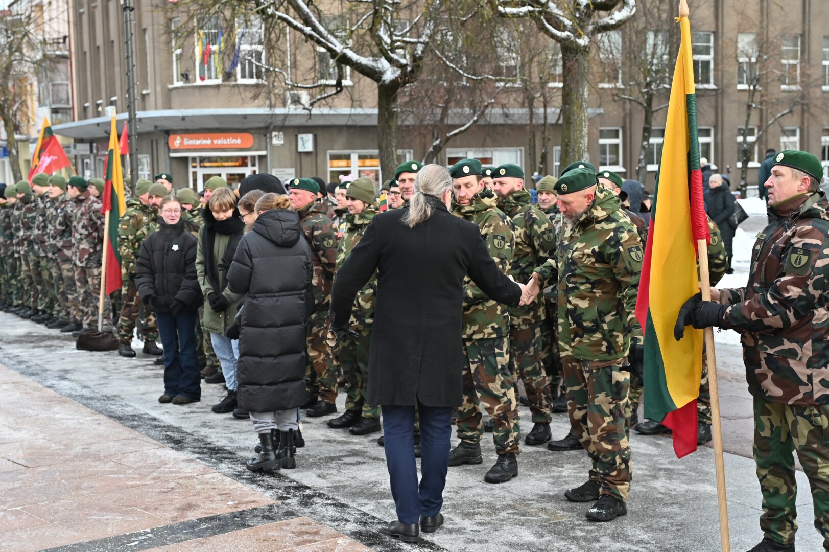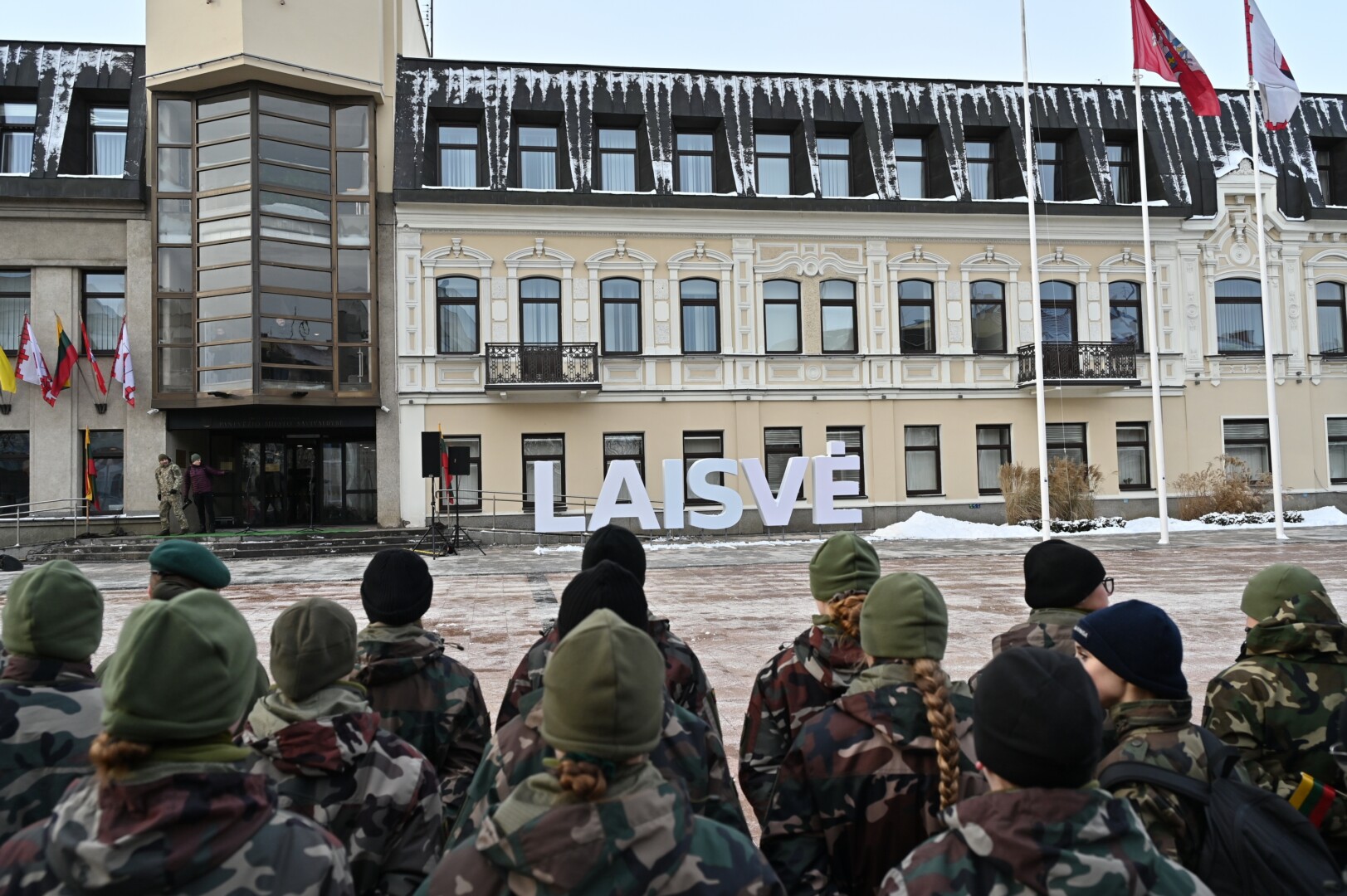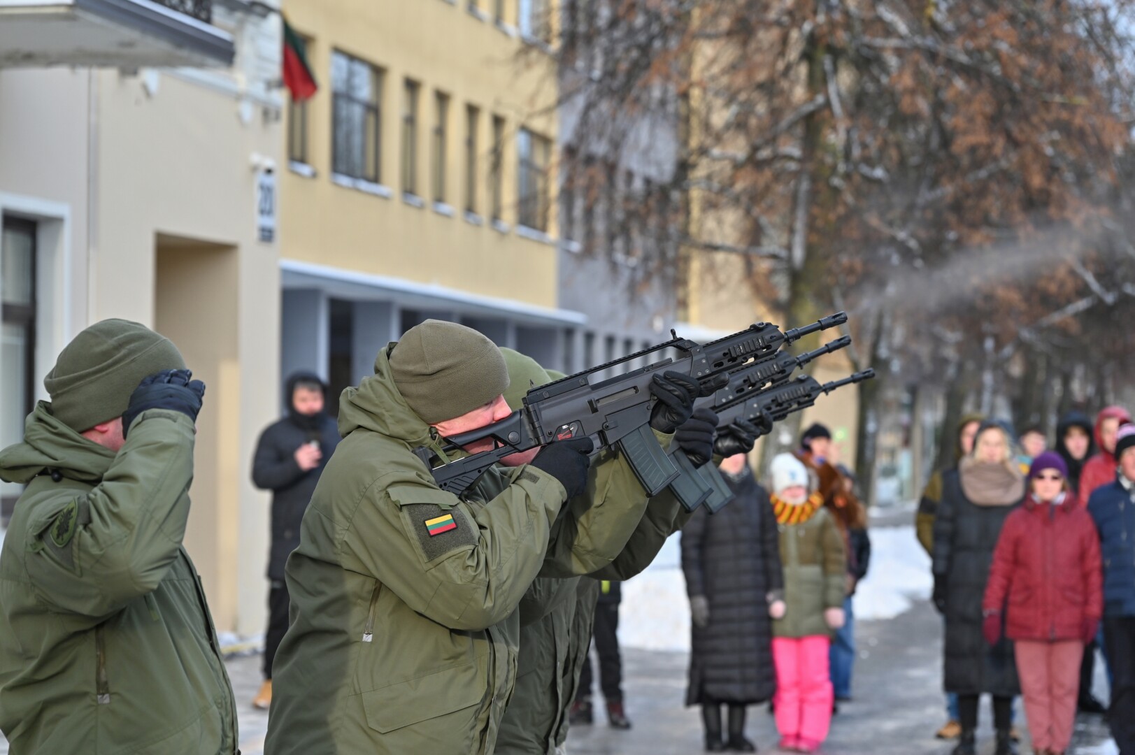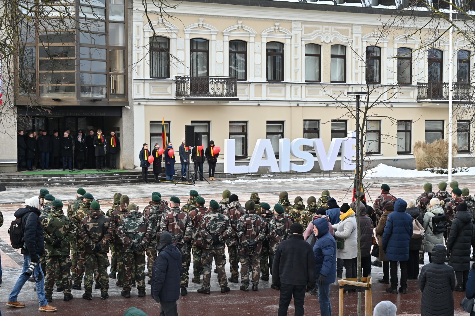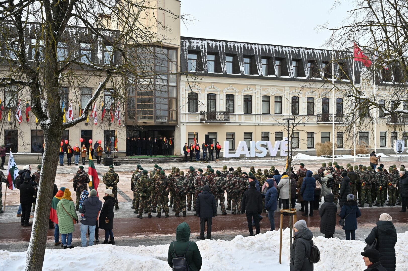 Iškilmingame renginyje šalies himną bei kitus kūrinius atliko solistas Juozas Janužas, Karaliaus Mindaugo husarų bataliono kariai paleido salves už tėvynę Lietuvą, šalies žmones ir Laisvės gynėjus. Po šio renginio Sausio 13-osios skvere padėtos gėlės, pagerbiant Laisvės gynėjų aukas.