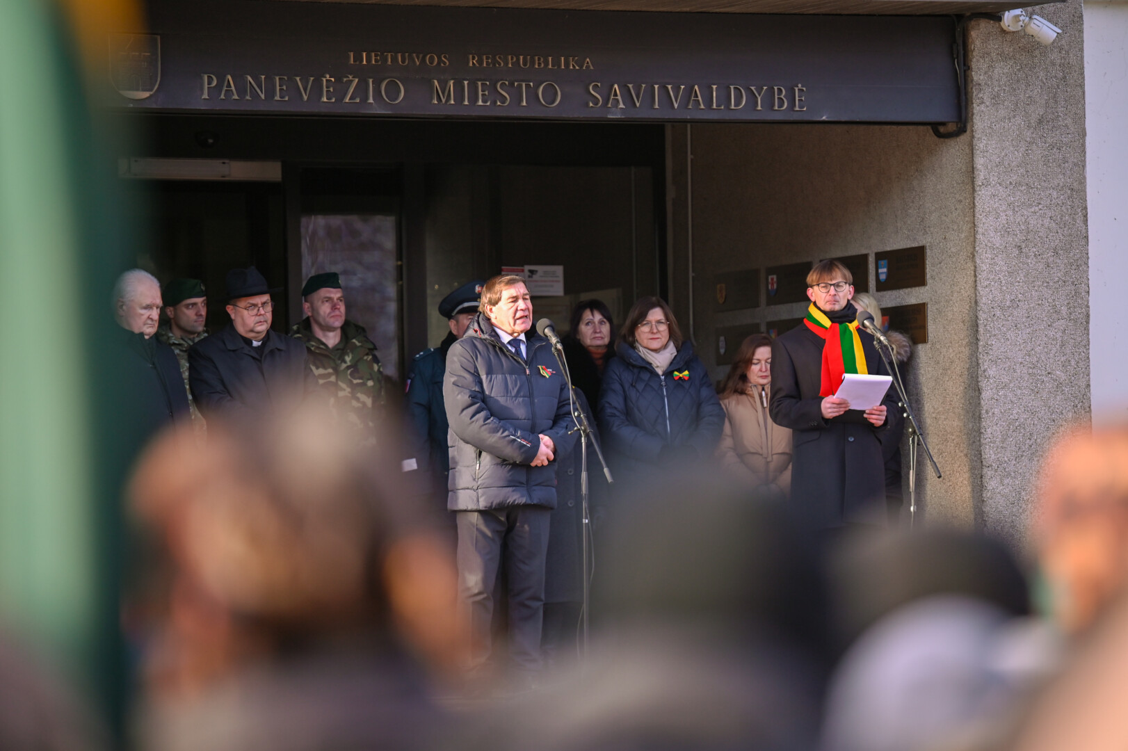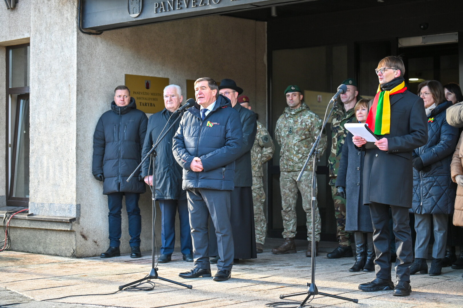 „Šiandien stovime čia, po laisvės dangumi, su trispalve, simbolizuojančia mūsų tvirtumą, vienybę ir tikėjimą. Sausio 13-oji primena pasauliui, kad tikėjimas laisve stipresnis už bet kokią baimę, o vienybė gali įveikti net didžiausią jėgą. Tą naktį mes ne tik apgynėme savo Nepriklausomybę – mes tapome švyturiu visam pasauliui. 14 žmonių, paaukojusių gyvybes, tapo ne tik didvyriais, bet ir laisvės simboliais. Būkime verti tų, kurie kovojo už mūsų teisę gyventi nepriklausomoje Lietuvoje. Kol prisimename, tol esame stiprūs. Kol vertiname, tol esame stiprūs, kol vertiname, tol esame laisvi. Tegul Laisvės gynėjų dvasia toliau įkvepia mus kurti ir stiprinti Lietuvą bei Panevėžį“, – kalbėjo laikinai mero pareigas einantis Savivaldybės tarybos narys Petras Luomanas.
